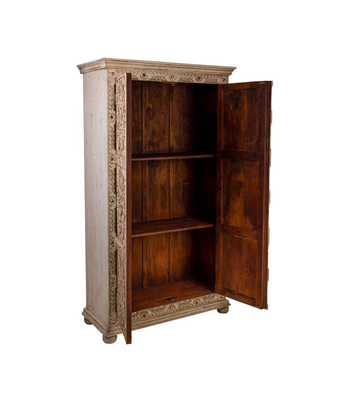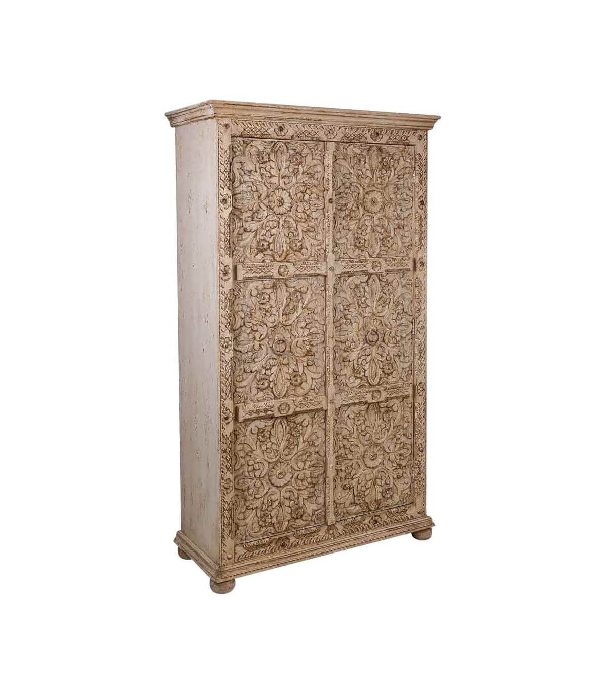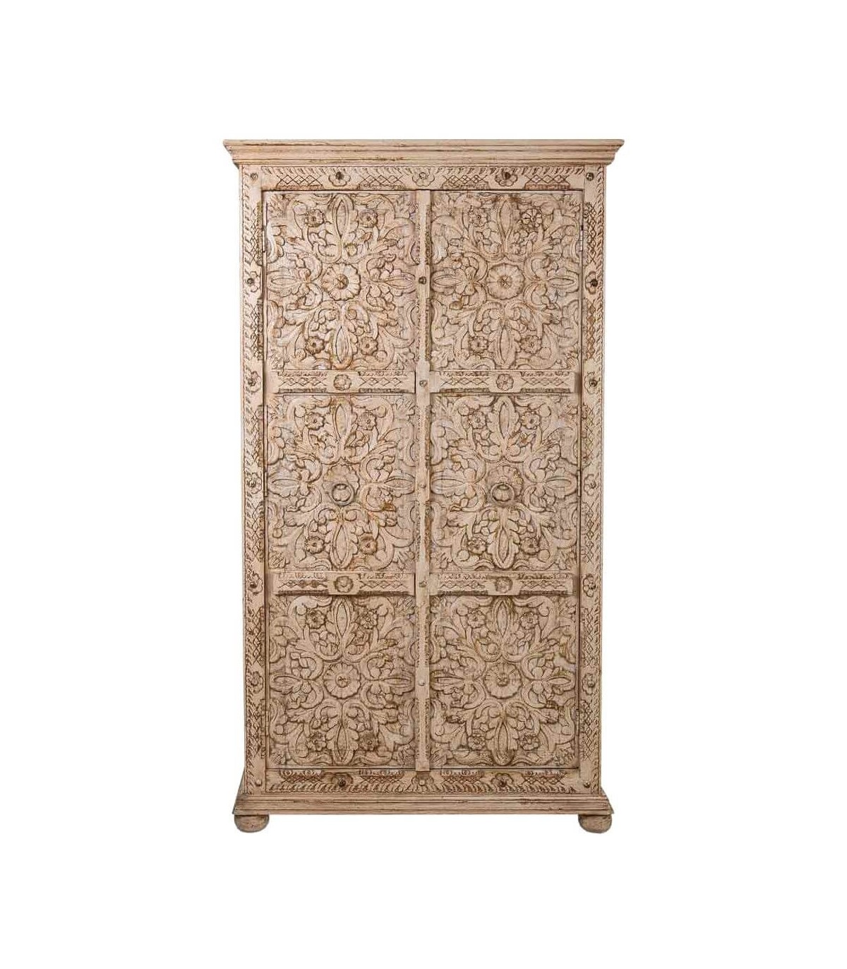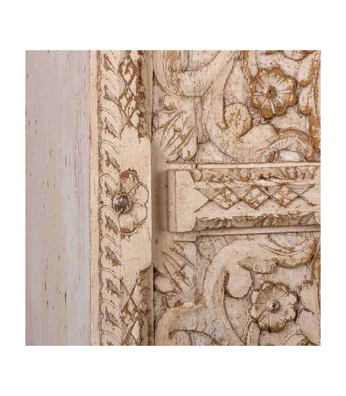 ARMARIO ALACENA 102 X 44 X 183 METROPOLIS MADERA TALLADA ARTESANAL BLANQUEADA