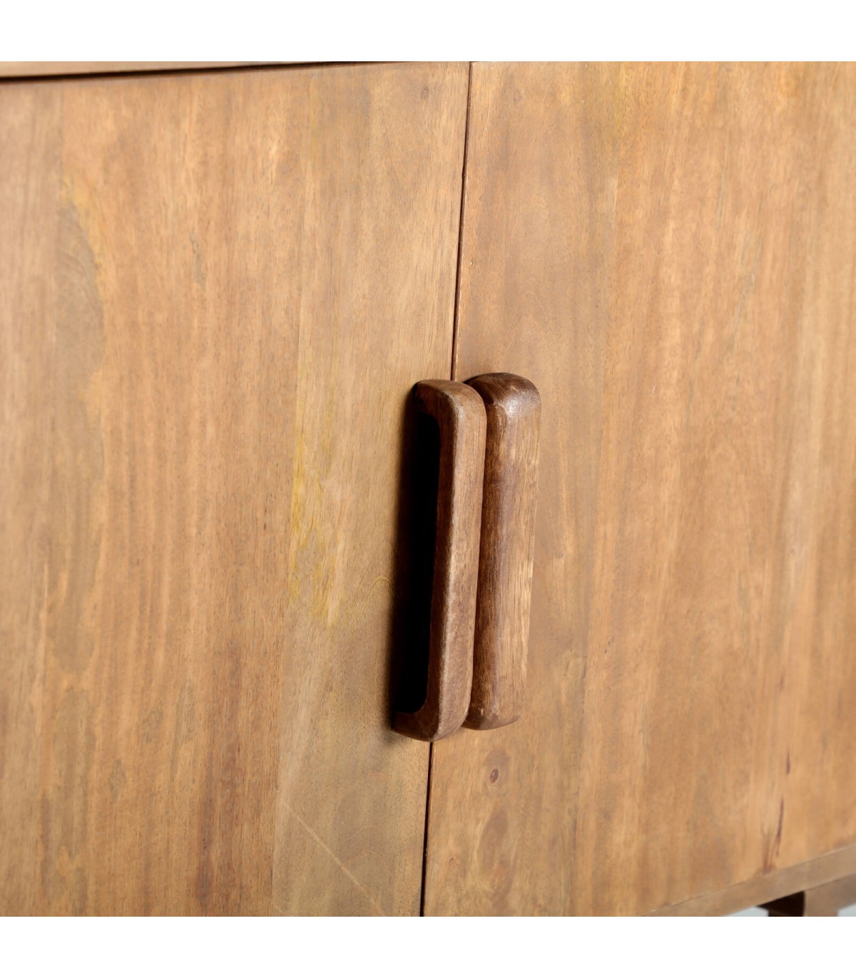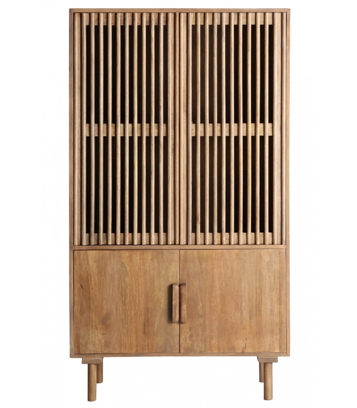 Armario con 2 puertas a listonadas, y dos puertas en madera, realizado madera de mango acabado natural, un mueble de gran presencia y capacidad, ideal para salones o cocinas.
