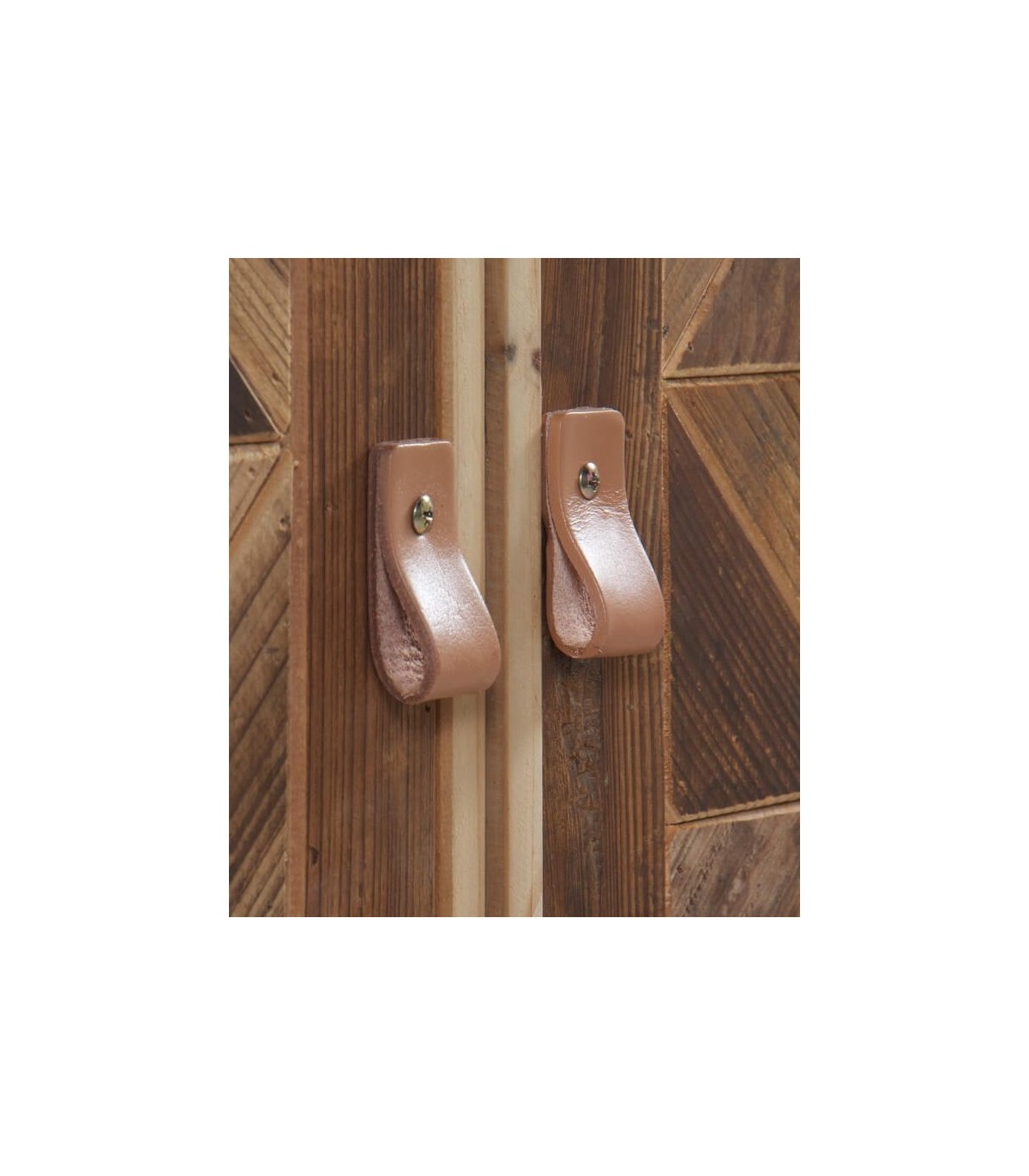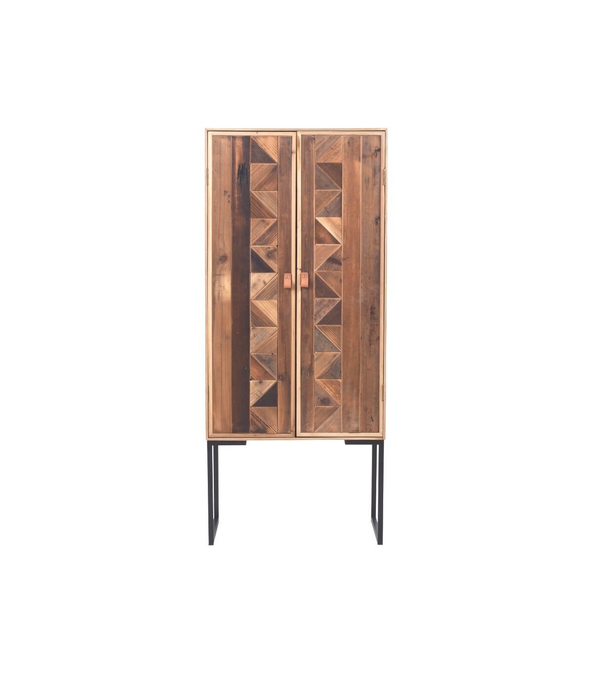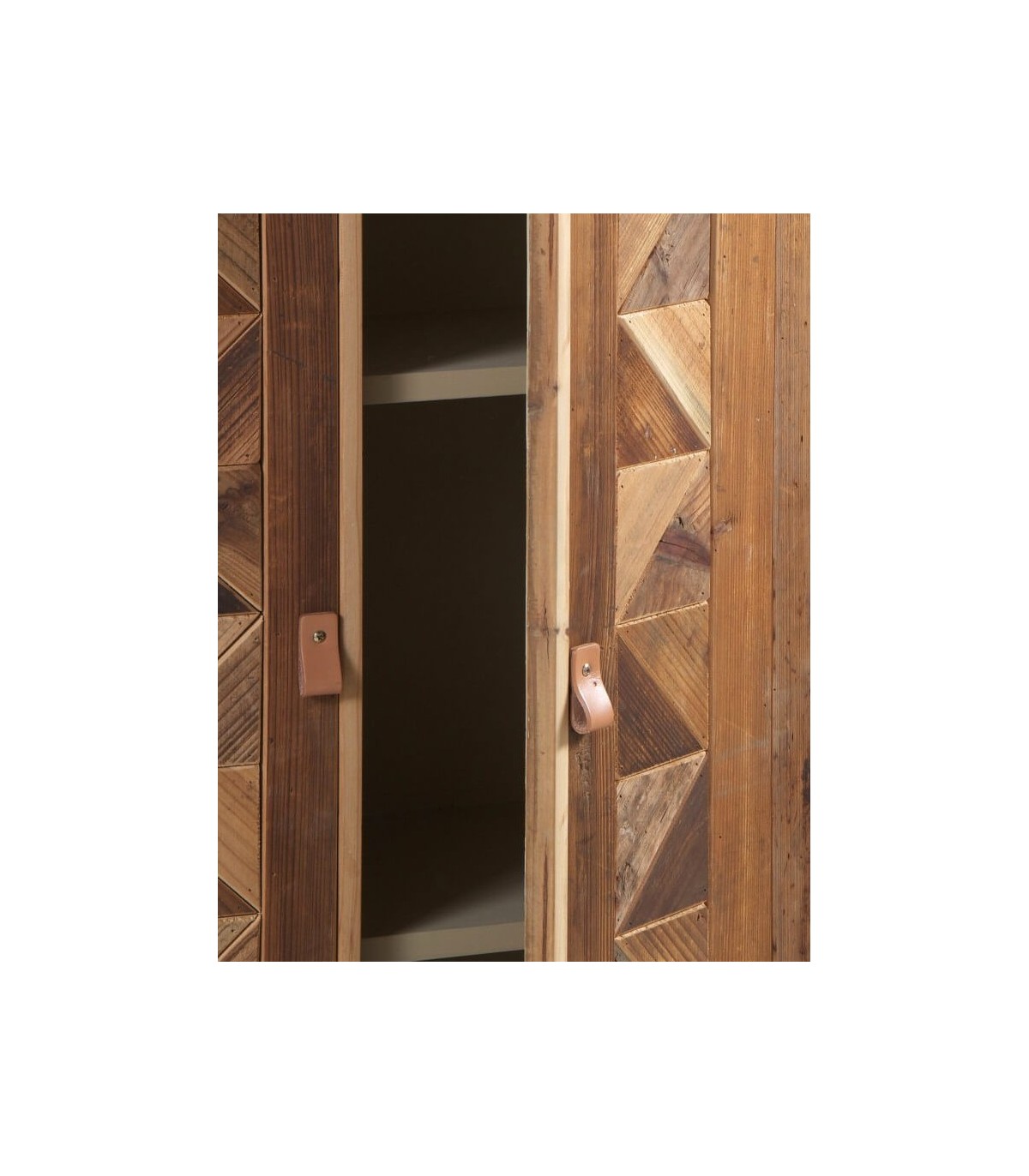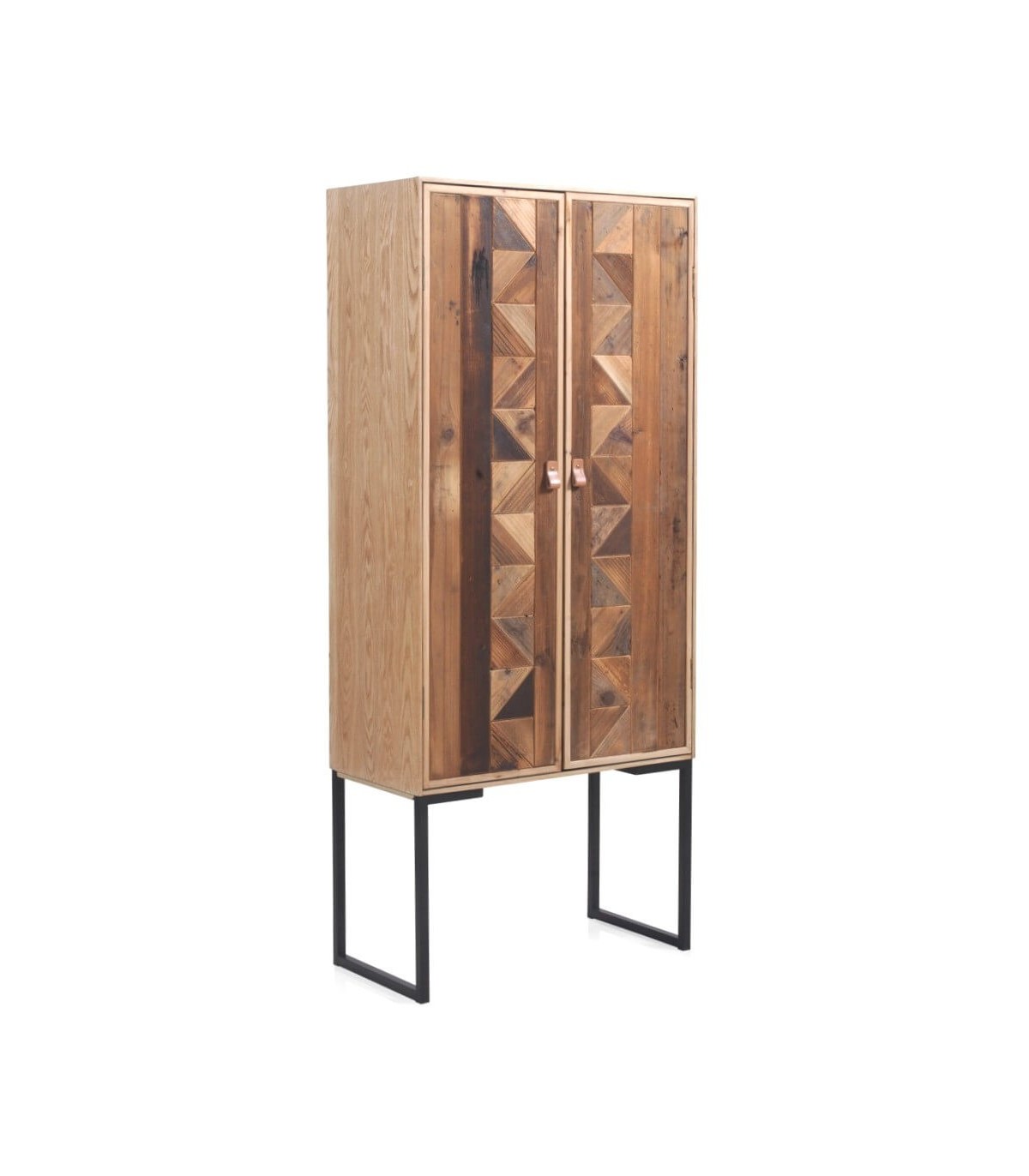 Armario de nuestra colección Pache, una colección que se caracteriza por estar elaborada en madera reciclada 100 % tratada, en su estado natural, metal y cuero, lo que le da un aspecto desenfadado entre el estilo chikc y el industrial, una colección con ese sabor especial que tienen las piezas únicas y a su vez al ser madera reciclada muy ecológica.