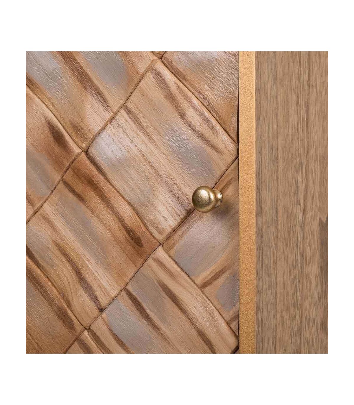 Armario nuestra colección Naxos, una colección que se caracteriza por su estilo art decó, realizada en madera natural con los cantos perfilados en oro, de líneas rectas con el contraste de los dibujos dameados en sus frentes realizado artesanalmente y el contraste con el oro, una colección muy elegante con muebles y complementos para cualquier lugar de tu casa.