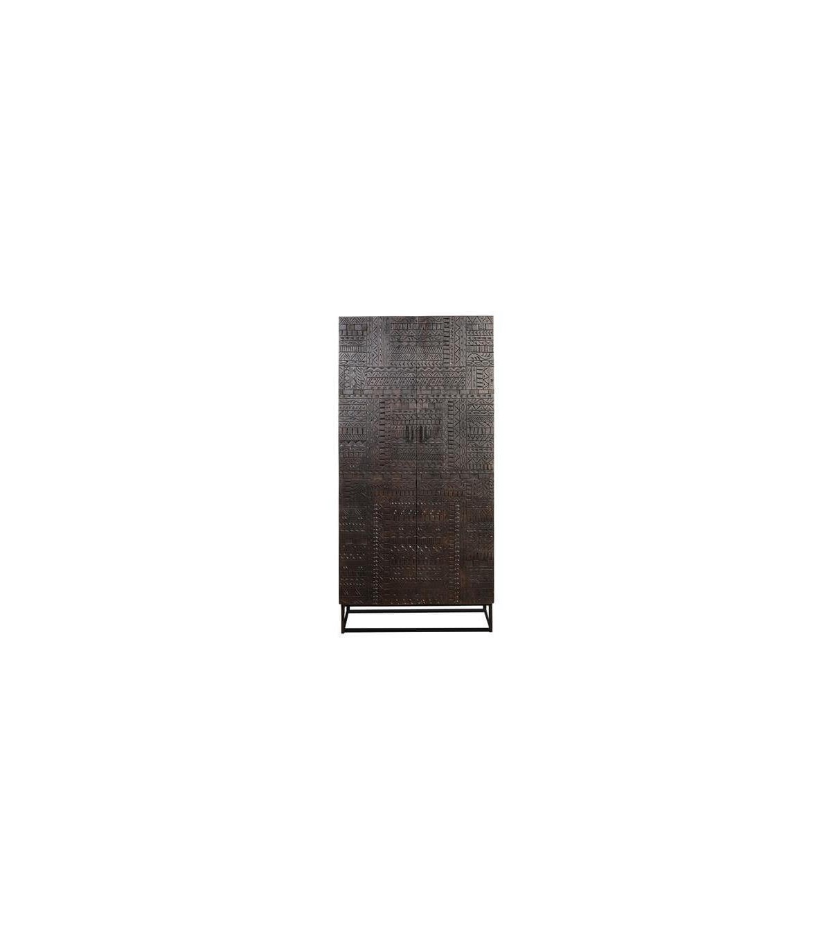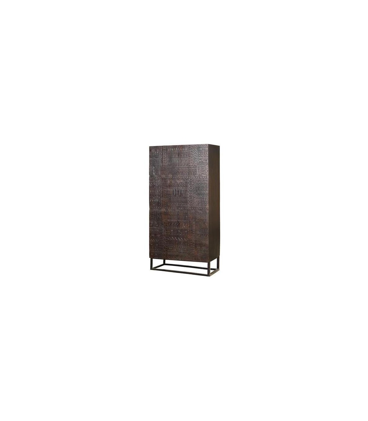 Armario de nuestra colección de muebles Azteca, una colección realizada en madera maciza de mango con las tallas hechas a mano artesanalmente y la base y los tiradores específicos para la colección en hierro forjado acabado negro, una colección muy racial y con carácter que le dará mucho sabor a tu decoración.