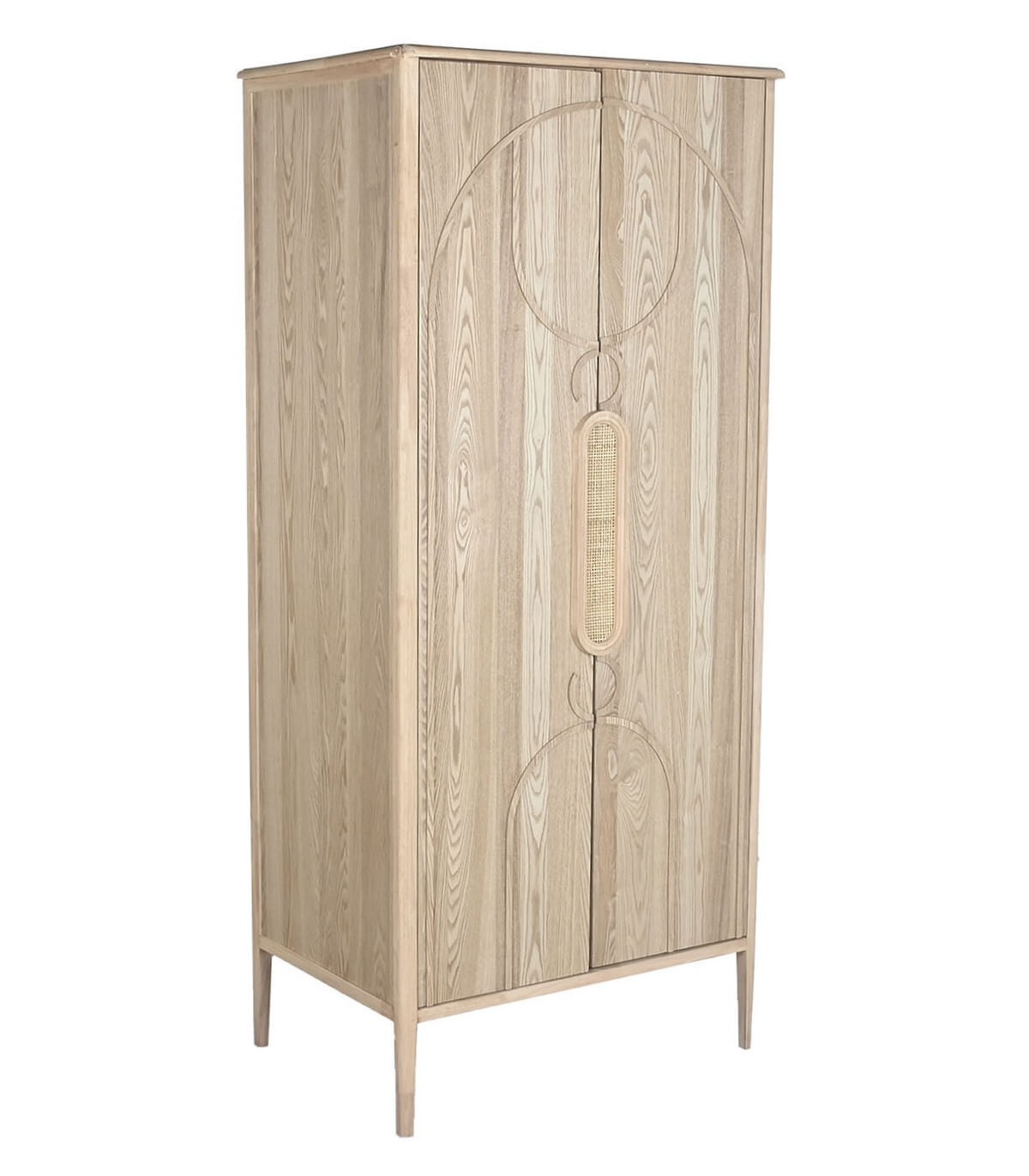 ARMARIO ROPERO 78 X 55 X 180 BERTO MADERA ABETO Y RATAN NATURAL