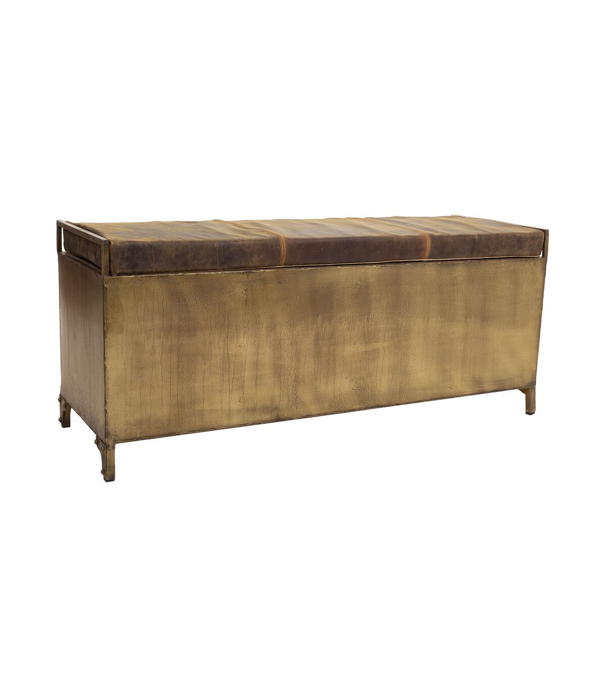 BANCO PIE DE CAMA 120 X 40 X 51 TALGO METAL ORO VIEJO PIEL MARRON
