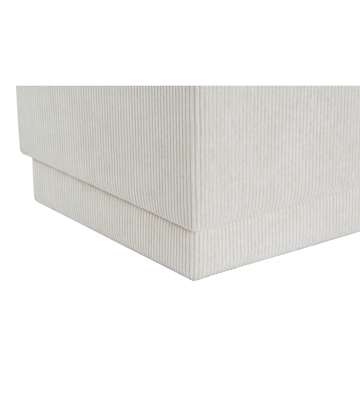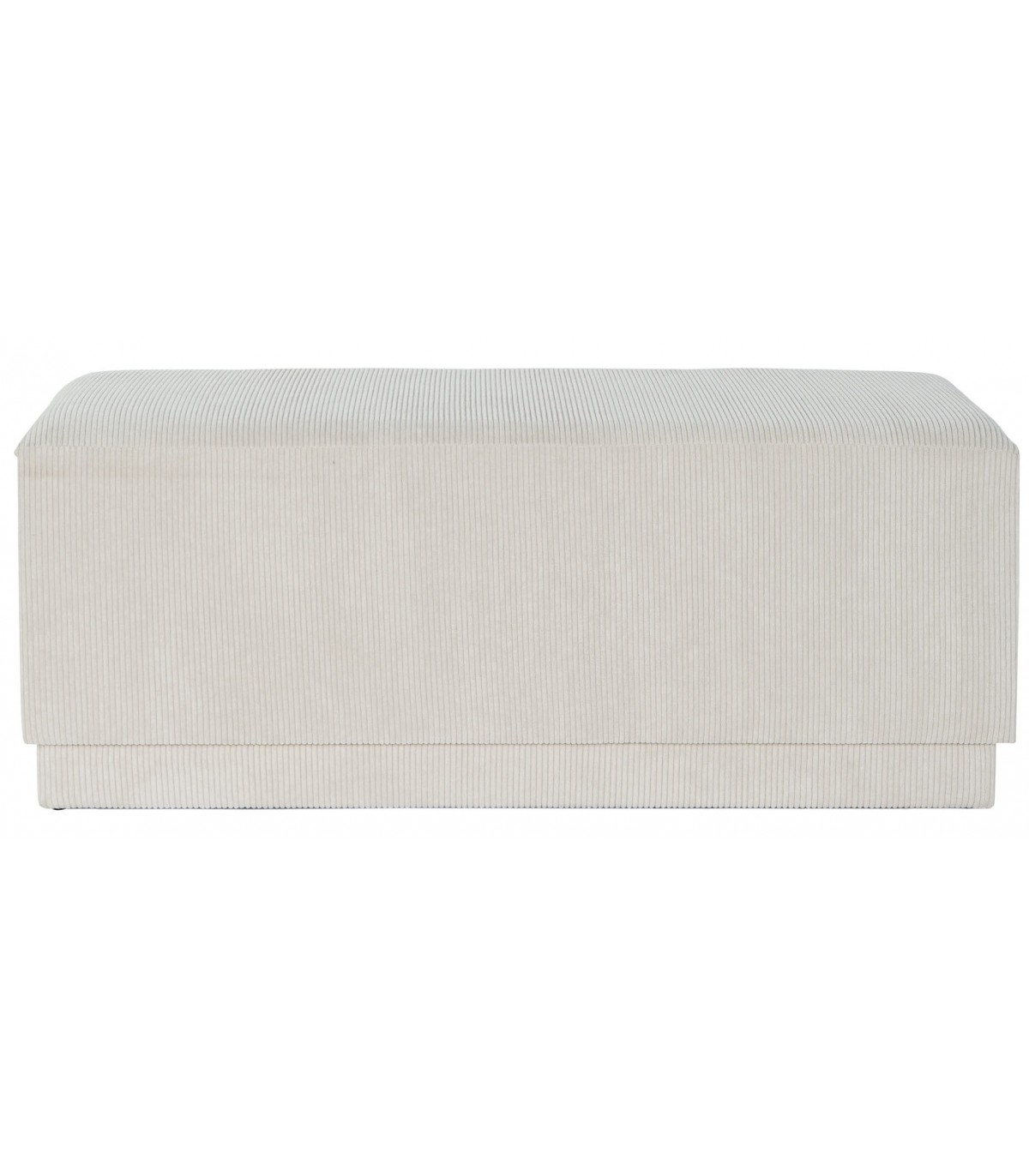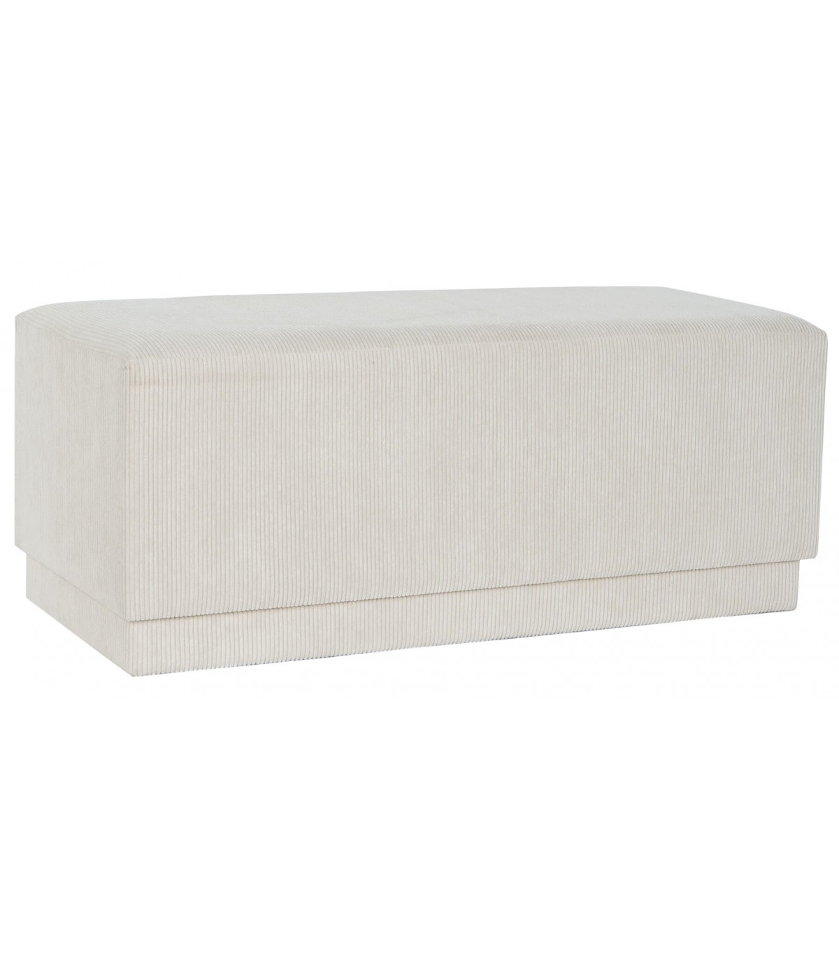 Banco pie de cama tapizado en pana color blanco roto, de líneas rectas y diseño atemporal con la calidez que aporta la pana, perfecto para tu dormitorio o como pieza auxiliar.