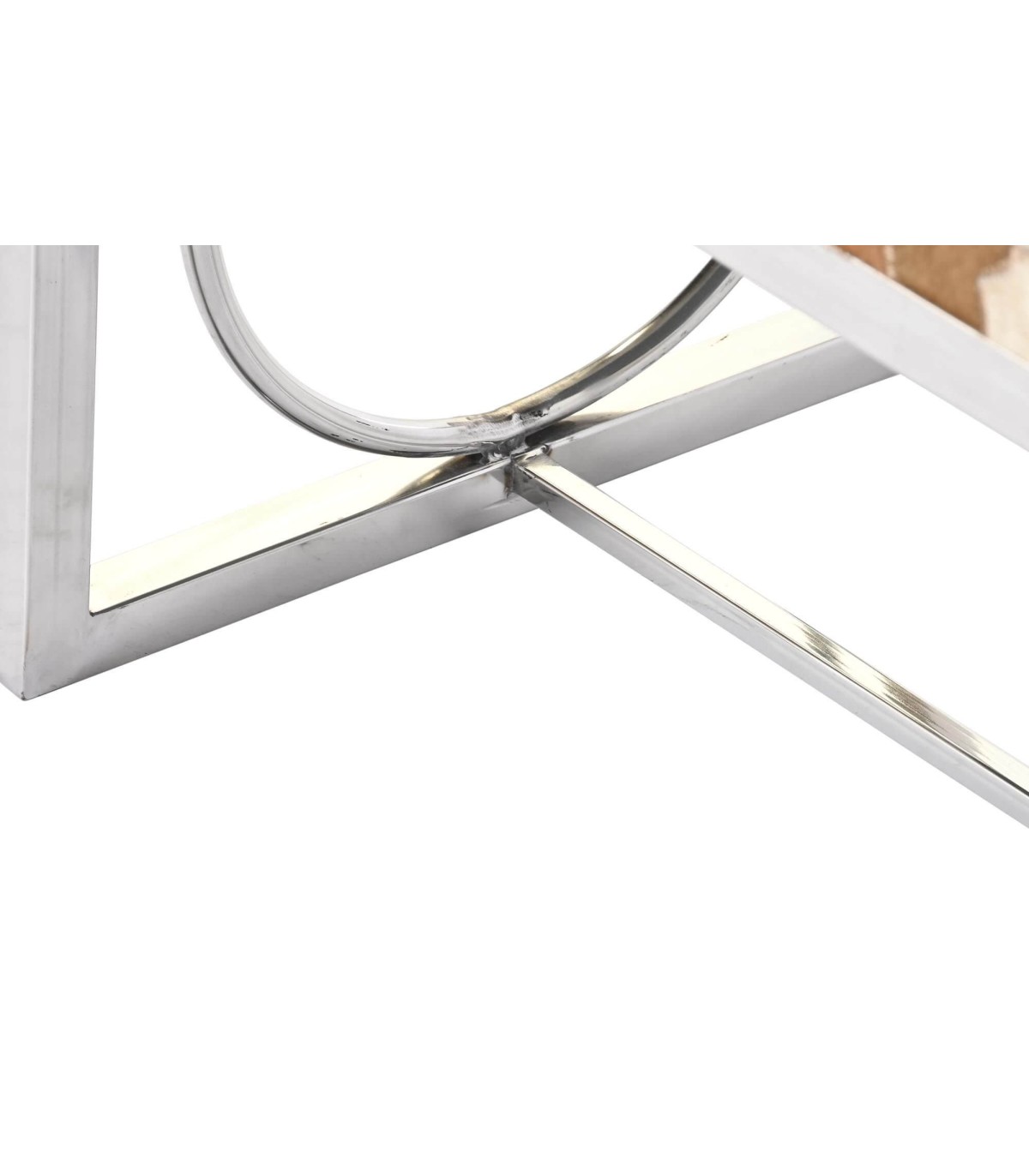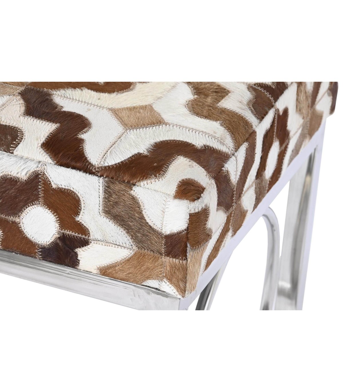 Acabado, acero cromado brillo, piel natural acabado patchwork, en colores blanco y marrón.