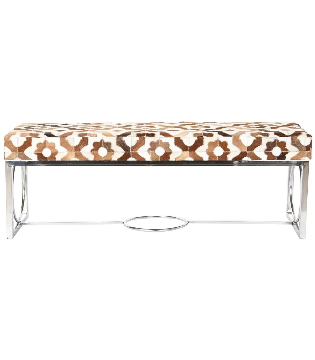 BANCO PIE DE CAMA 122 X 41 ESCIROS METAL CROMO Y PIEL MARRÓN