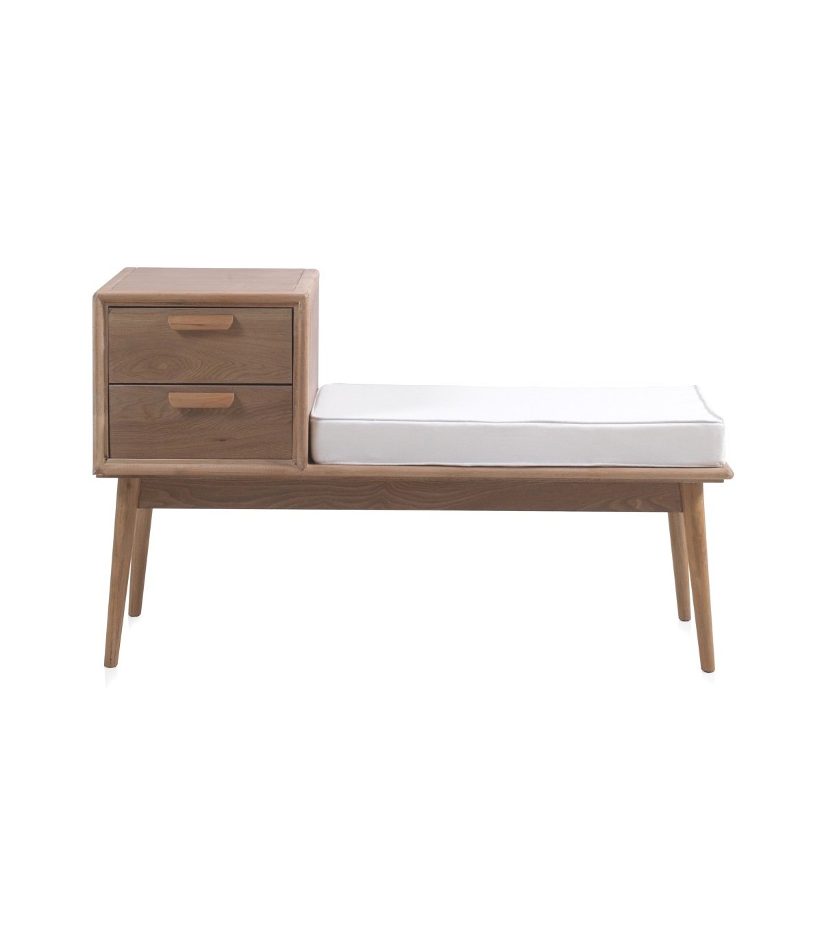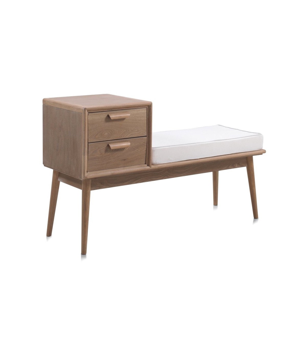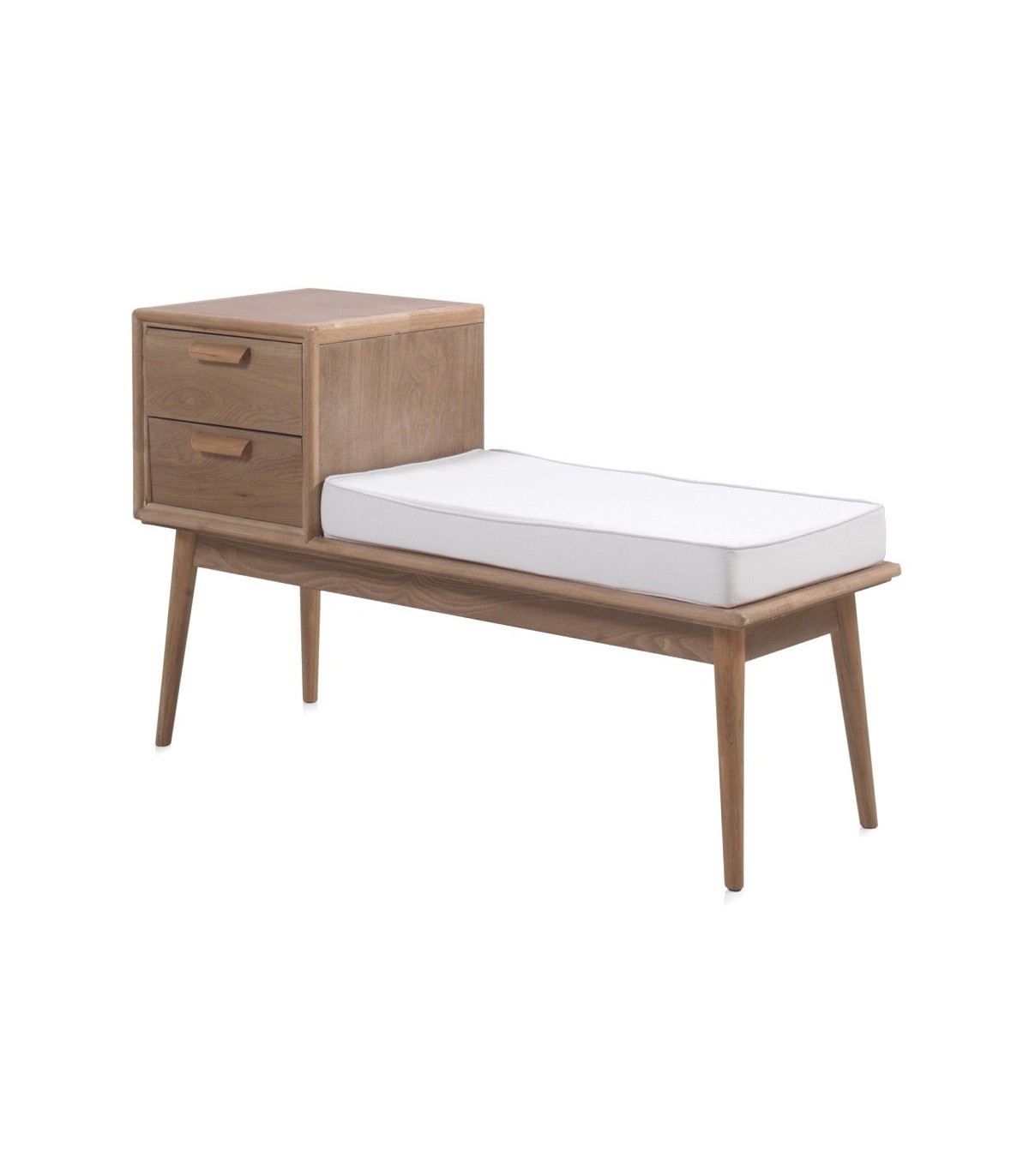 • Banco pie de cama, 2 cajones, 1 cojín, estilo nórdico.