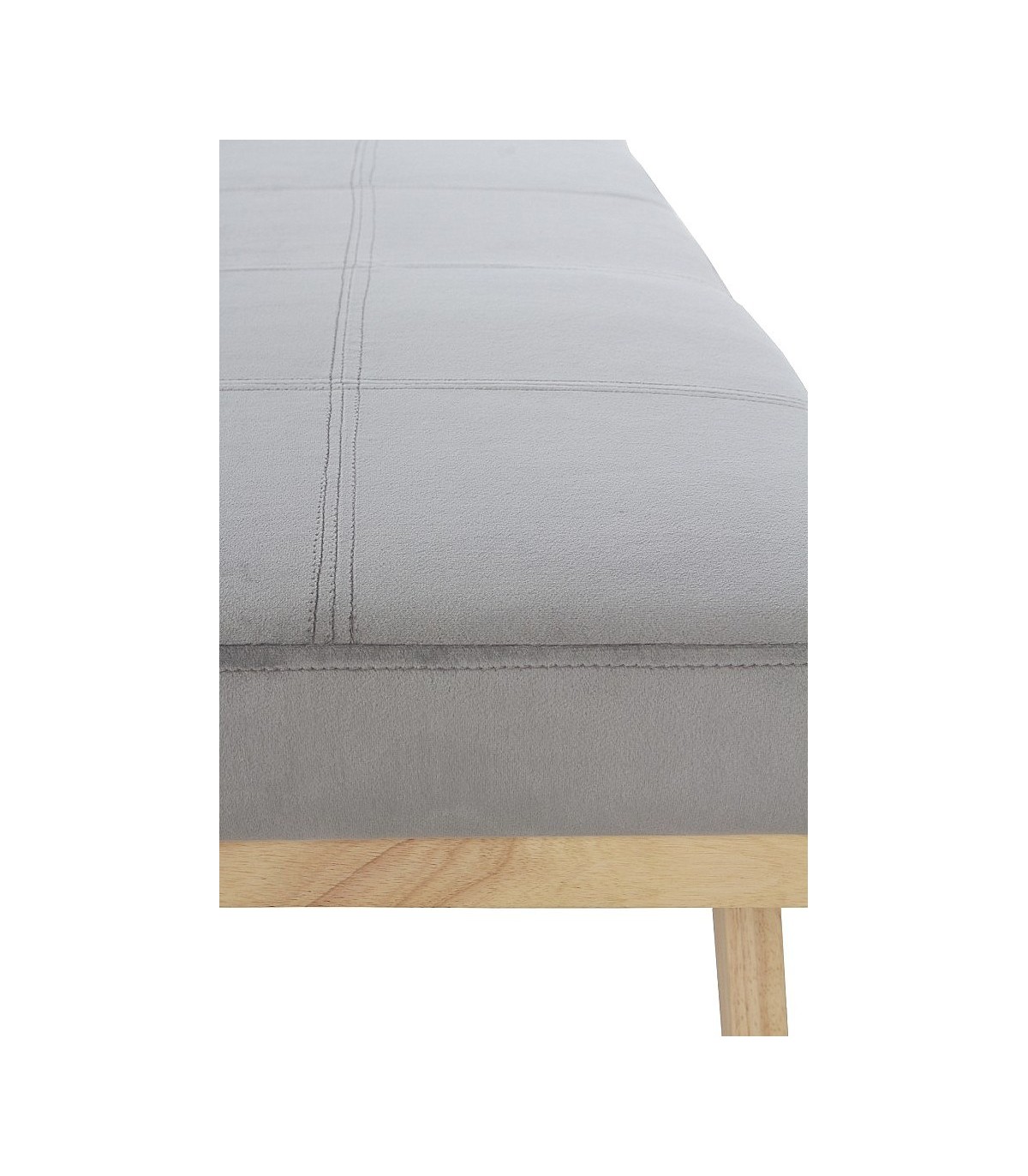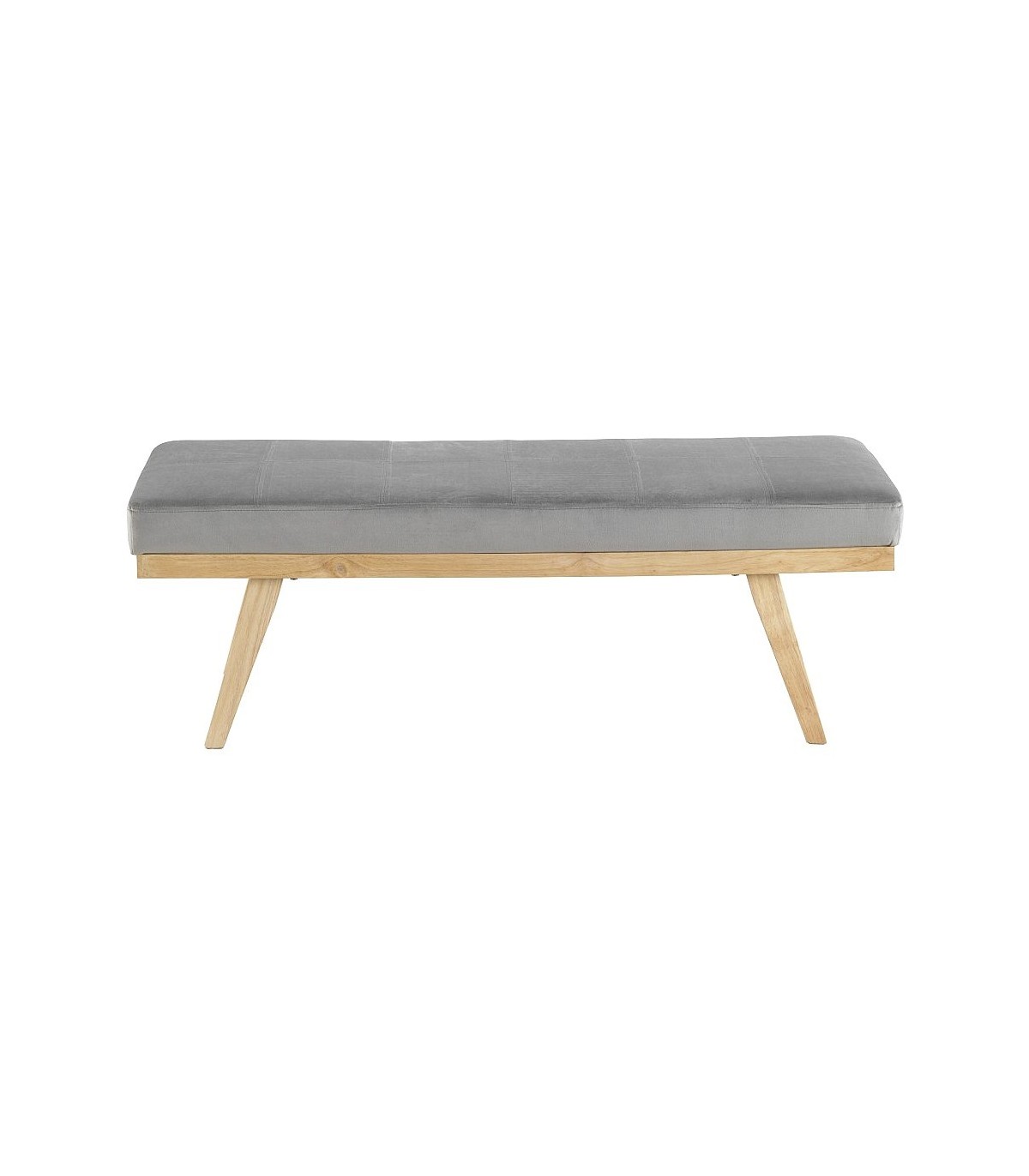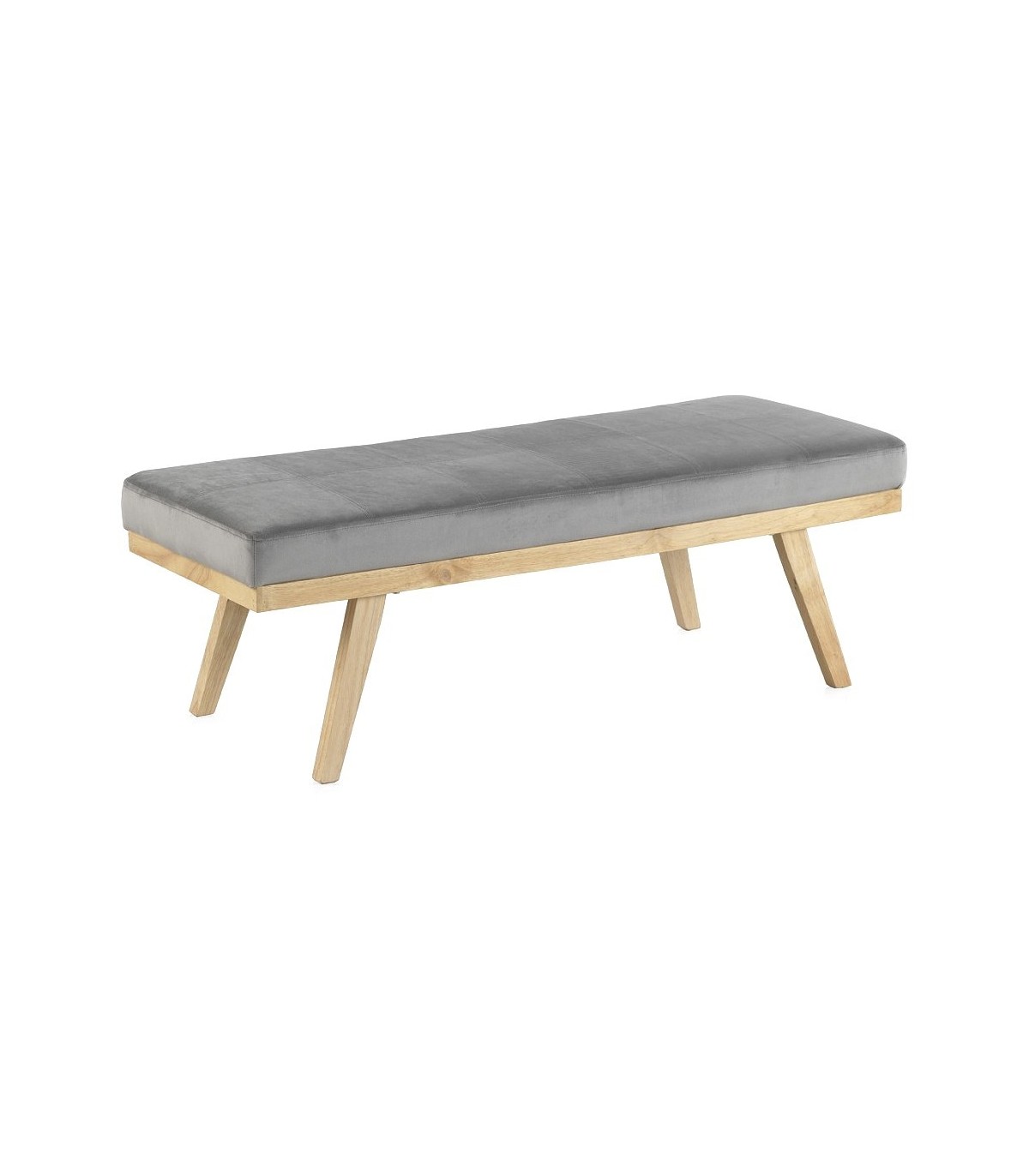 Banqueta pie de cama de linea nórdica, un banco sencillo pero muy elegante, destacar el juego de pespuntes en el cojín del asiento.