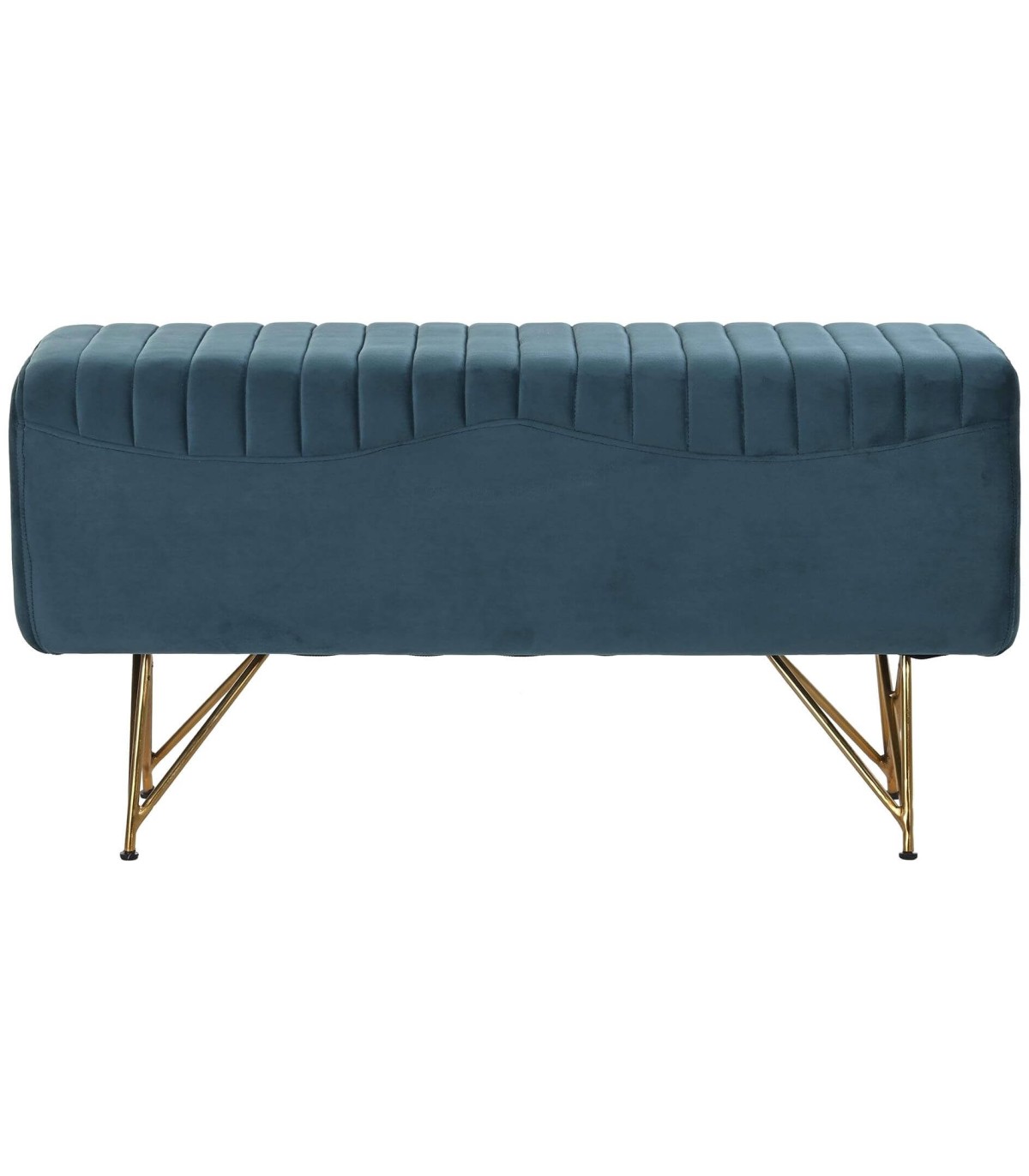 BANCO PIE DE CAMA 90 X 31 RONERO TAPIZADO AZUL METAL DORADO
