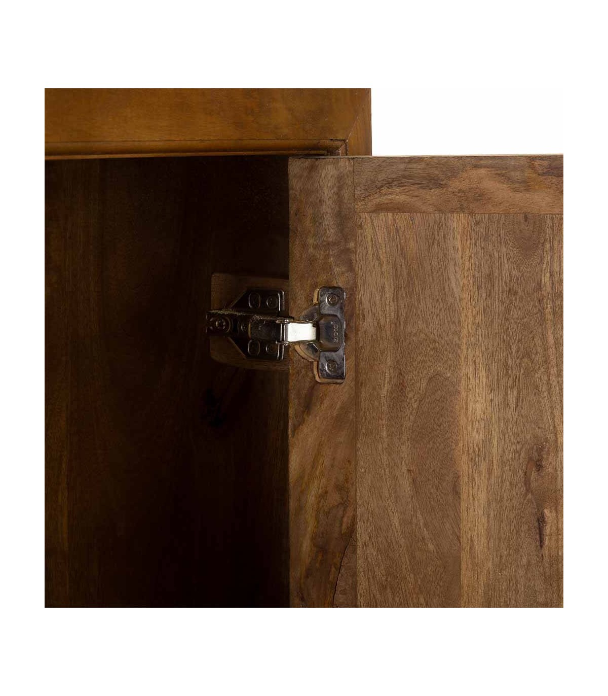 Es perfecto para guardar vajilla, ropa de hogar o accesorios, integrándose con facilidad en salones, cocinas o dormitorios de inspiración boho. La fabricación manual refuerza su encanto y lo convierte en una pieza única. Su estructura robusta garantiza estabilidad, mientras su estética natural viste el ambiente con serenidad y carácter.