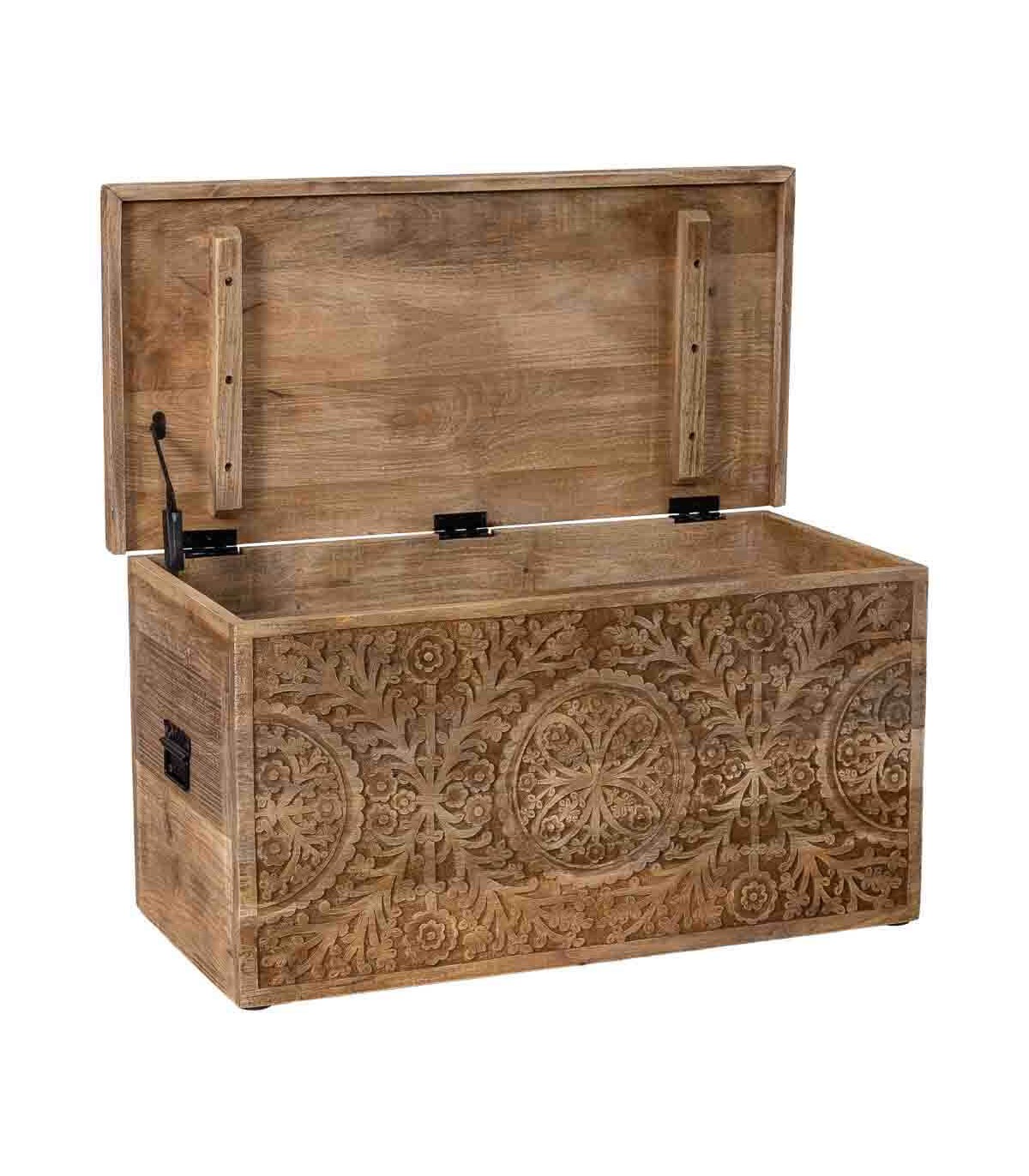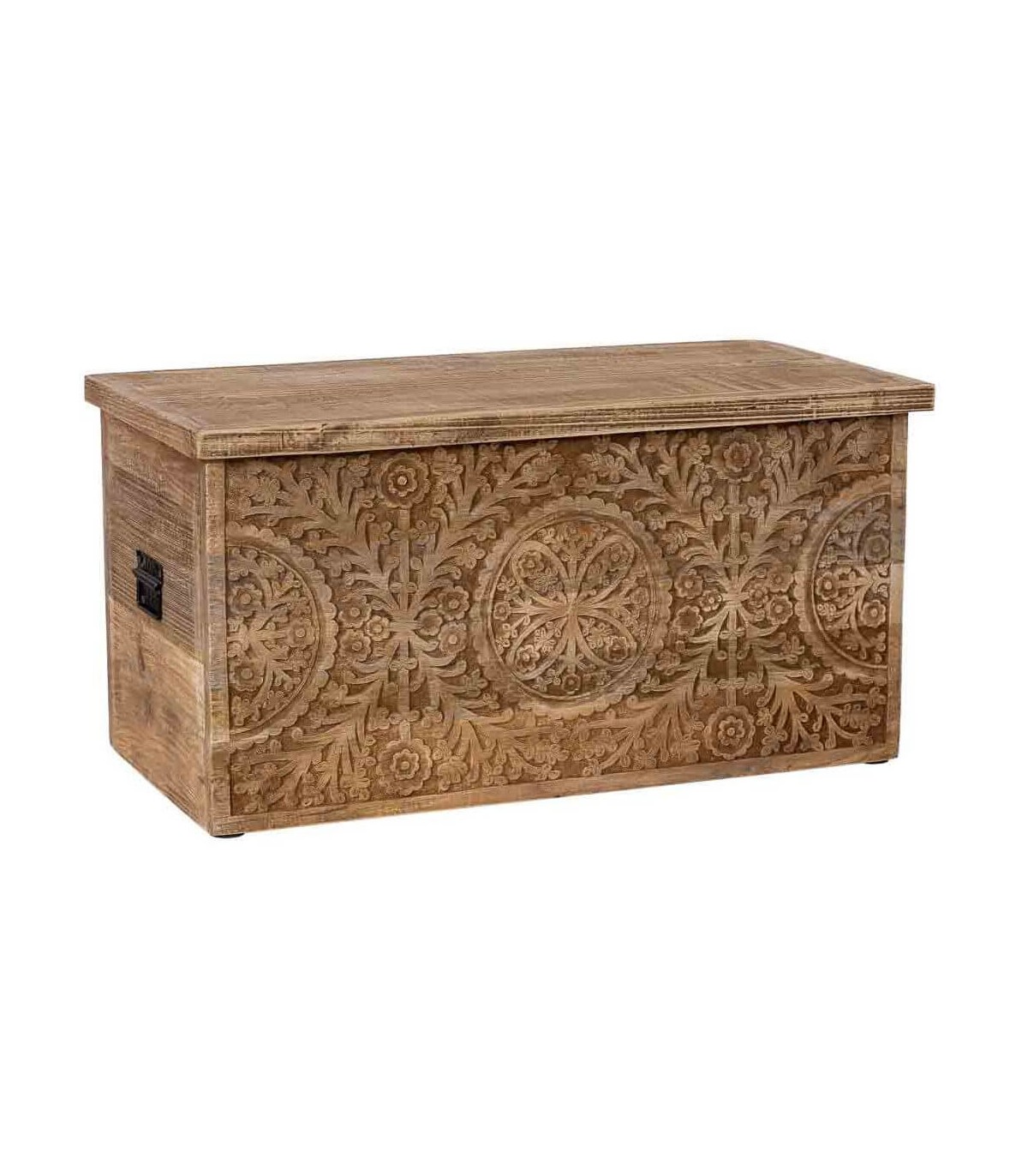 BAUL 80 X 40 X 42 MERNIA MADERA TALLADA NATURAL