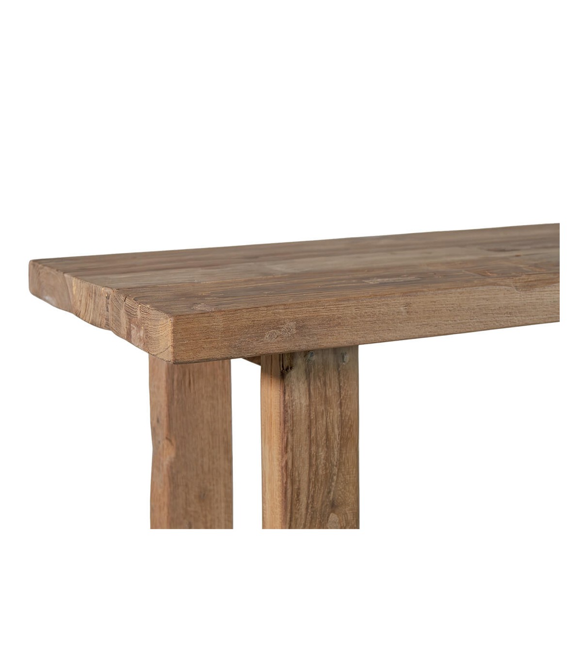 Consola de entrada de estilo boho concebida para aportar carácter y autenticidad al espacio desde el primer impacto visual. La madera maciza de teca reciclada transmite una estética natural y honesta, con una presencia sólida y muy decorativa. Su diseño de líneas sencillas resalta la belleza propia del material sin artificios innecesarios.