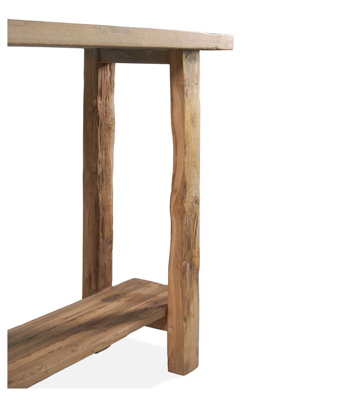 Las vetas, nudos y marcas propias de la madera refuerzan su identidad única. La estructura abierta aporta ligereza visual y funcionalidad en el uso diario. Una pieza de fabricación artesanal pensada para interiores que valoran lo natural y lo singular.