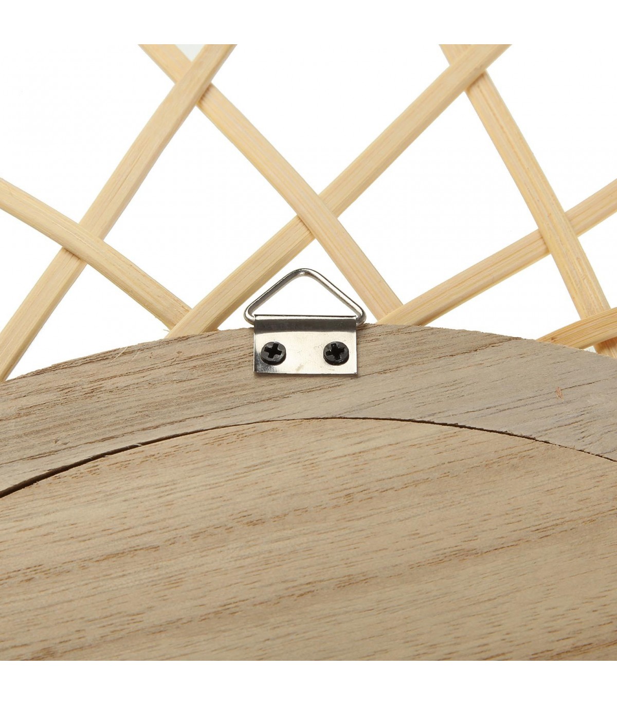 Bonito espejo realizado en fibras naturales, una pieza muy fresca que aporta muchos matices.
