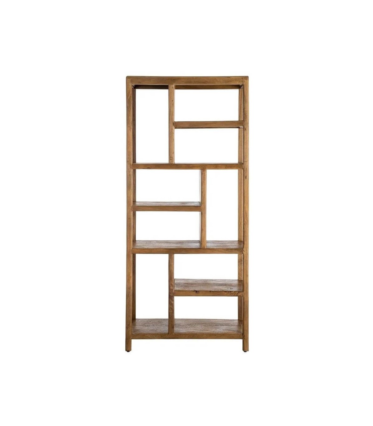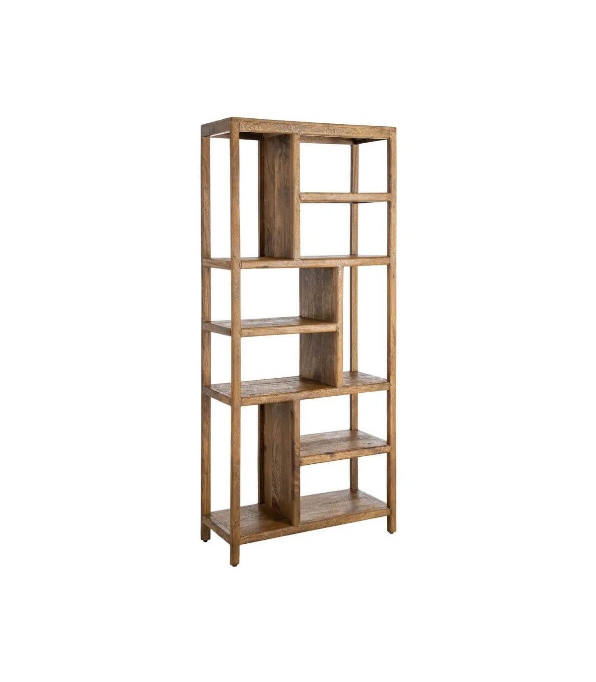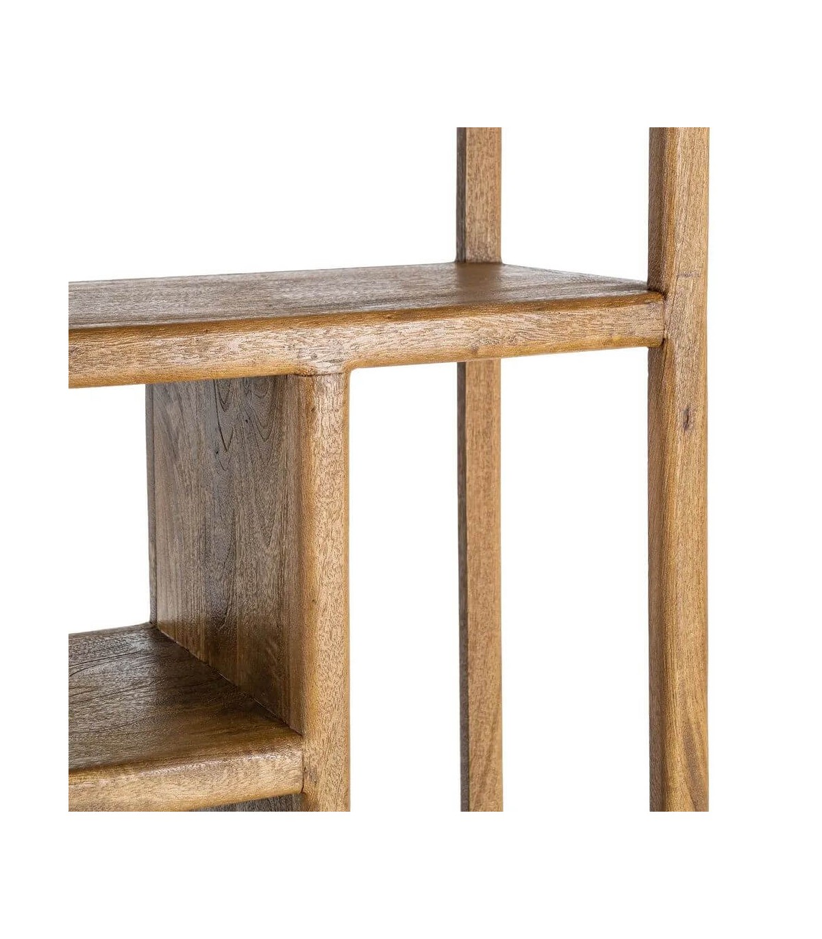 Su estructura escalonada permite organizar libros y objetos decorativos de forma ordenada, manteniendo una lectura visual fluida. El acabado en madera natural realza la veta y refuerza su carácter artesanal. Una pieza pensada para interiores donde prima la funcionalidad, la naturalidad y el diseño sereno.