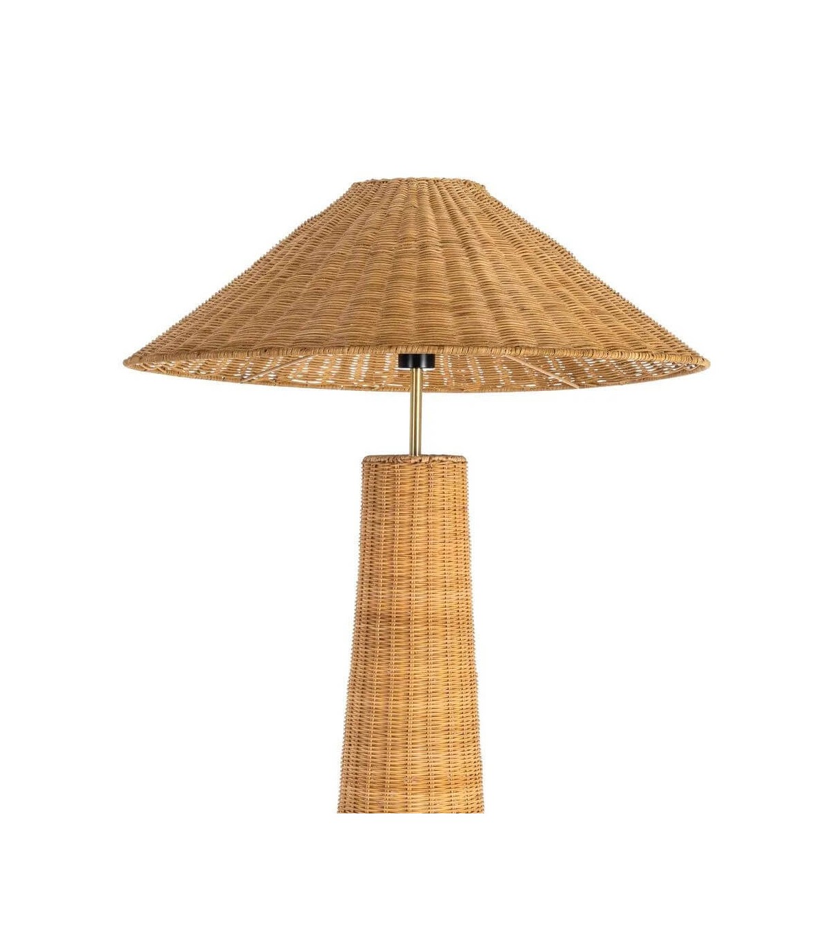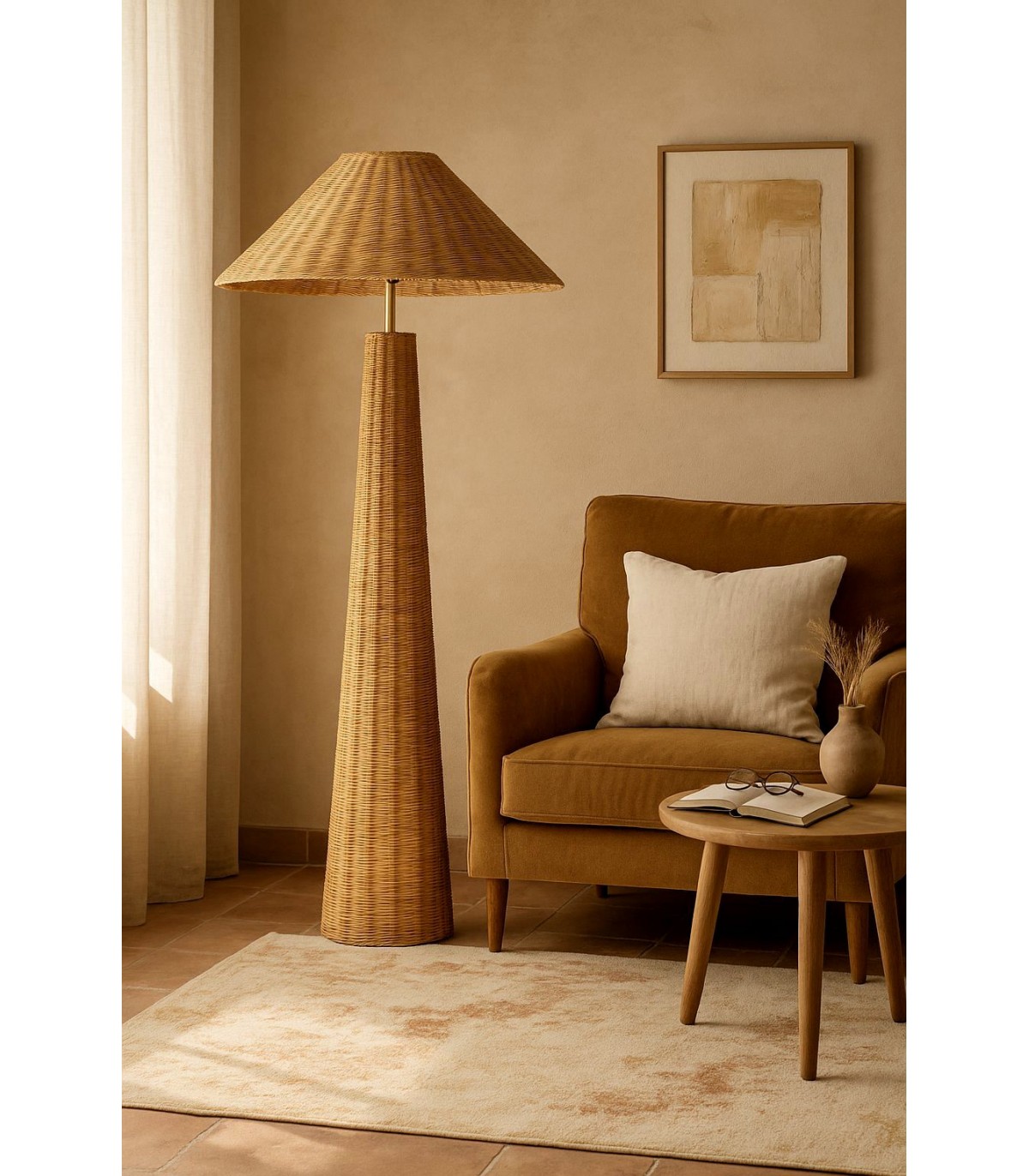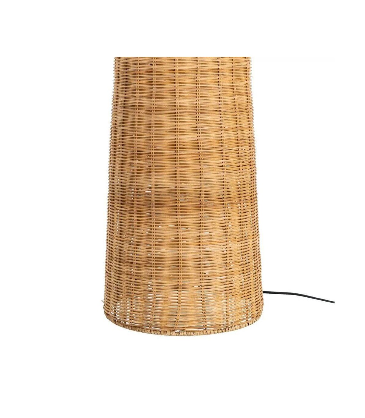 Esta lámpara de pie XL aporta calidez y carácter artesanal a cualquier ambiente, creando una luz suave y envolvente que transforma el espacio. Su base alta y cónica de ratán trenzado a mano destaca por la textura natural y las vetas únicas del material, reflejando la belleza de lo hecho a mano.