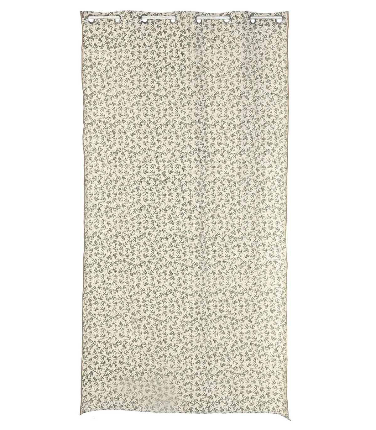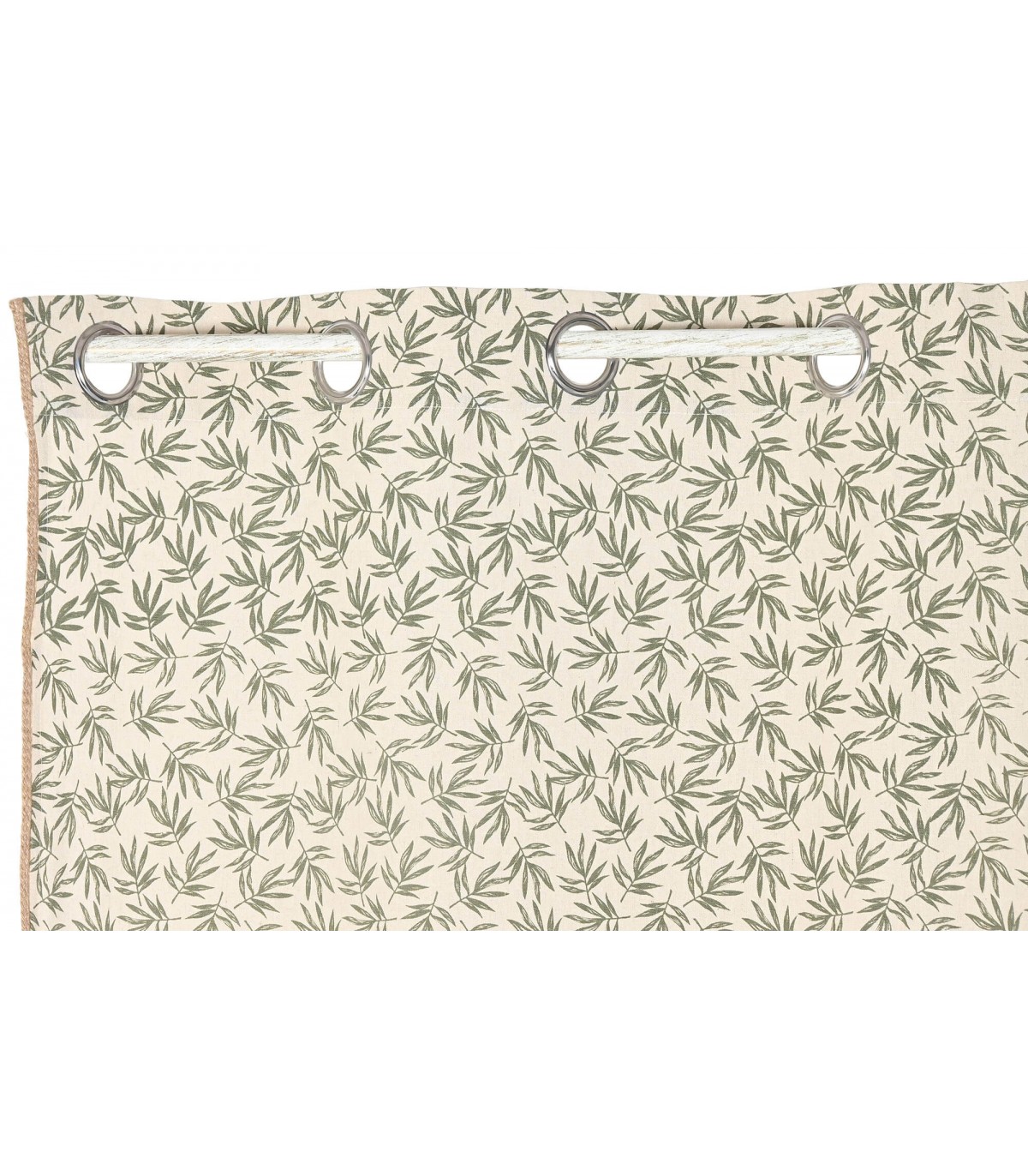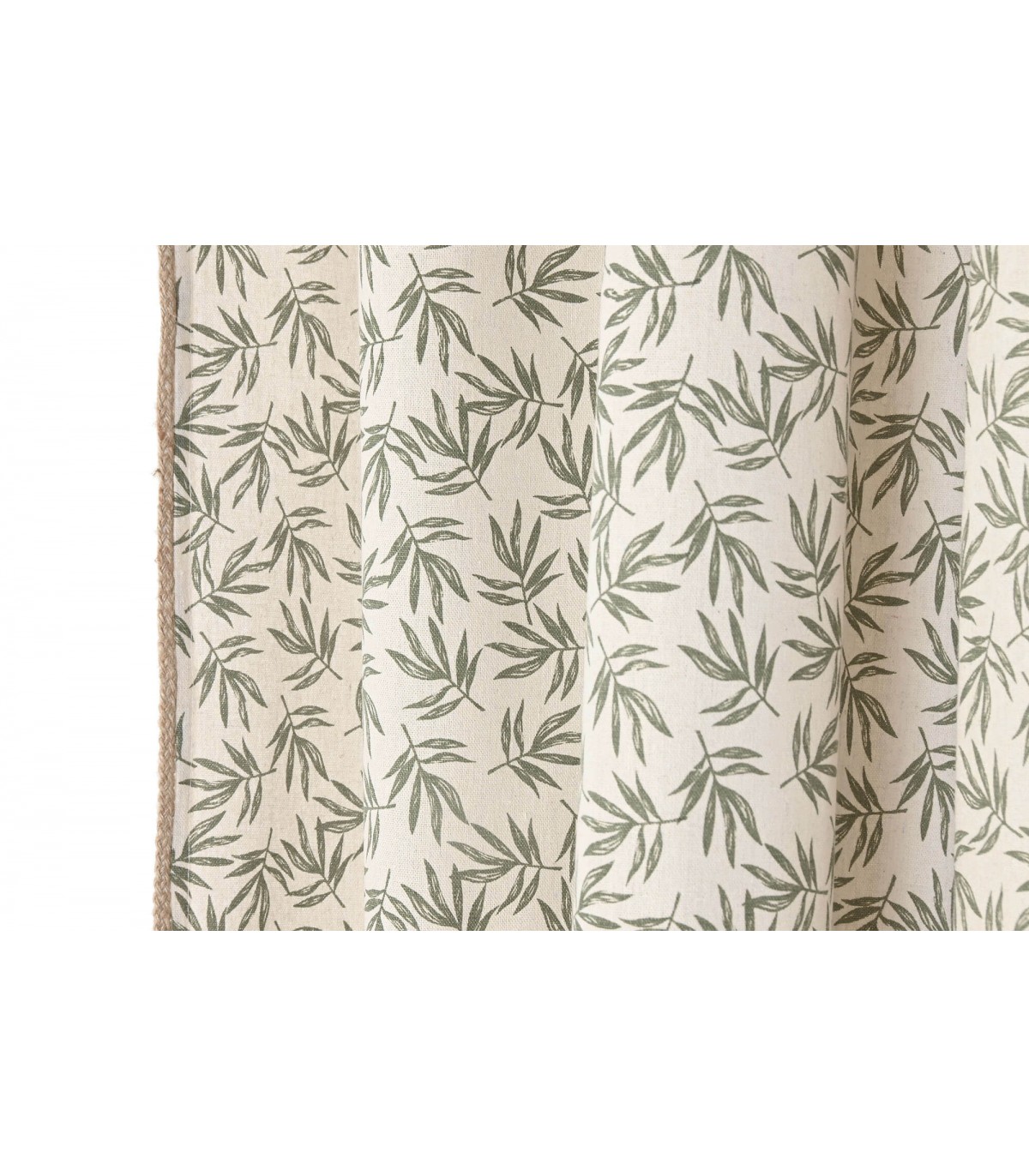SET 2 CORTINAS 140 X 260 LAUREL ALGODON NATURAL ESTAMPADO VERDE DETALLE YUTE