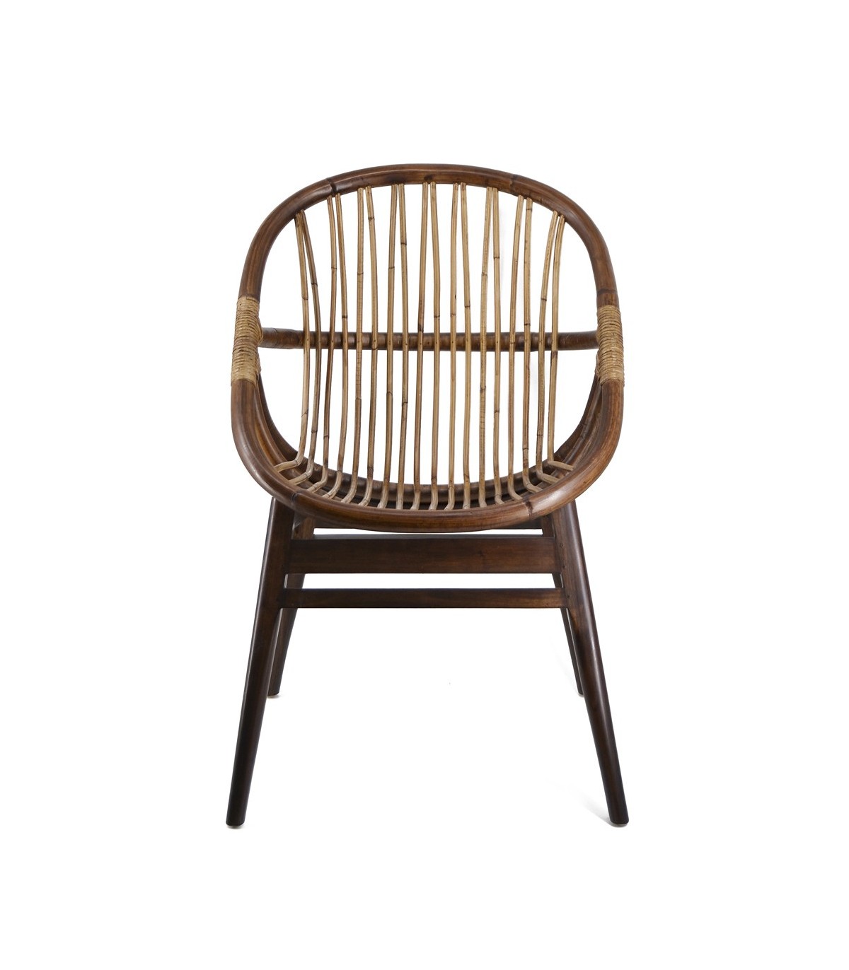 Sillón de comedor cómodo combinando en madera de mindi teñida en color y ratán natural, un sillón muy original guardando la esencia colonial, perfecto para tu comedor