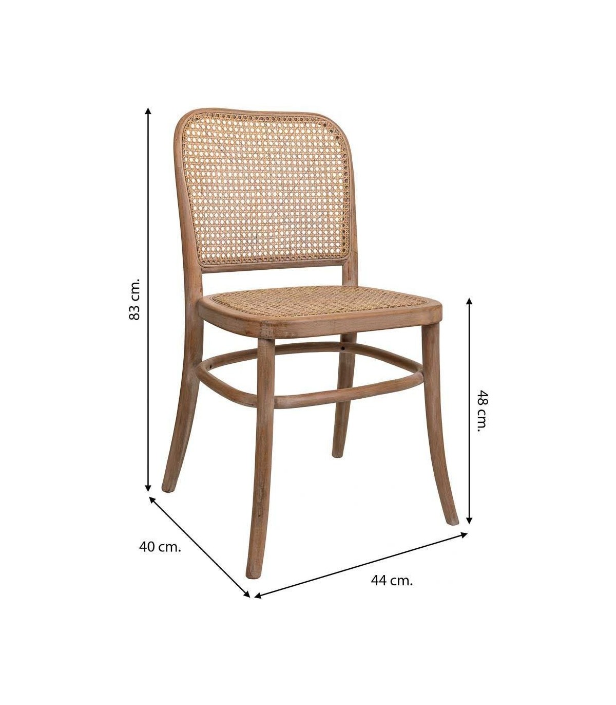 Bonita silla bien rematada con una estructura en madera maciza de olmo y ratán, una pieza que encaja perfectamente en cualquier tipo de decoración, un acierto seguro.