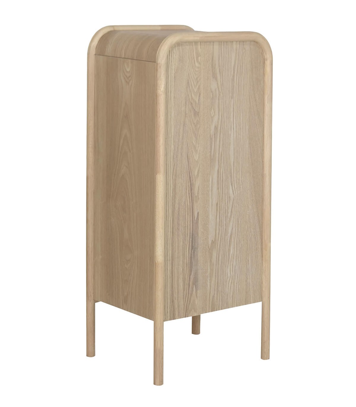 Su estructura compacta permite aprovechar el espacio en dormitorios o recibidores con elegancia. Combina funcionalidad y diseño orgánico, ideal para interiores relajados y luminosos. Pieza equilibrada y duradera que transmite serenidad y estilo contemporáneo.