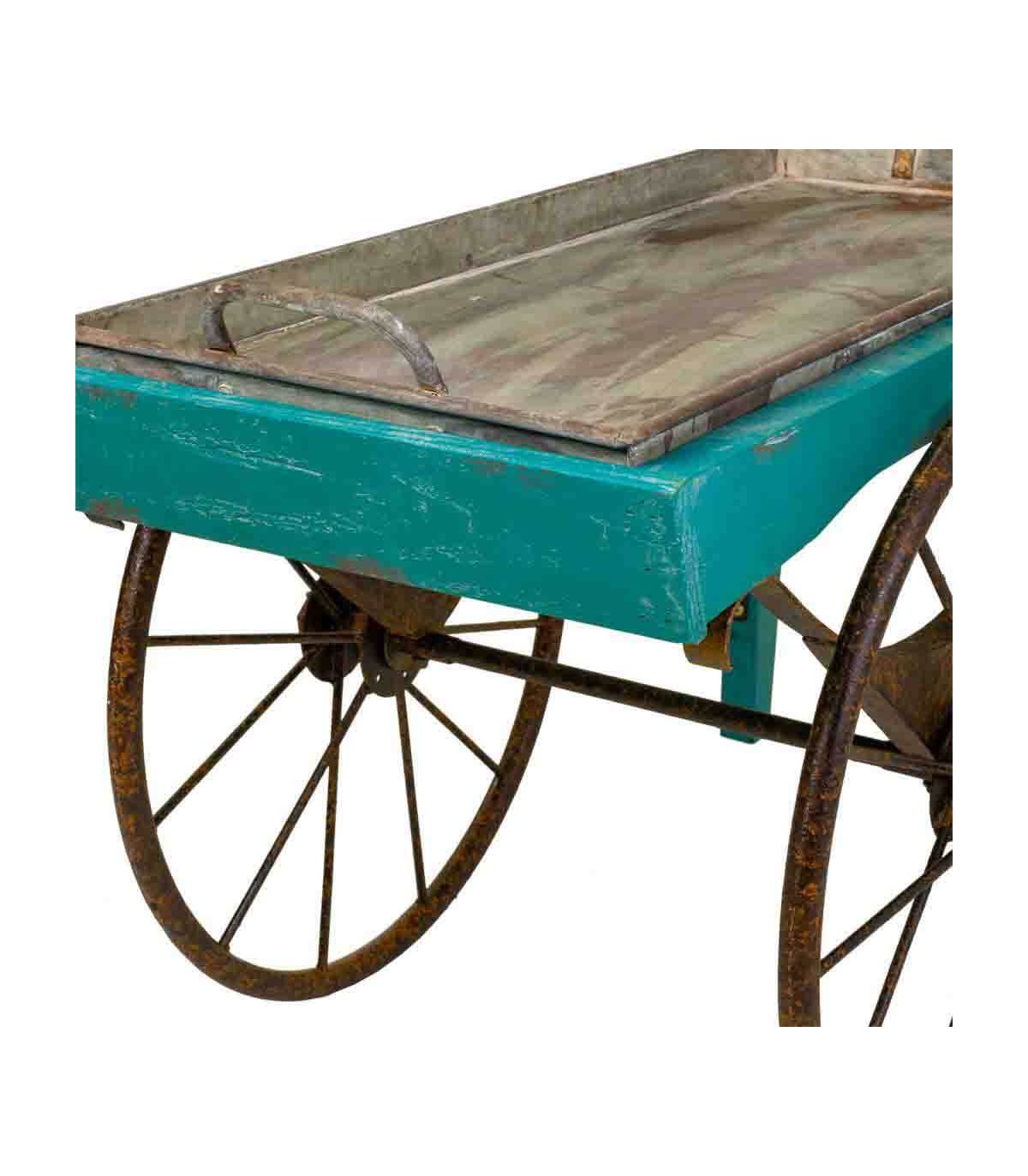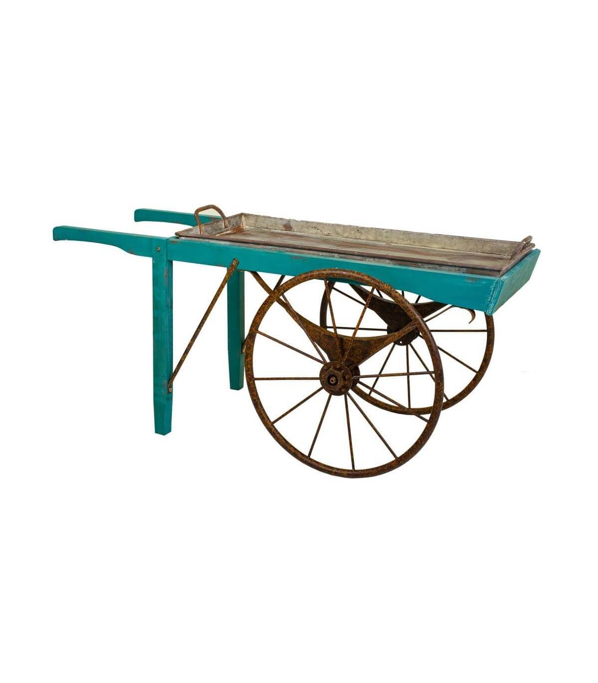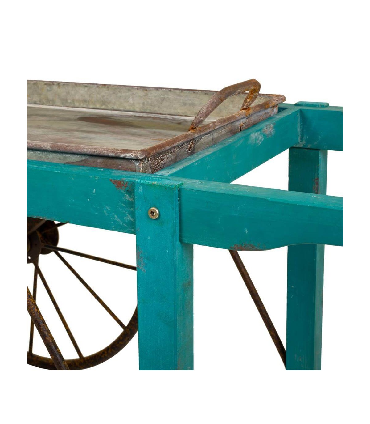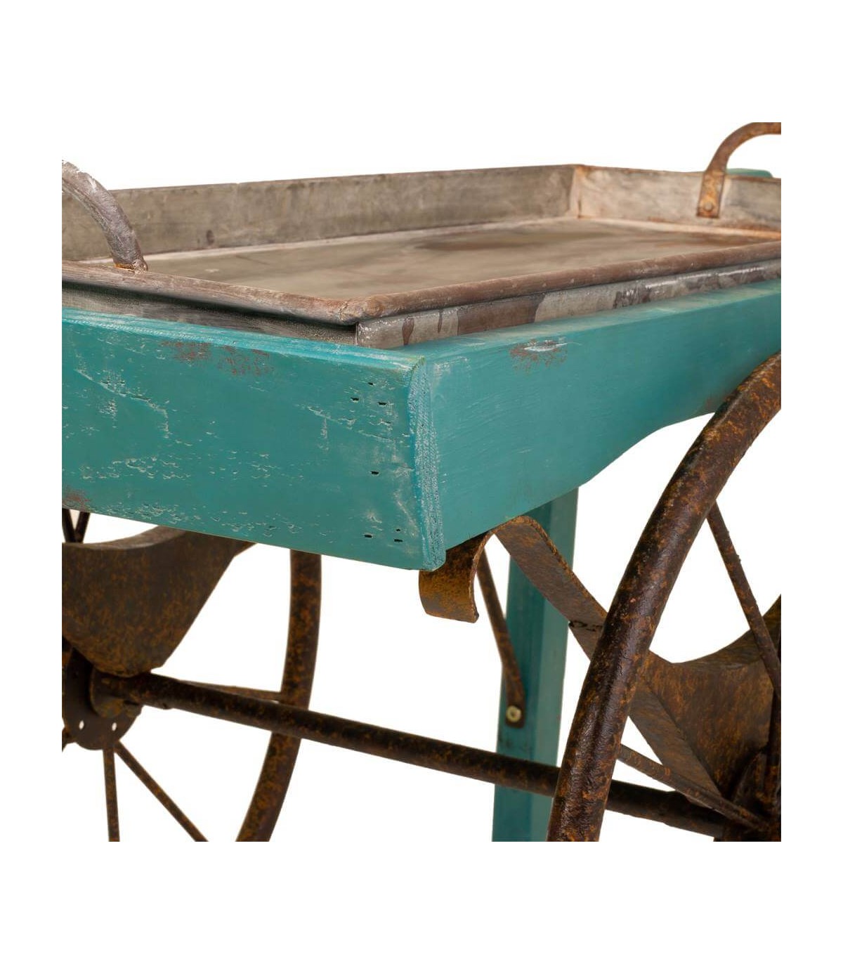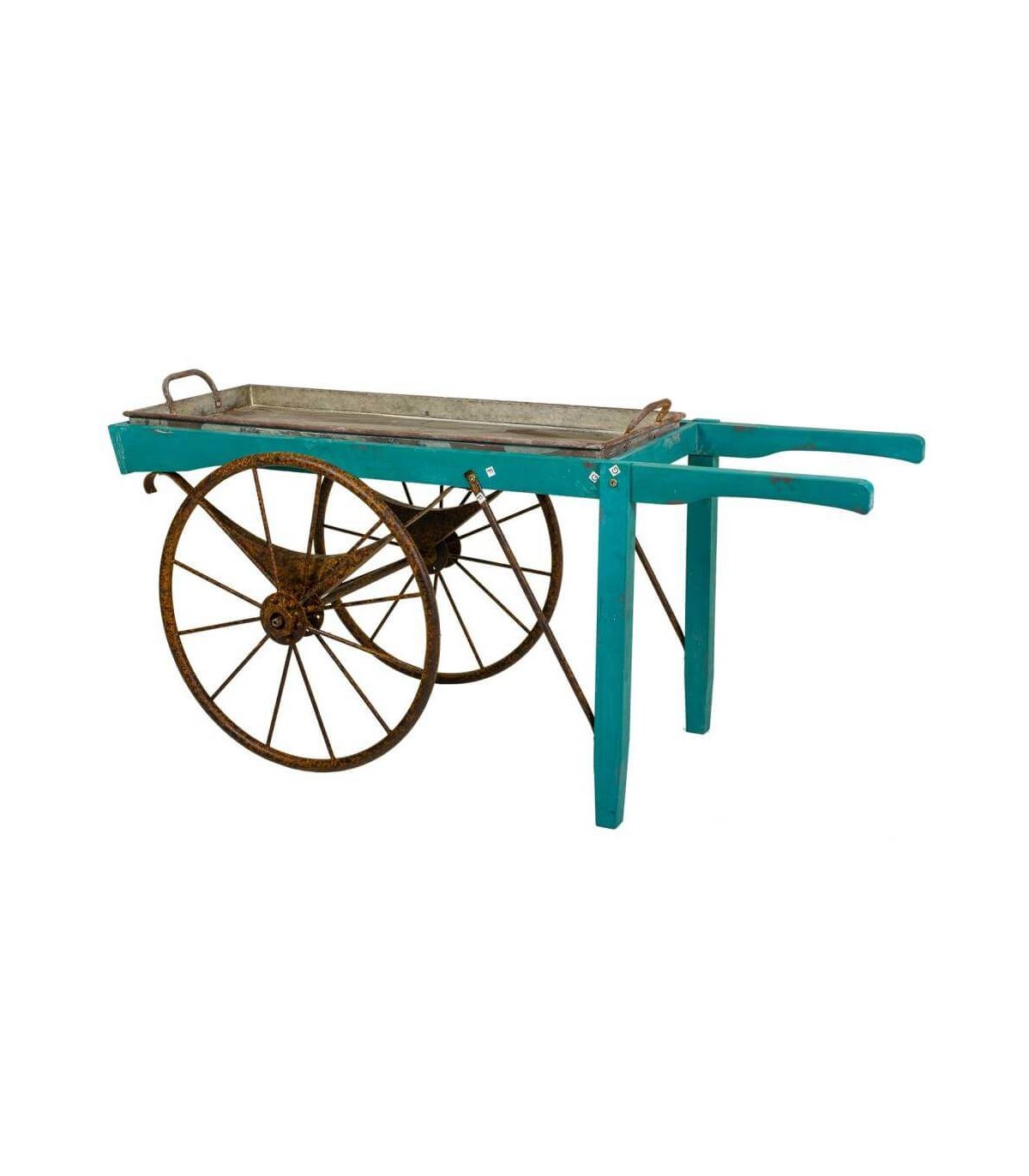 CARRO EXPOSITOR 145 X 60 X 70 GREDOS MADERA AZUL METAL ENVEJECIDO