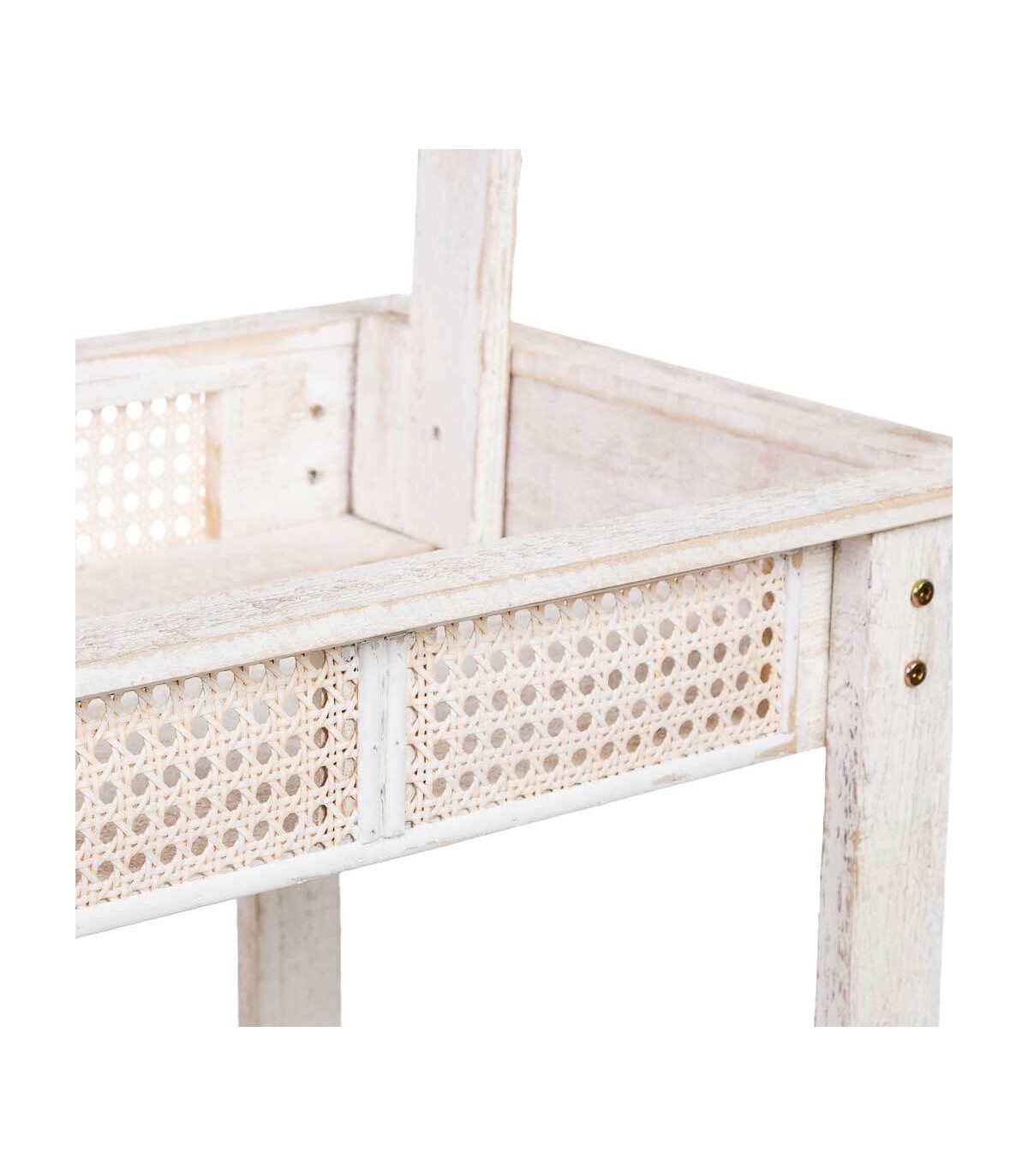 CARRO EXPOSITOR 90 X 44 X 125 MARLA MADERA Y RATAN BLANCO ROZADO