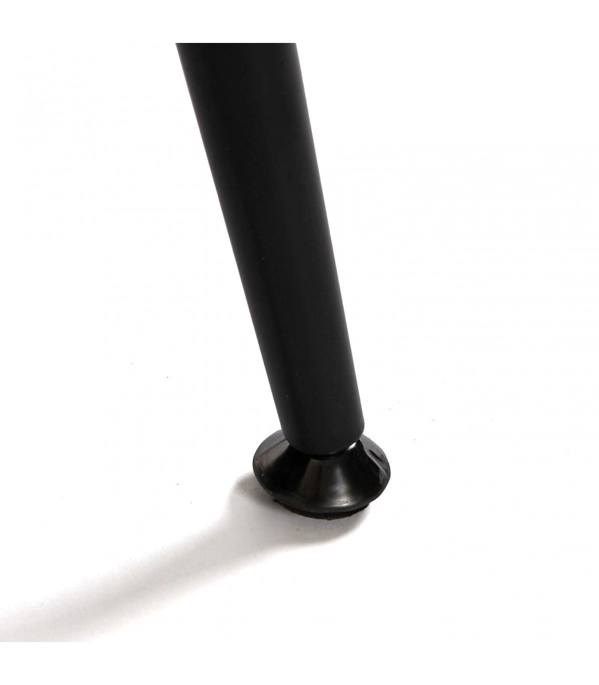 Las patas de metal negro le otorgan un contraste elegante y un soporte robusto, mientras que su tapizado en poliéster suave garantiza una experiencia acogedora y placentera. Su tamaño compacto la hace perfecta para espacios reducidos sin renunciar a la comodidad y el estilo.