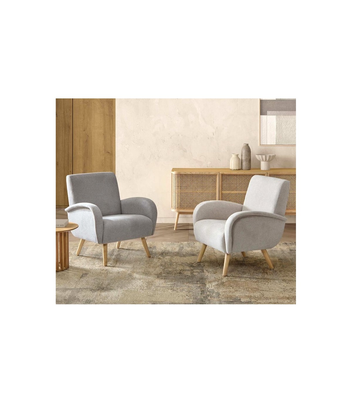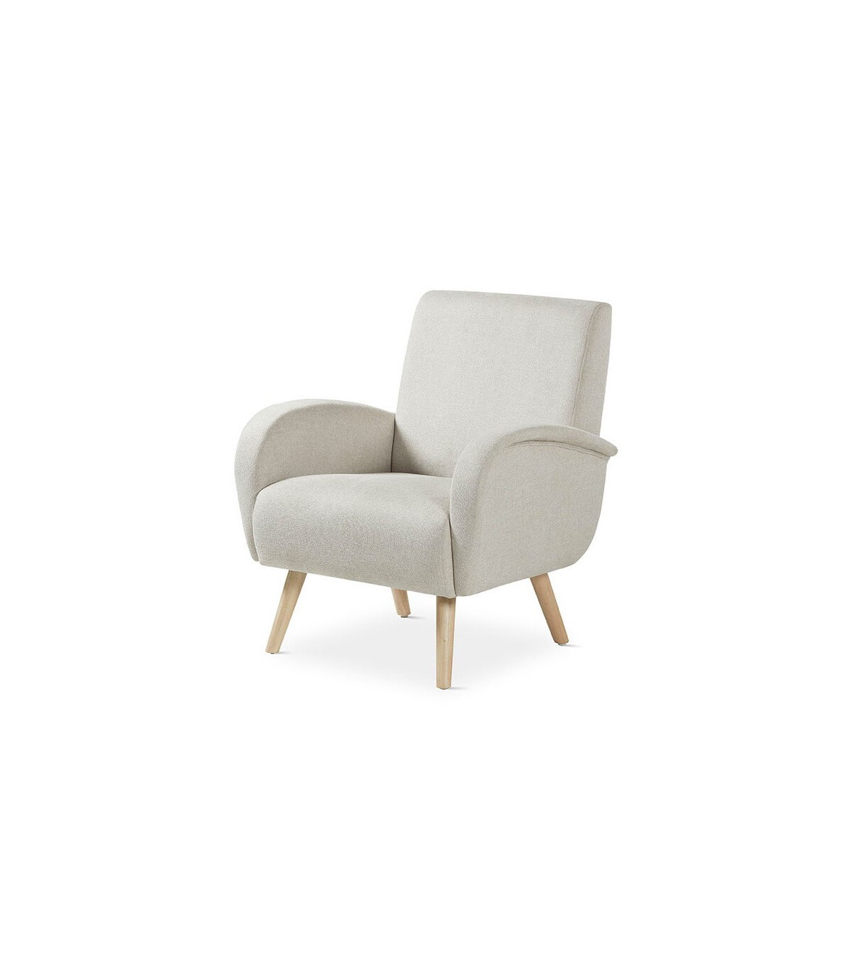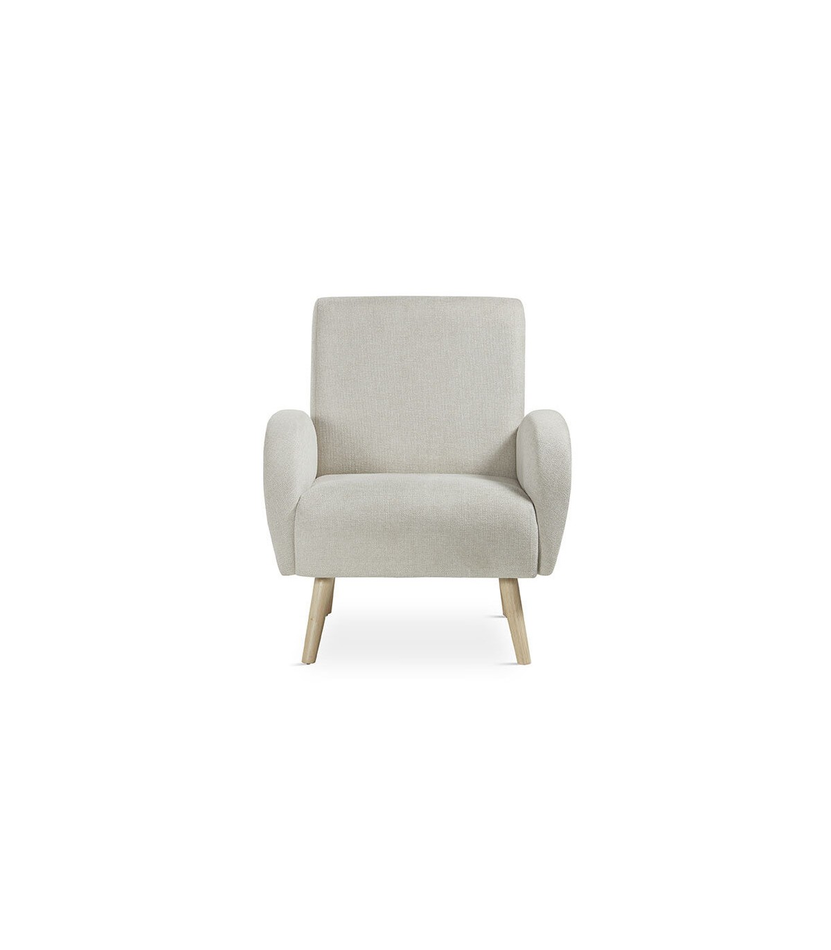 Butaca de estilo nórdico tapizado en color beige con las patas en madera acabado natural, un sillón muy cómodo que encaja bien en varios estilos de decoración.