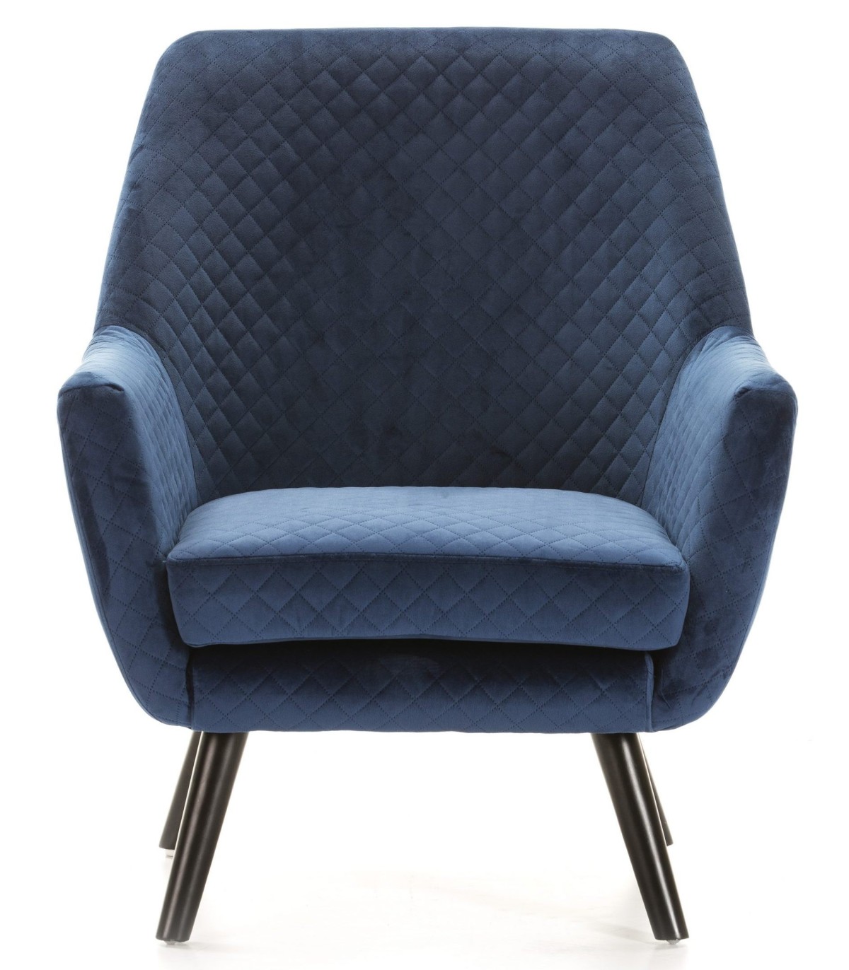 Acabado, patas acabado negro, respaldo rombos, textil poliester acabado terciopelo azul.