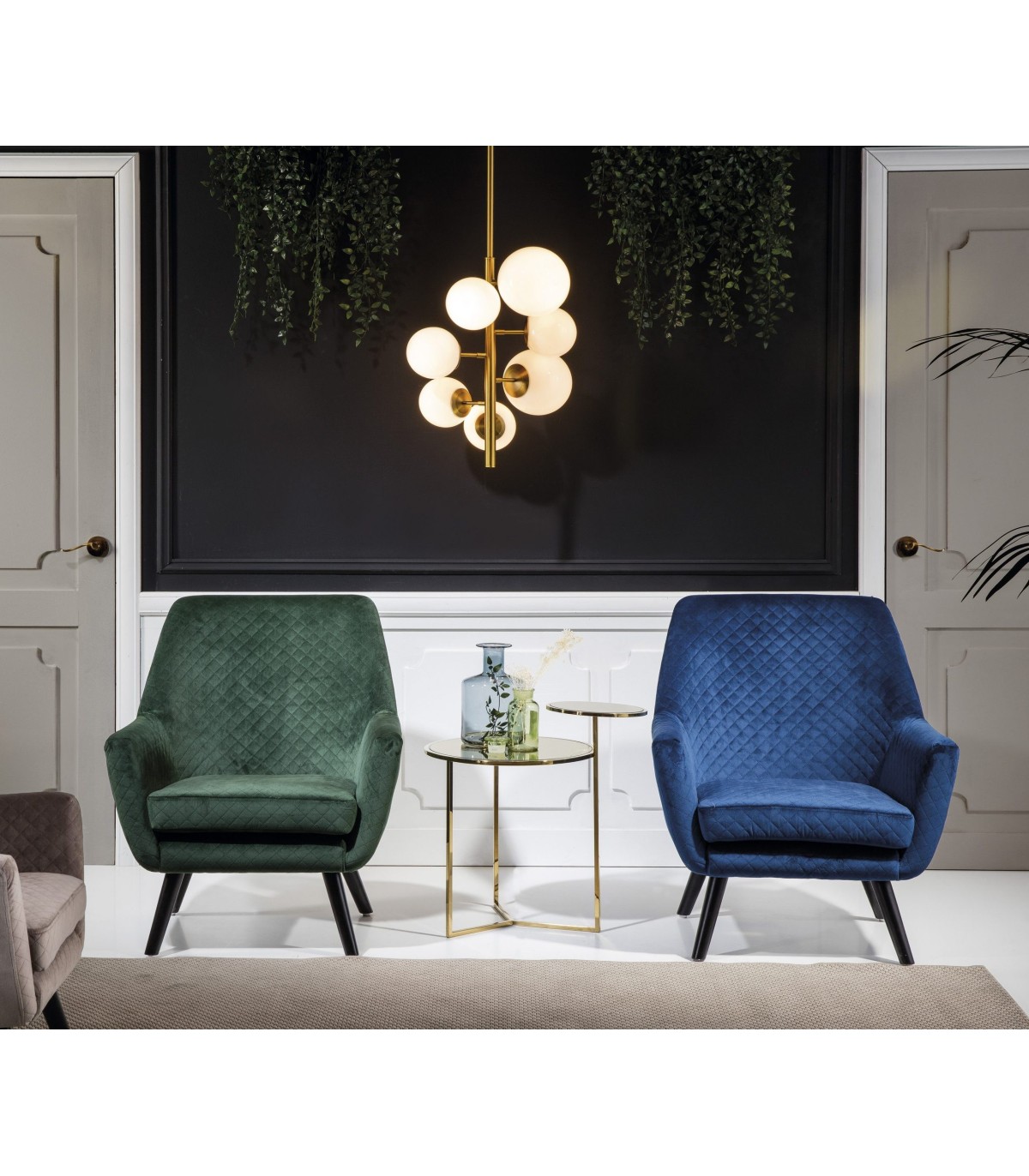 Sillón auxiliar, estilo contemporáneo realizado en tercipelo azul.Un sillón con personalidad,cómodo y adaptable a cualquier espacio.