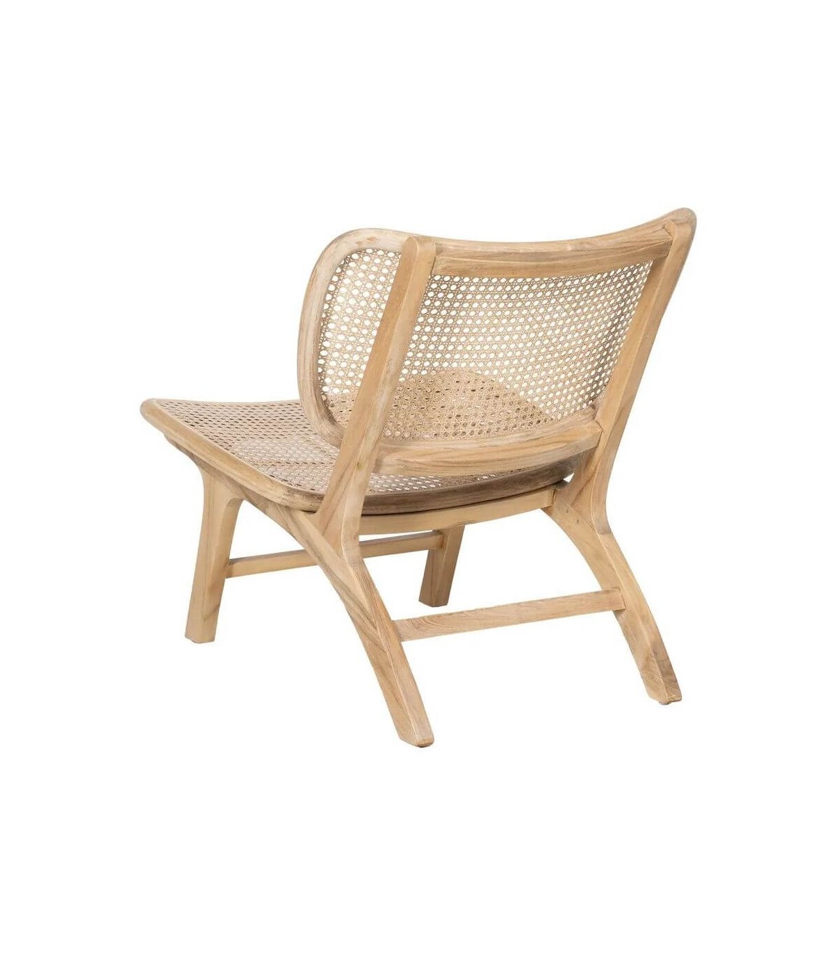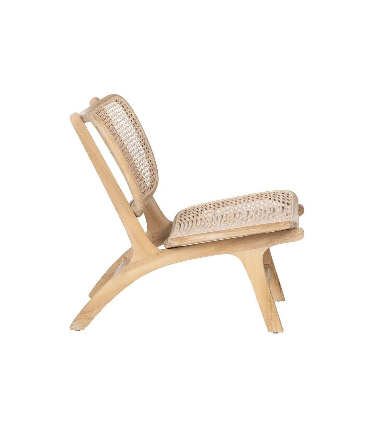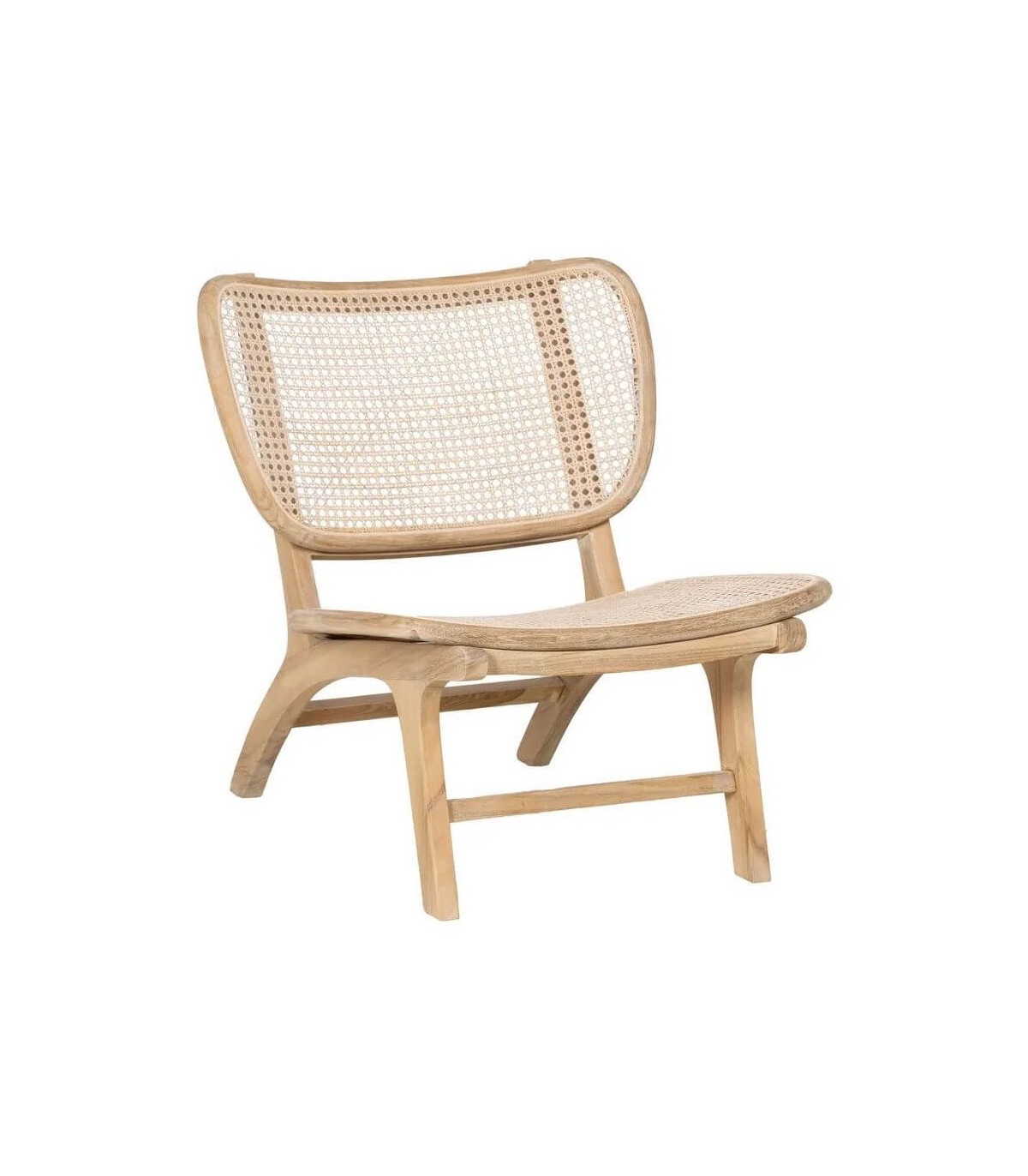 Déjate seducir por la calidez del estilo colonial con esta butaca baja de formas suaves y líneas envolventes. Fabricada en madera maciza de teca con asiento y respaldo de ratán natural, aporta ligereza visual y un toque exótico a cualquier rincón.