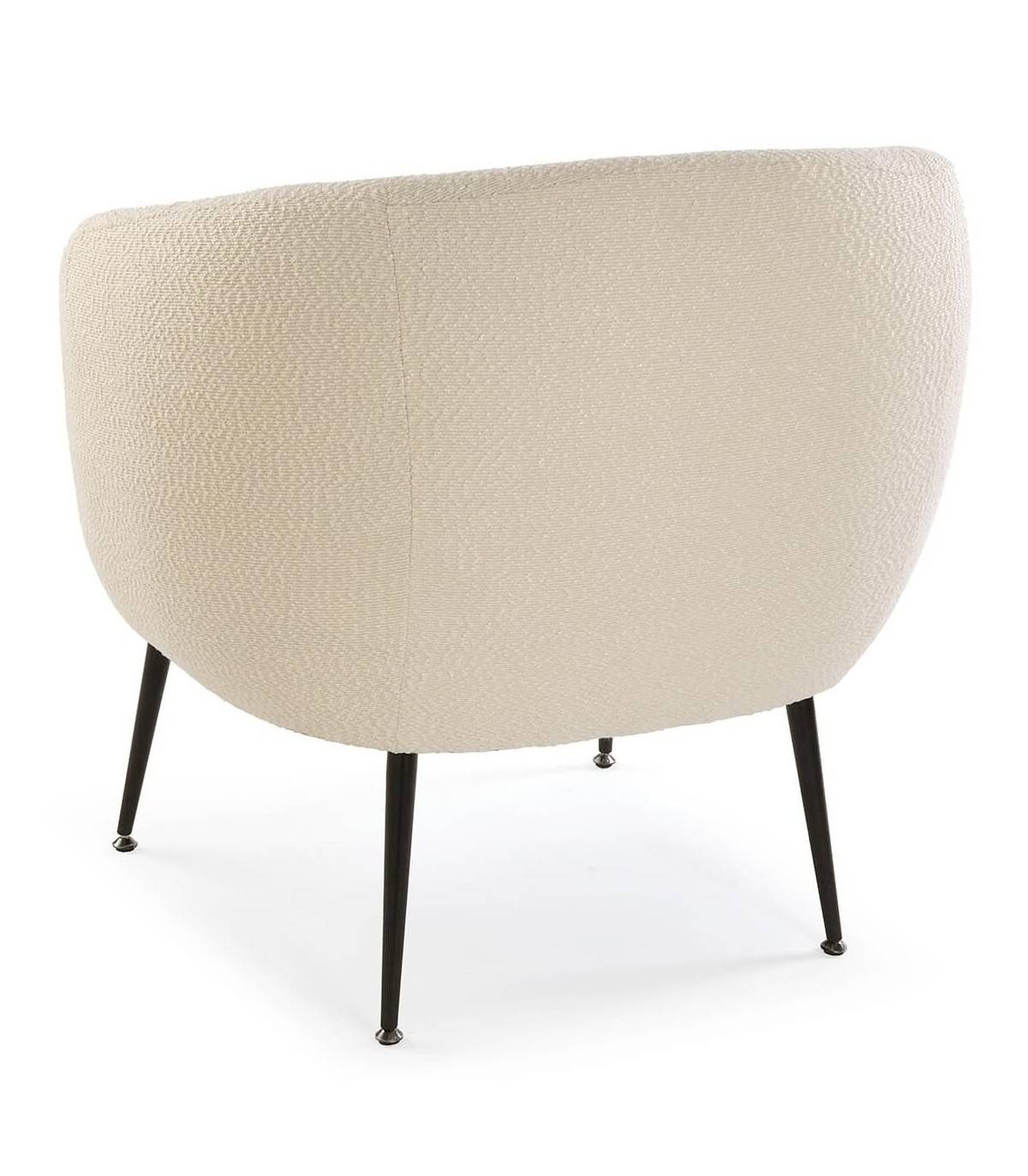 Butaca pequeña y cómoda, tapizada en poliéster color blanco roto, es la pieza ideal para complementar la decoración de dormitorios, salones o zonas de estar. Su diseño moderno y minimalista aporta un toque de sofisticación a cualquier espacio, ofreciendo además un asiento ergonómico y confortable.