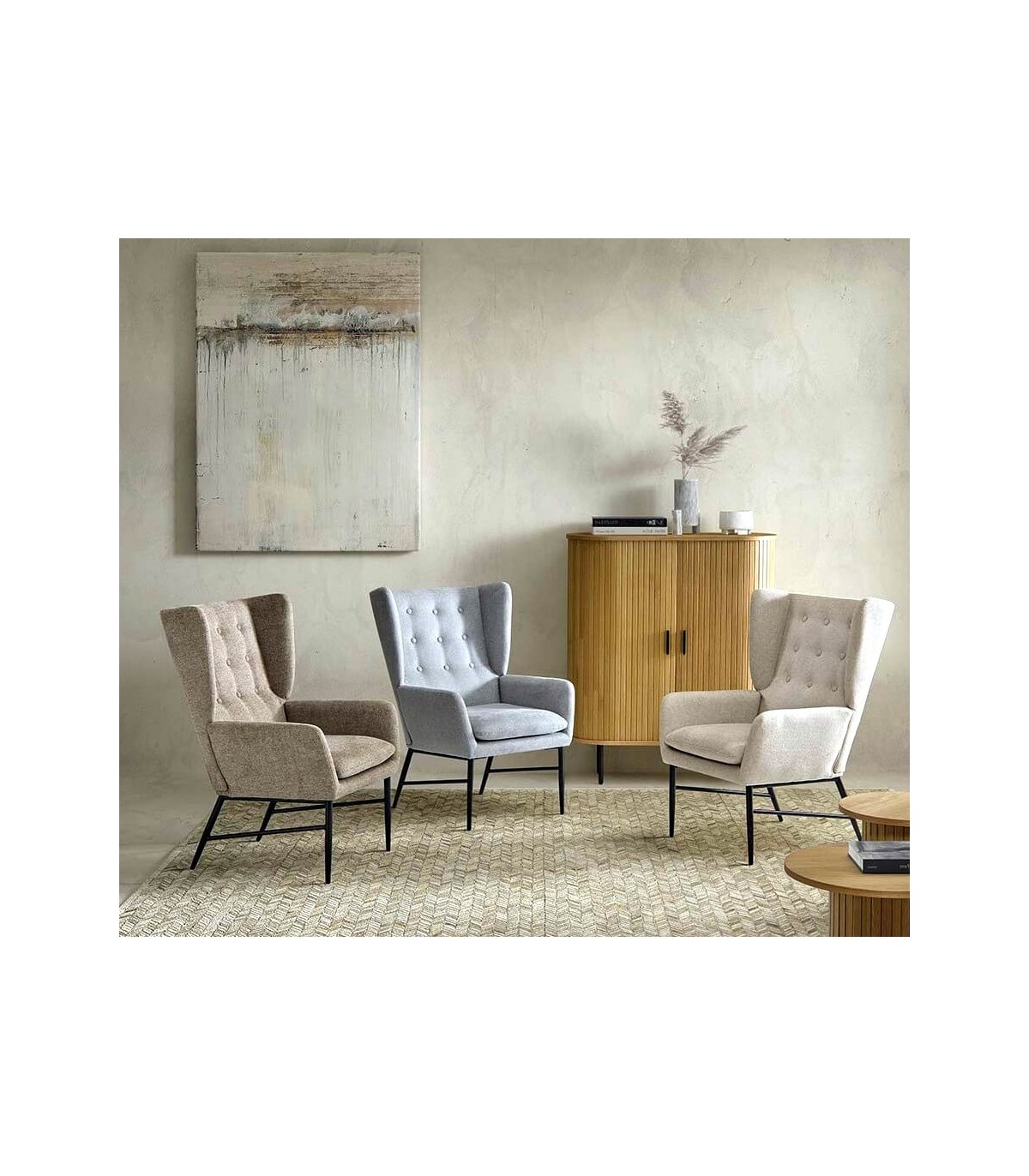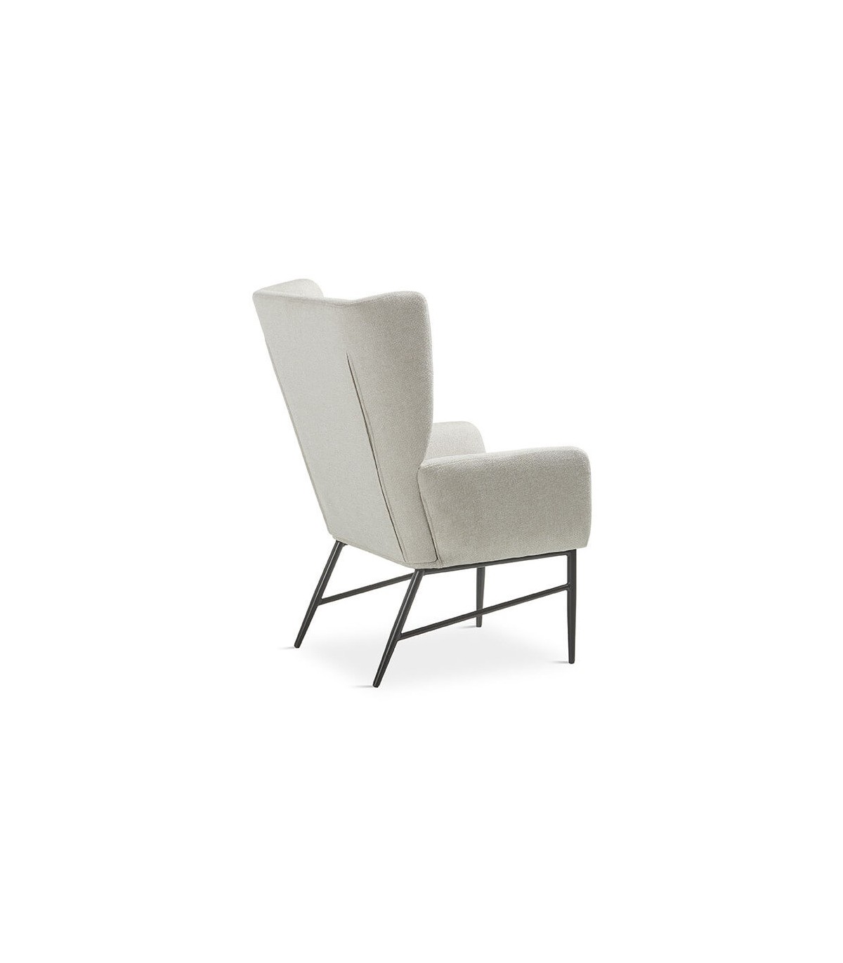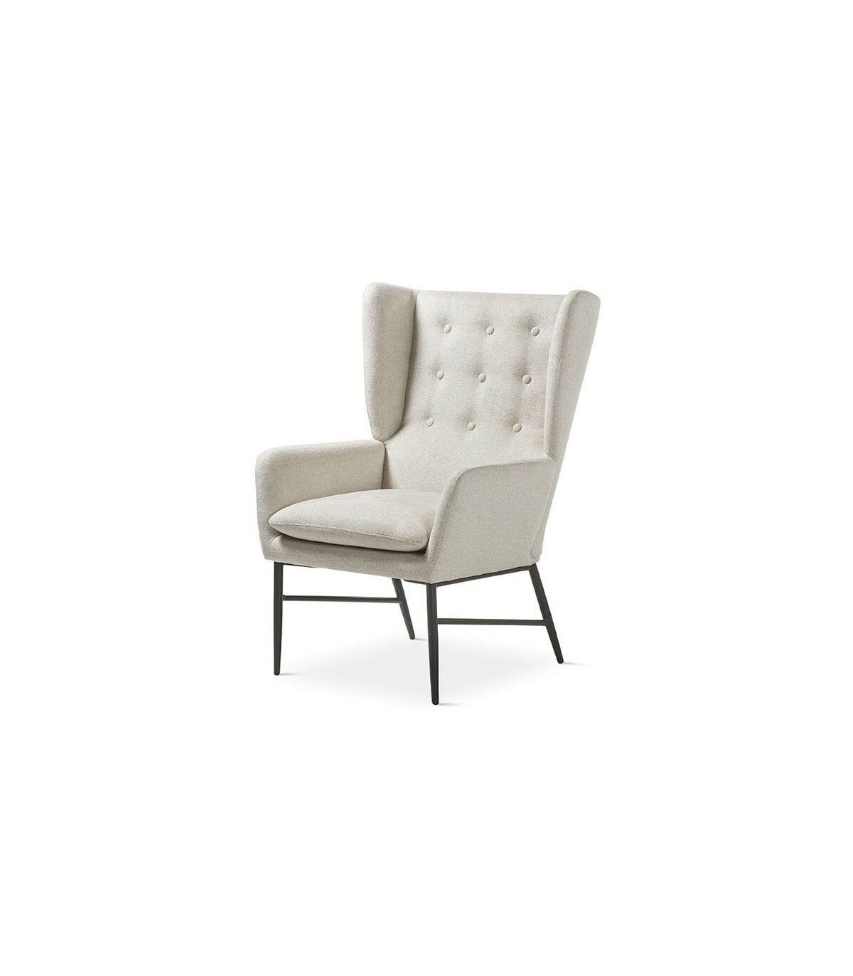 Butaca de estilo industrial, tapizado en color blanco roto con las patas en metal negro, un sillón muy cómodo y muy elegante, perfecto para un rincón de lectura, el salón o el dormitorio.
