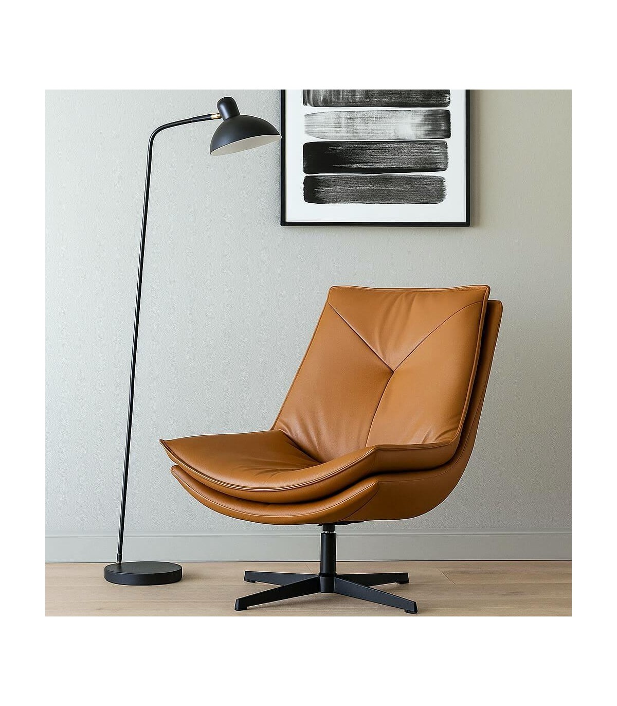 La base giratoria metálica en negro añade un toque industrial que refuerza su carácter actual. Perfecta para rincones de lectura, oficinas modernas o como pieza protagonista en salones con personalidad. Una elección inteligente que destaca por su comodidad, estilo y funcionalidad atemporal.