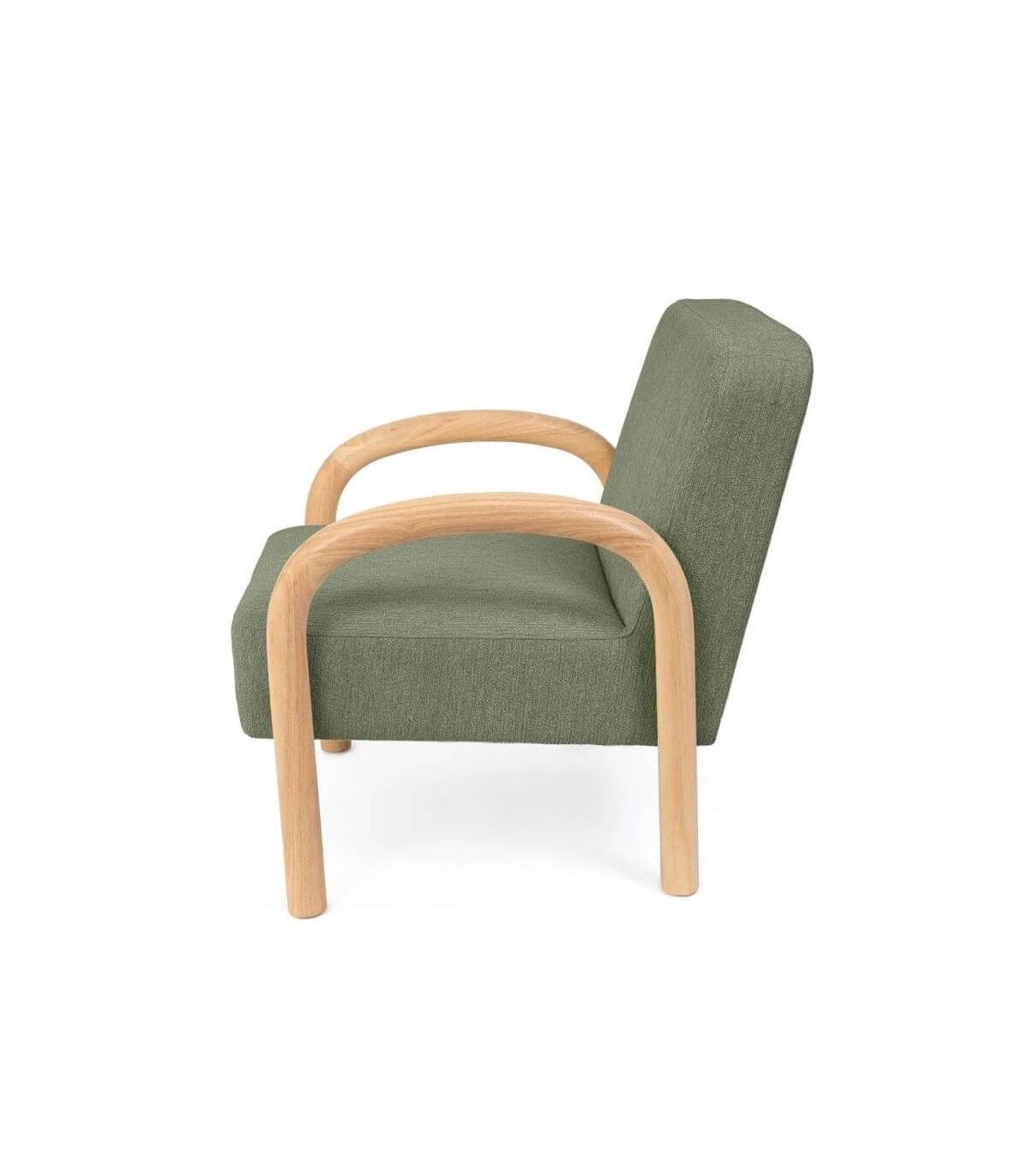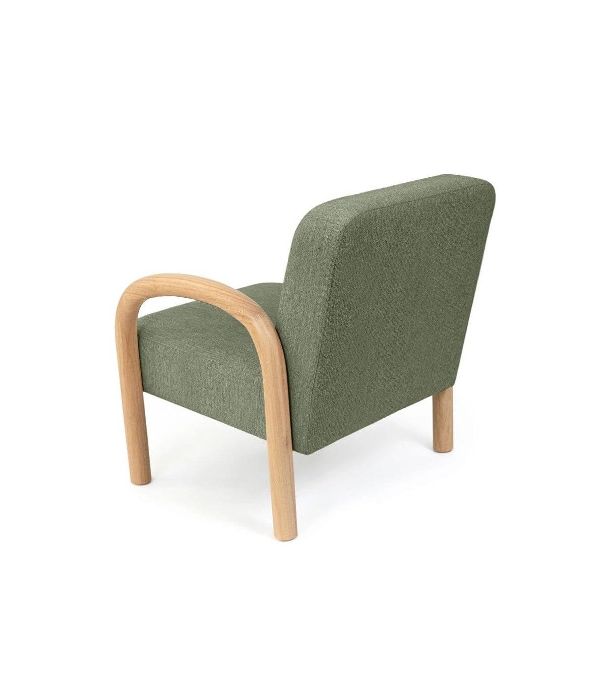 🪑 Butaca Nórdica con Brazos de Madera Natural y Tapizado Verde – Comodidad y Estilo Escandinavo ✨