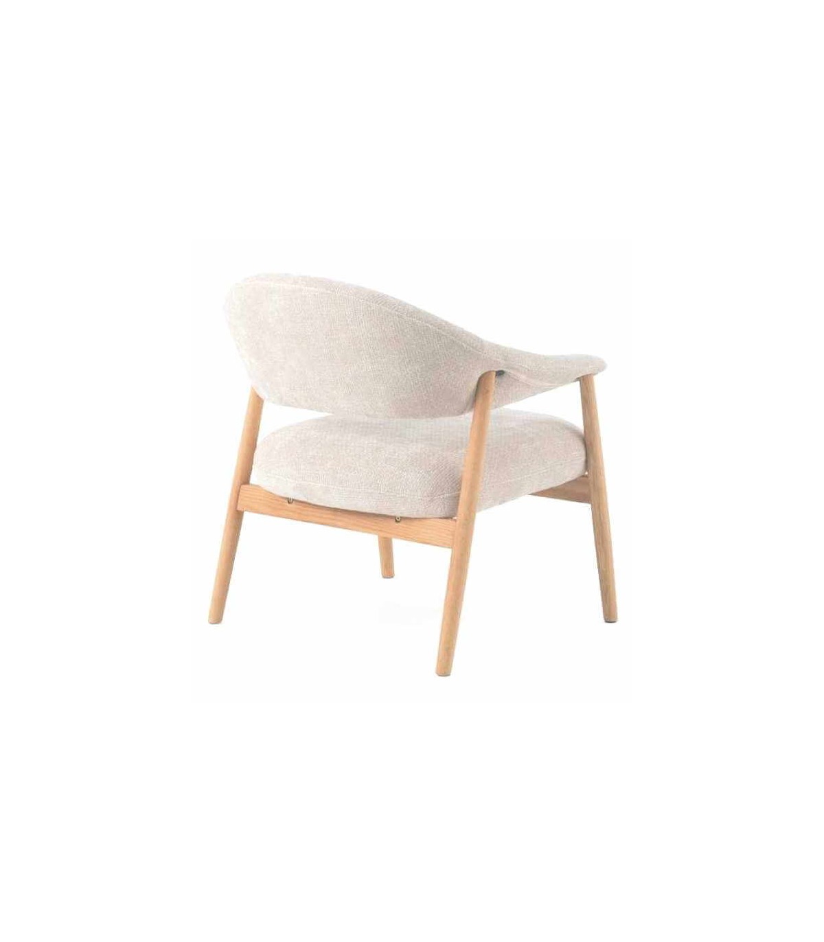 La estética nórdica de esta butaca se aprecia en su silueta suave y acogedora, que aporta calidez y serenidad al espacio mientras la madera maciza de roble introduce un matiz natural que armoniza con interiores luminosos.