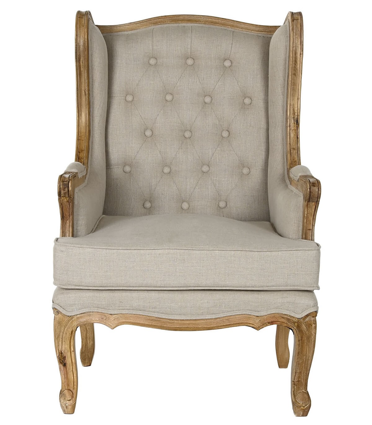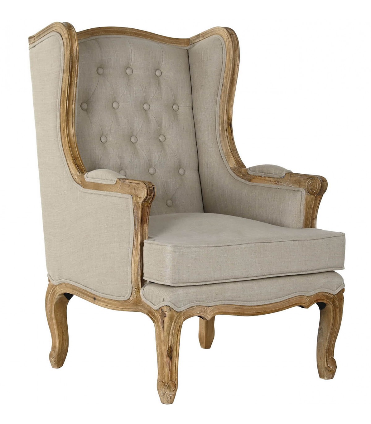 🛋️ Butaca de Orejas en Lino Topo – Estilo Clásico con Capitoné ✨