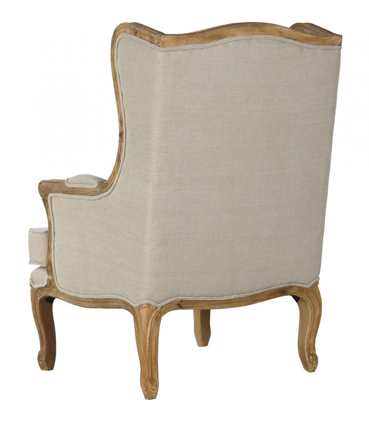 Sumérgete en la comodidad con esta butaca de orejas tapizada en lino topo, una pieza de estilo clásico que combina elegancia y confort. Su respaldo en capitoné, junto con el cojín mullido y la estructura en madera de mango tallada, aportan un aire distinguido y acogedor.