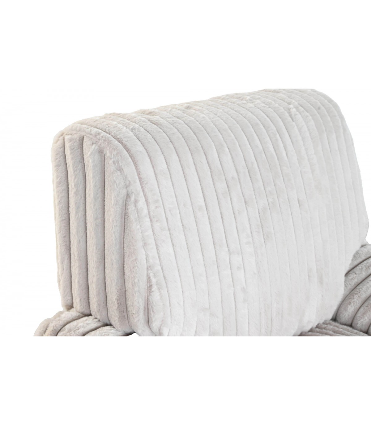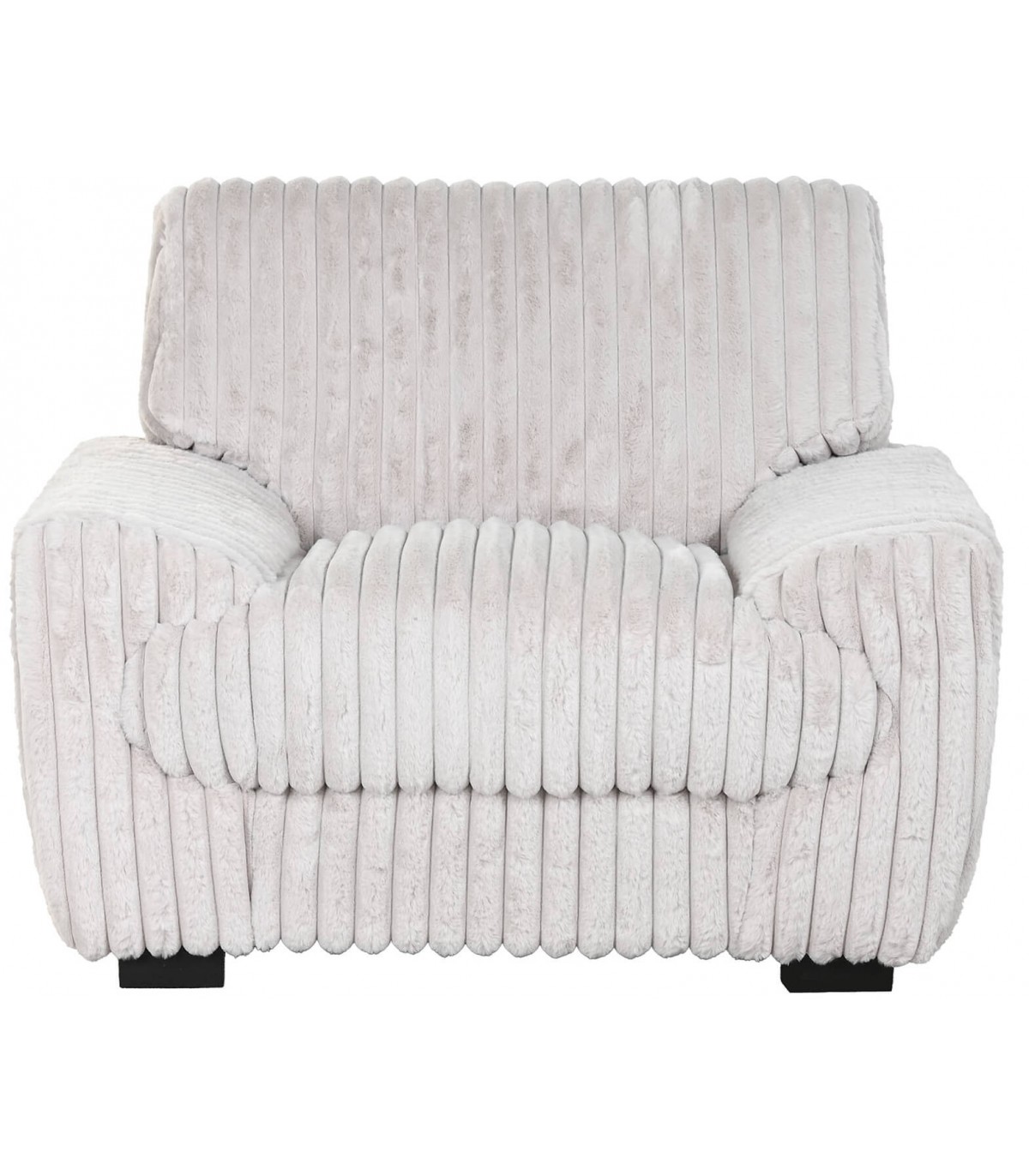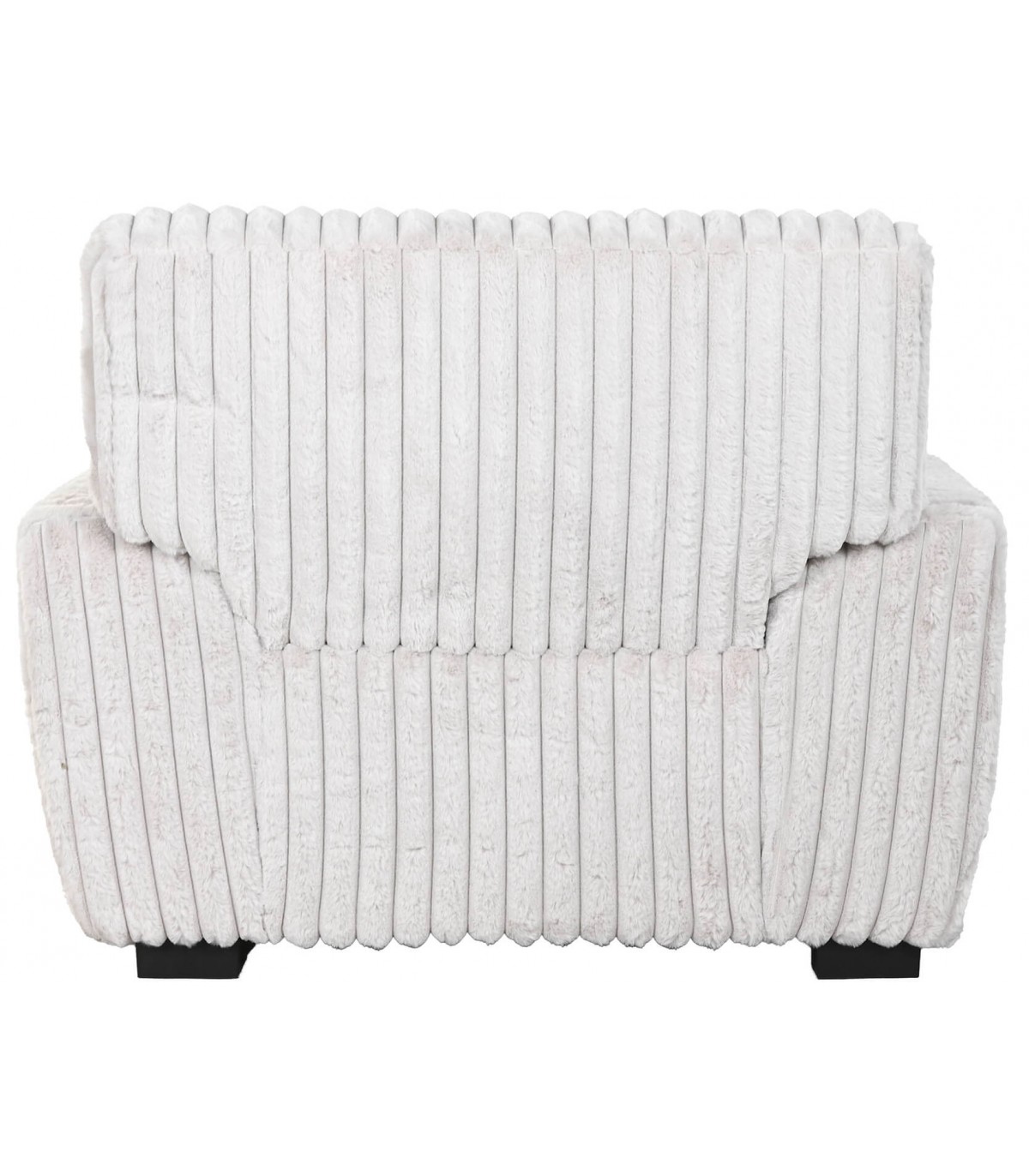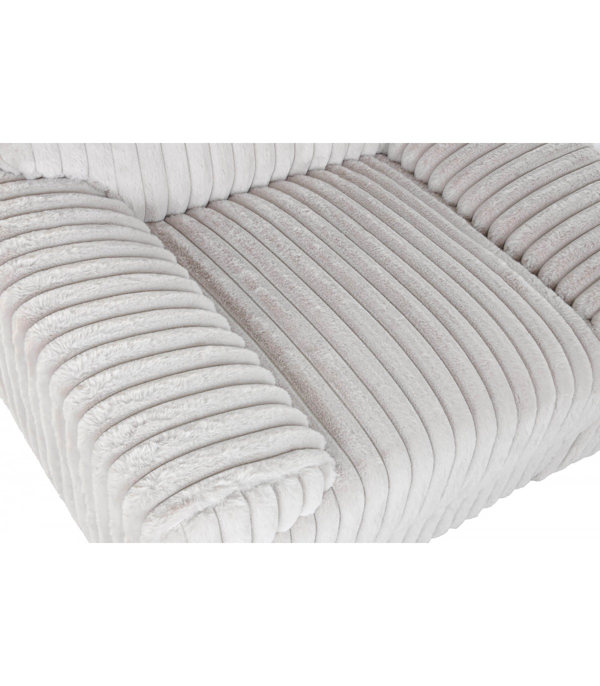 Sumérgete en la suavidad de esta butaca tapizada en pana gruesa de pelo corto blanco roto, con líneas verticales acolchadas que realzan su forma envolvente. Su estructura ancha y mullida garantiza una comodidad total, ideal para momentos de descanso en salones actuales o rincones de lectura con estilo.