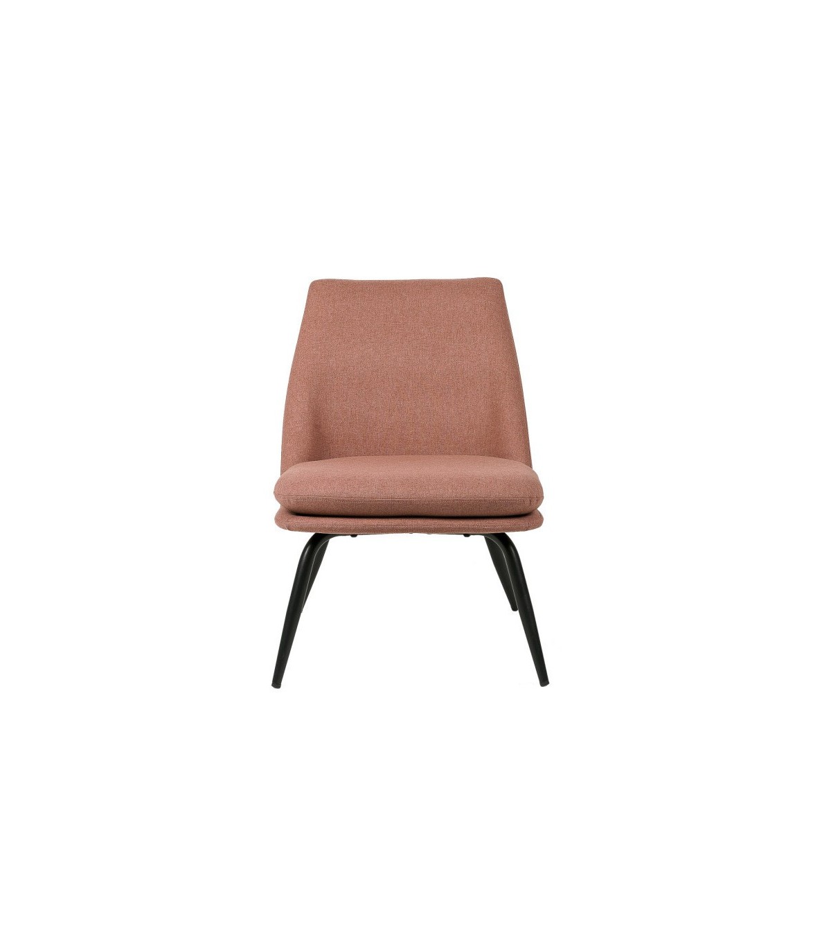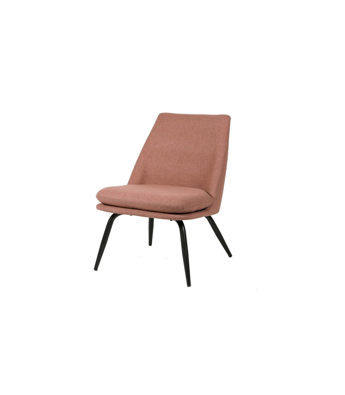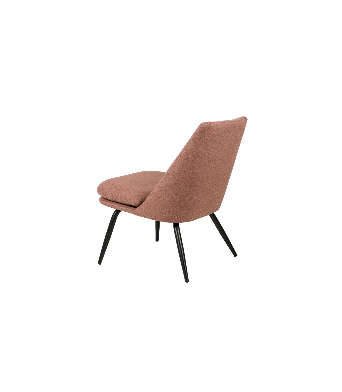 Butaca tapizada en color teja con patas ligeramente inclinadas en metal acabado en color negro.