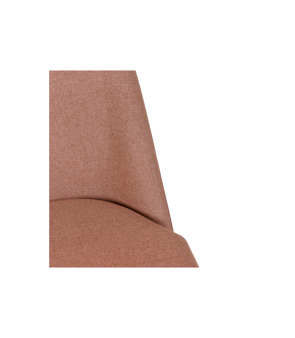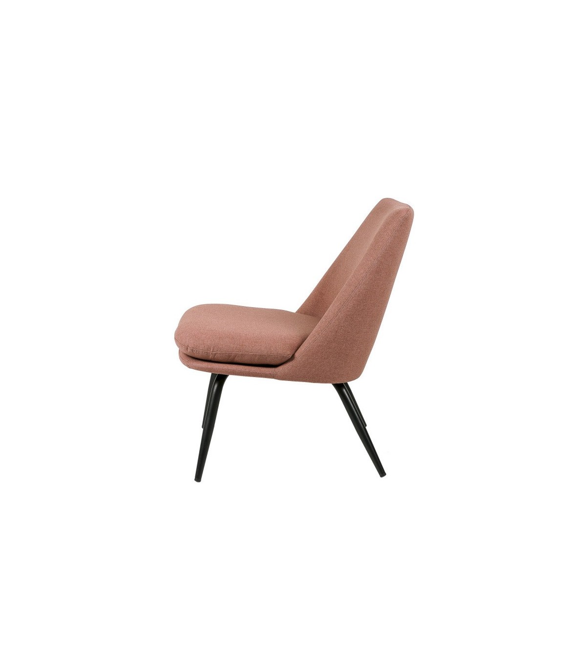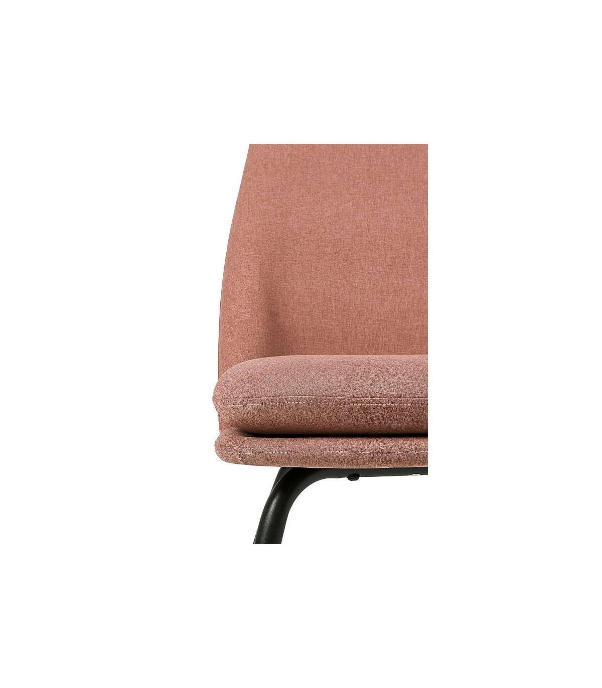 Butaca tapizada en color teja con patas ligeramente inclinadas en metal acabado en color negro.