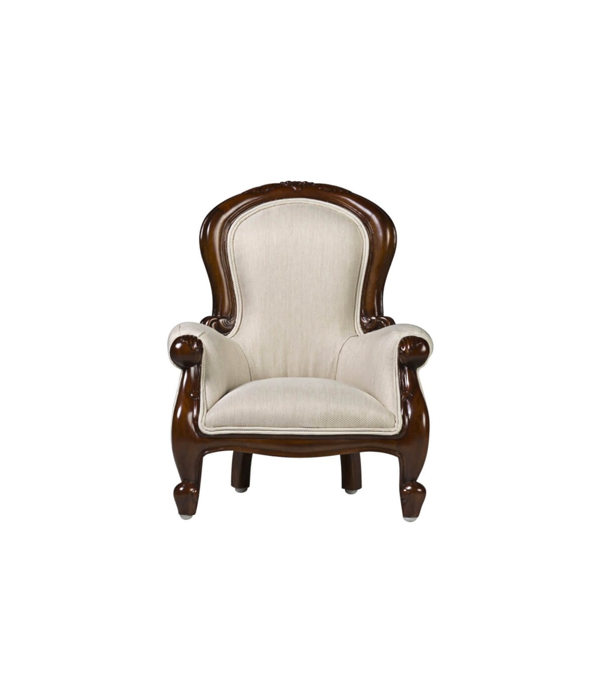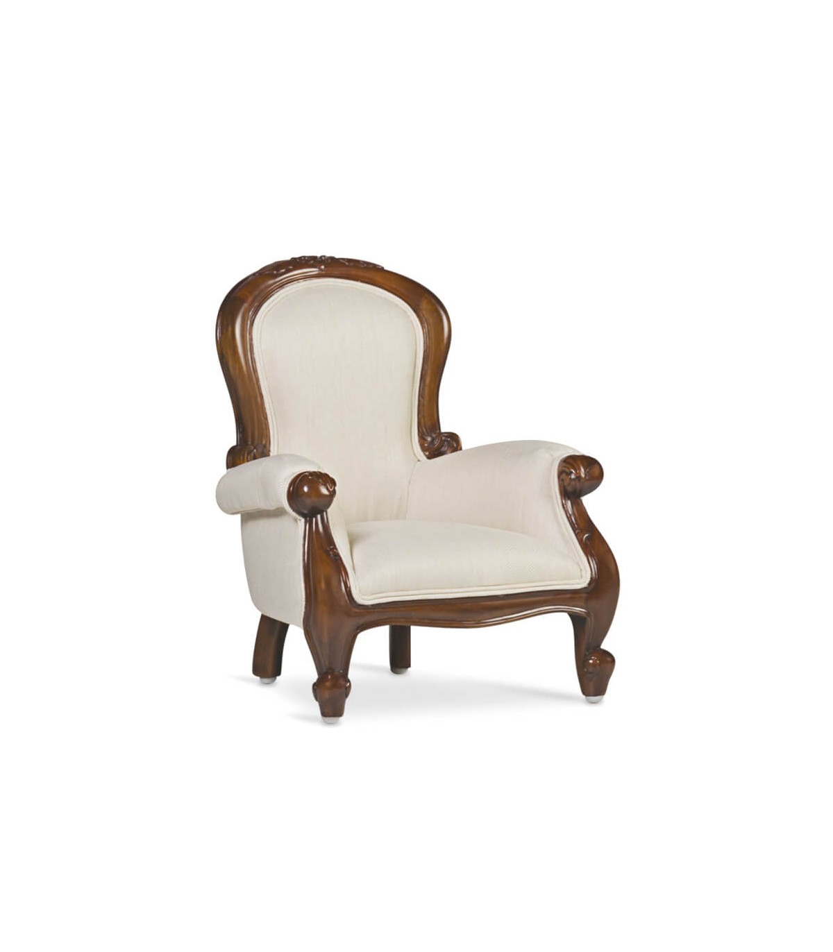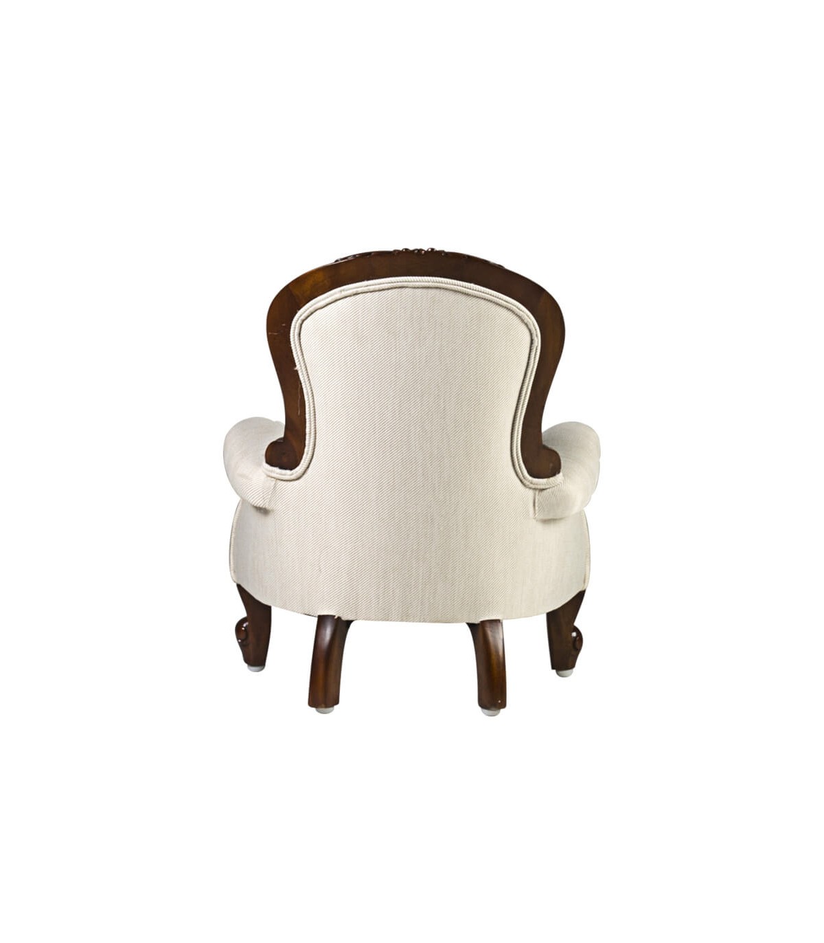 Sillón para Niños de Estilo Victoriano – Madera de Caoba Tallada a Mano y Tapizado en Blanco Roto