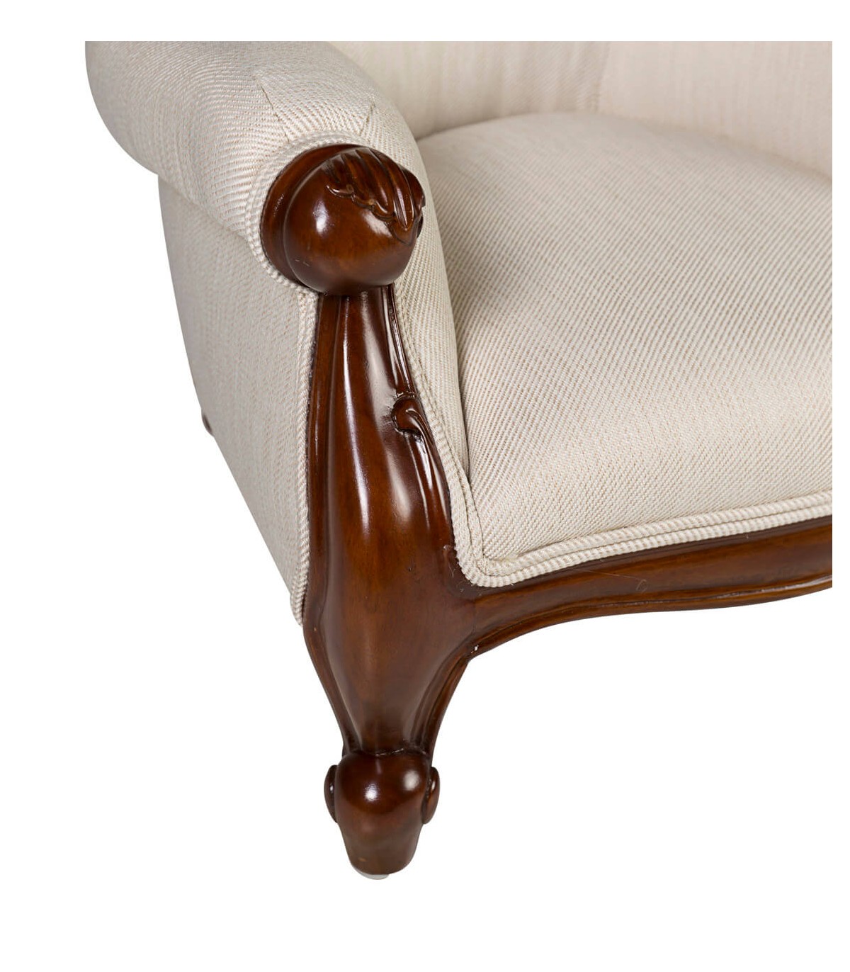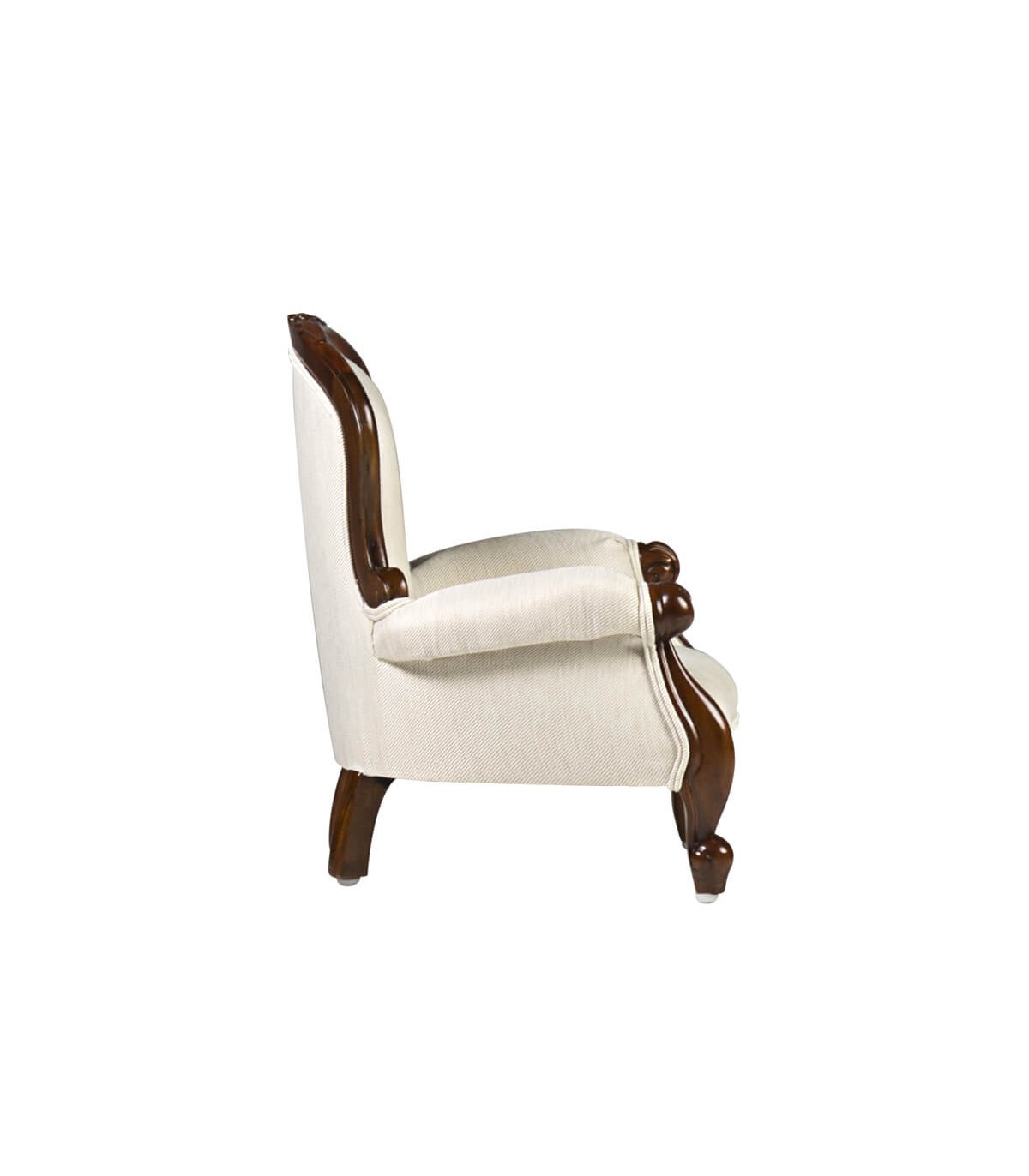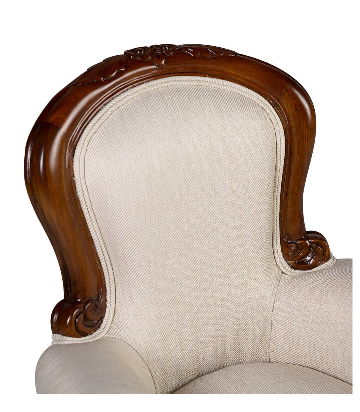 Sillón para Niños de Estilo Victoriano – Madera de Caoba Tallada a Mano y Tapizado en Blanco Roto