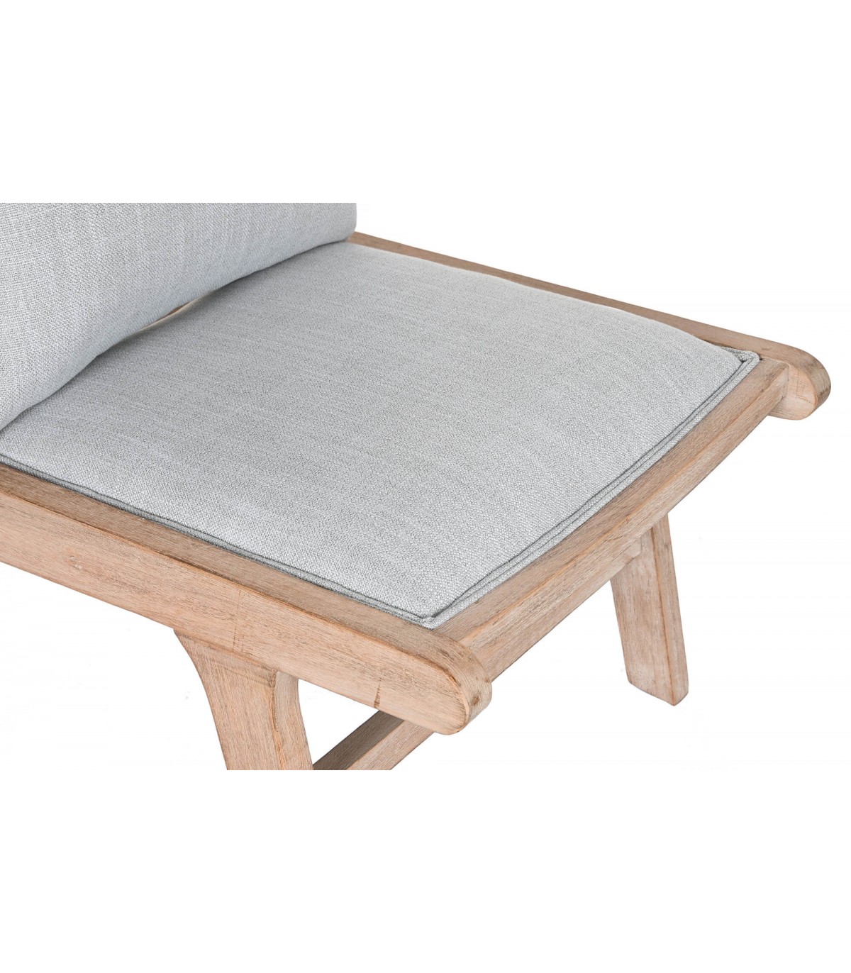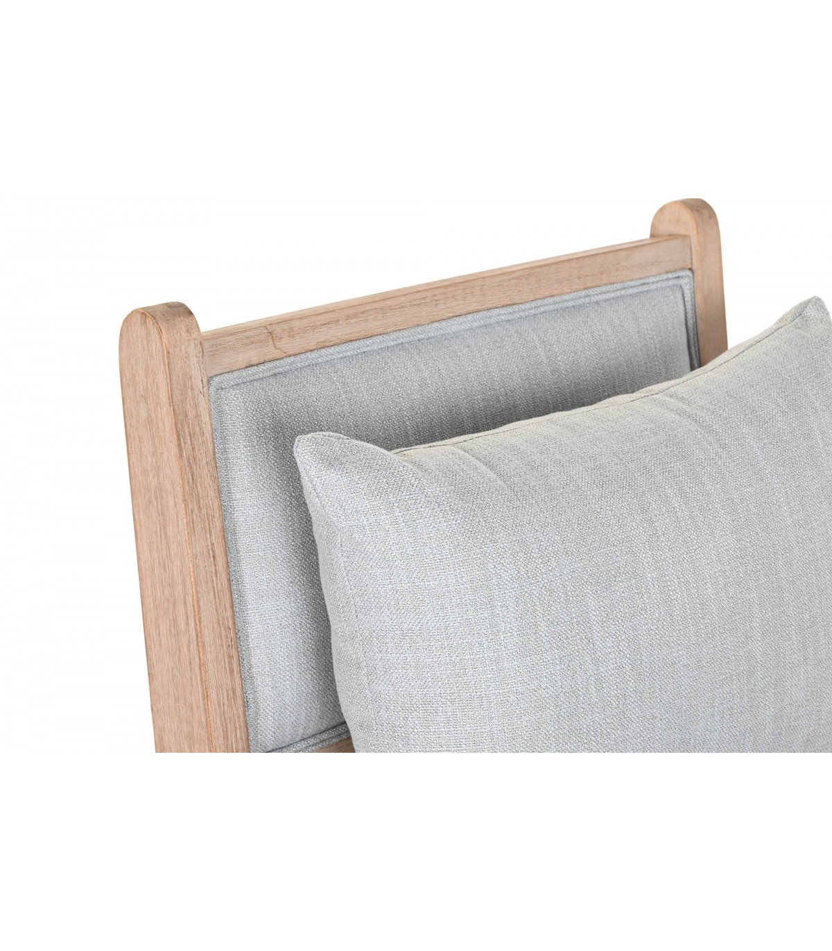 Sillón de estilo colonial, realizado en madera de abeto acabado natural y tela color gris, con un cojín de apoyo desenfundable a juego que le hace un sillón muy confortable y estiloso, de asiento bajo.
