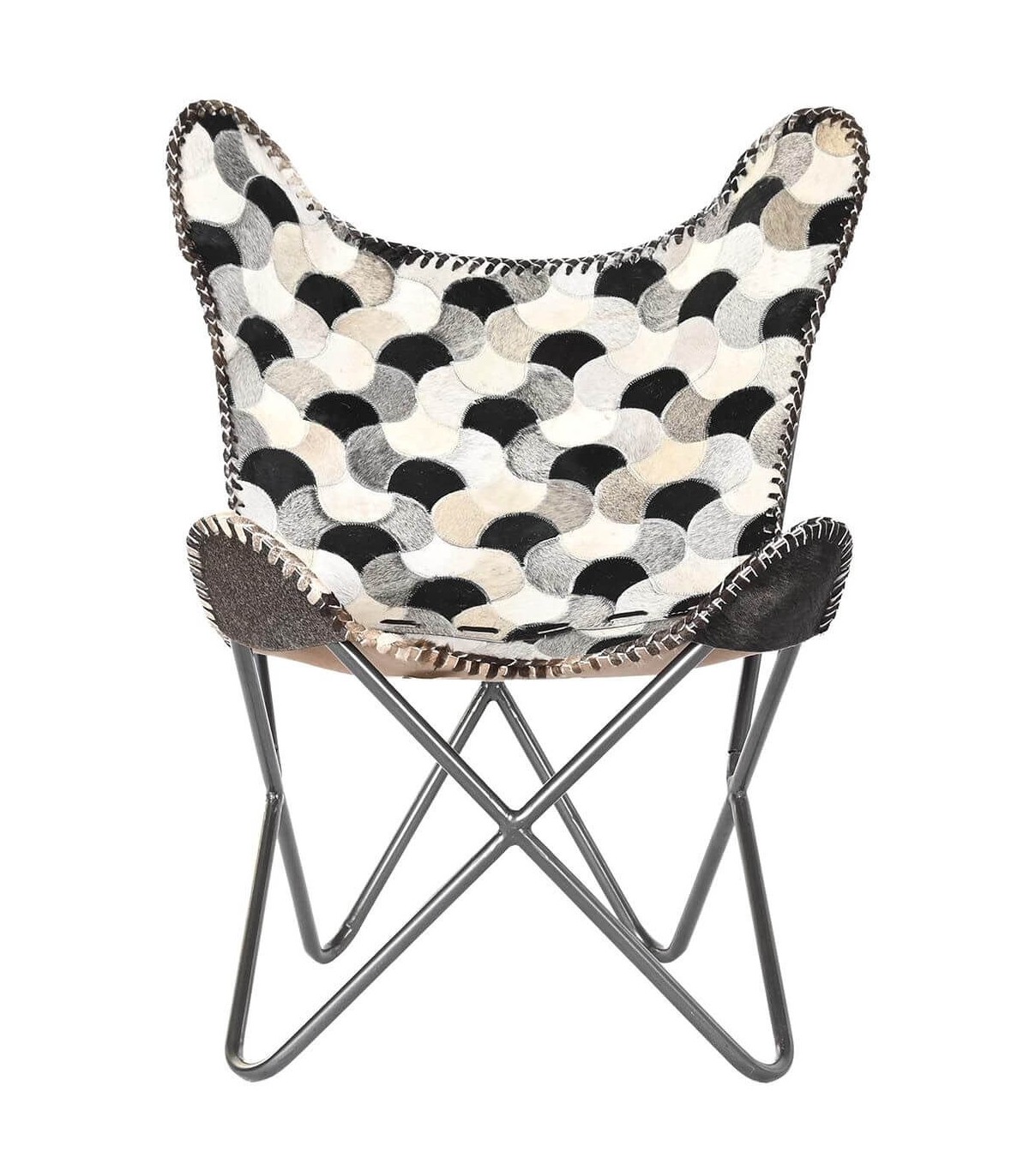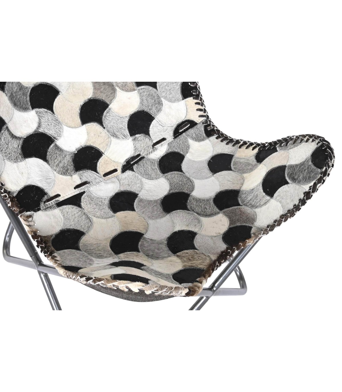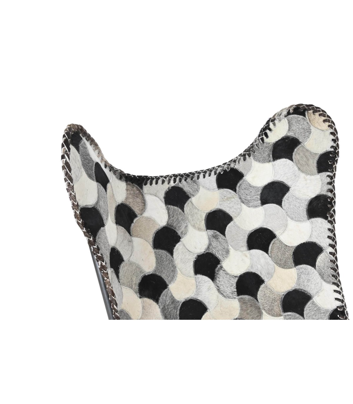 SILLON 70 X 70 X 90 MARIPOSA ESCIROS METAL Y PIEL NEGRA Y BLANCA