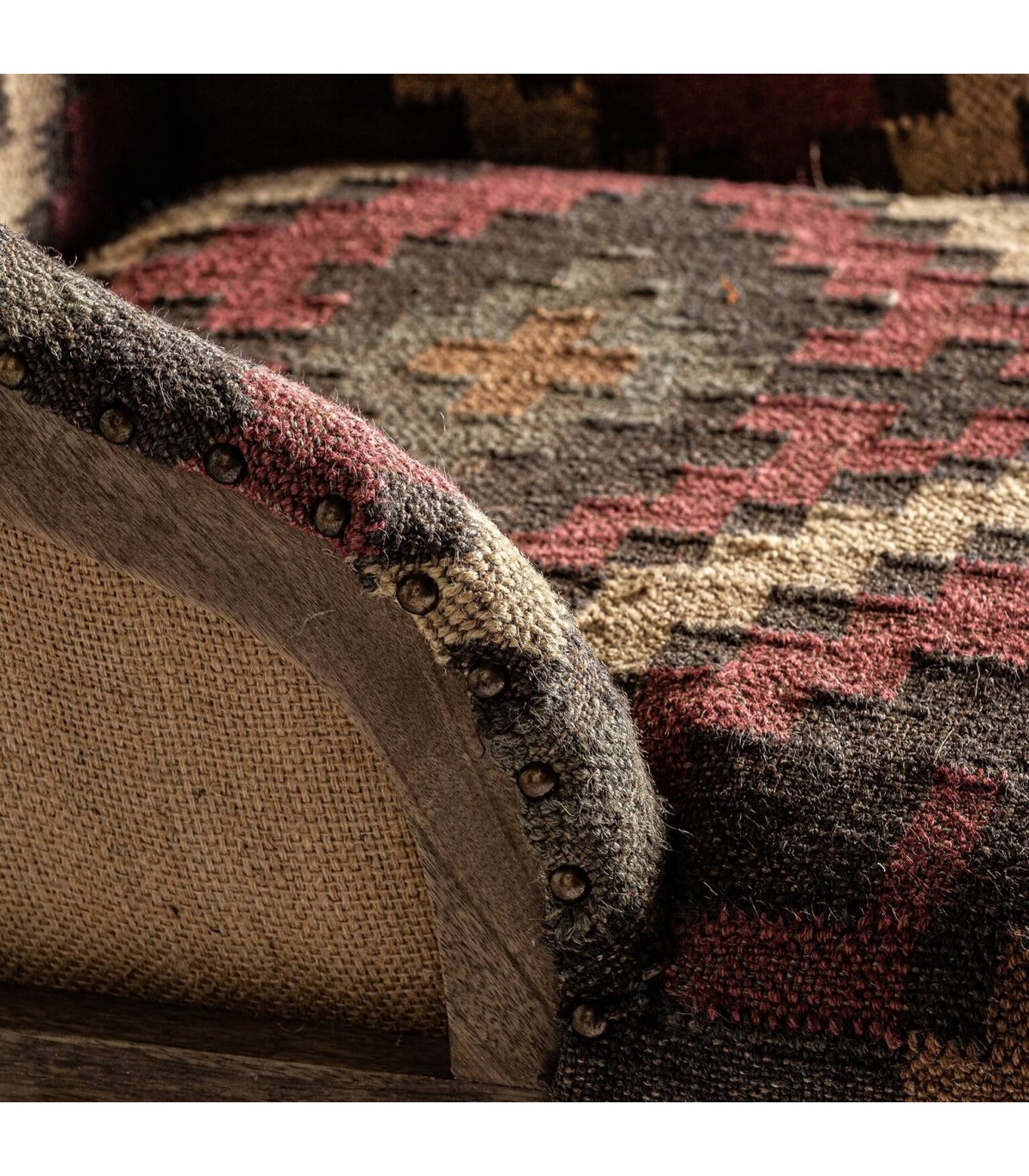 Acabado, artesanal, madera acabado nogal, tejido estampado realizado en telar.