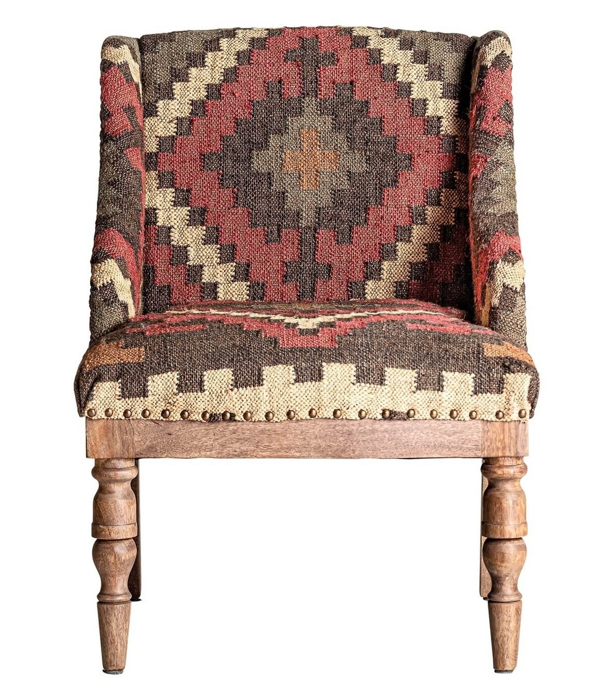Sillón auxiliar ideal para completar un tresillo o como pieza auxiliar para el dormitorio o un gran hall, la madera y la tela tejida en telar le da un toque único.