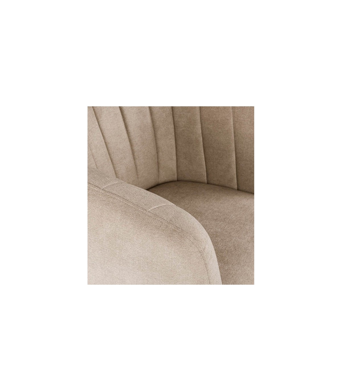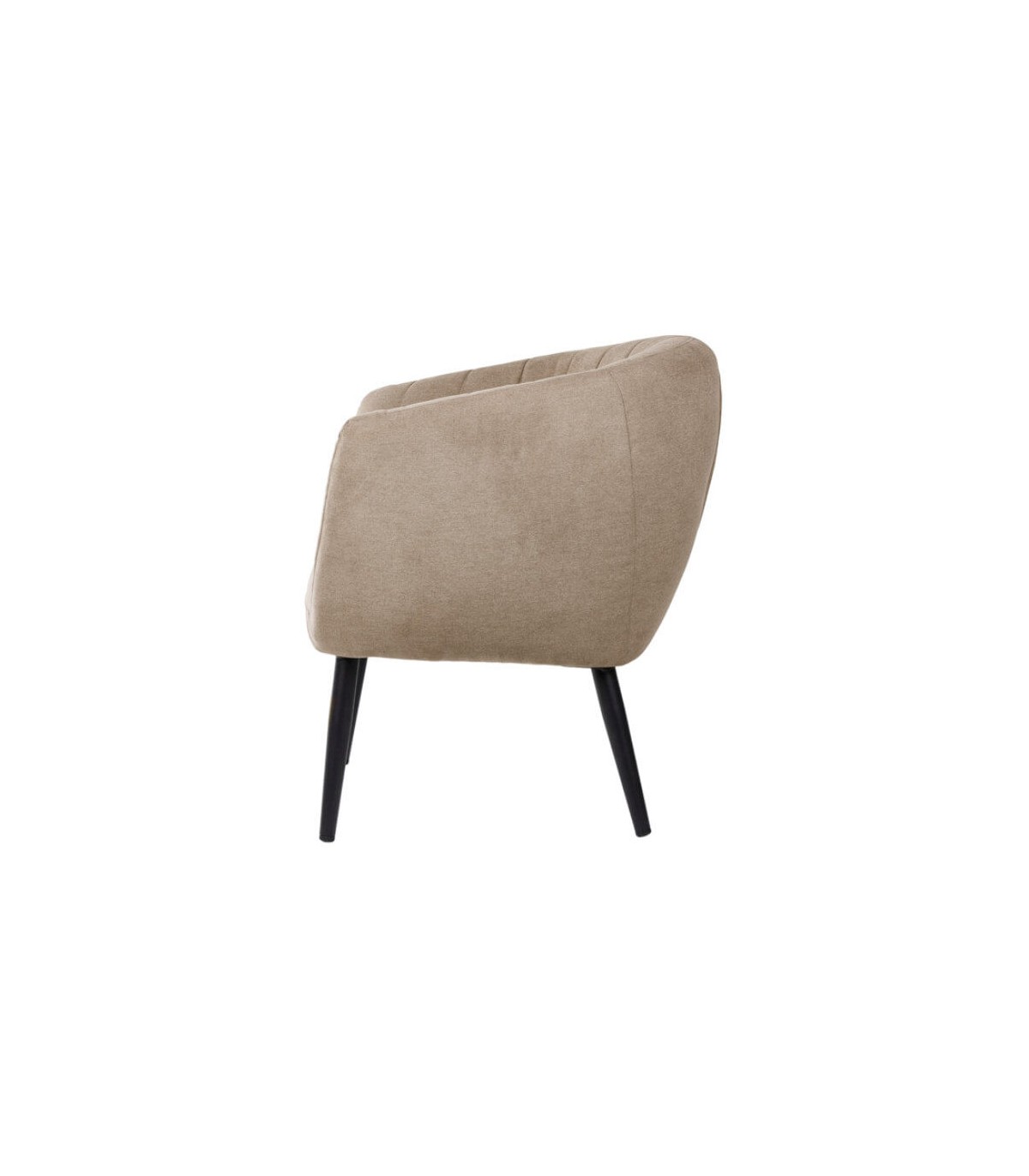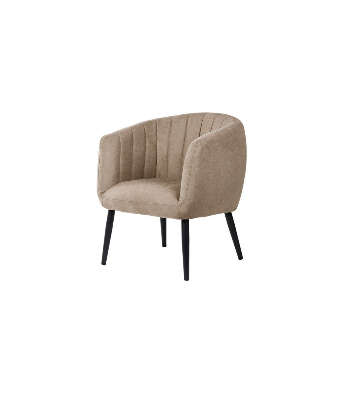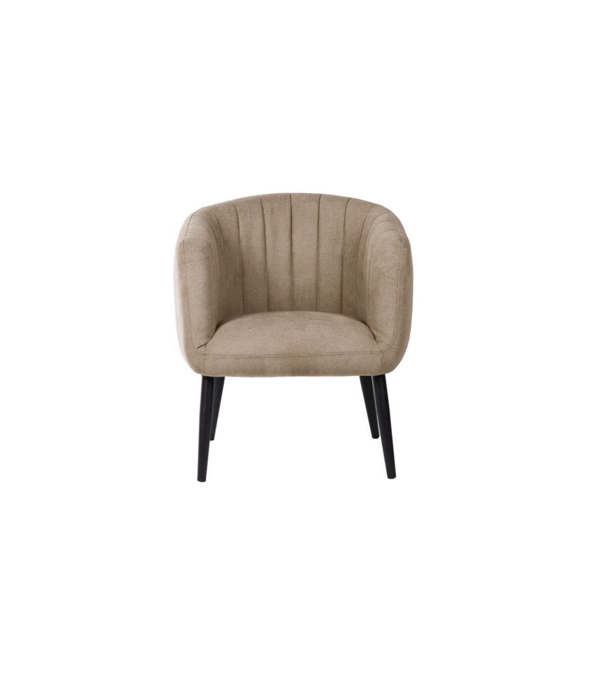 • Sillón tapizado en color beige con la patas metálicas en color negro, su diseño sencillo y clásico dará un toque de elegancia a cualquier estancia del hogar.