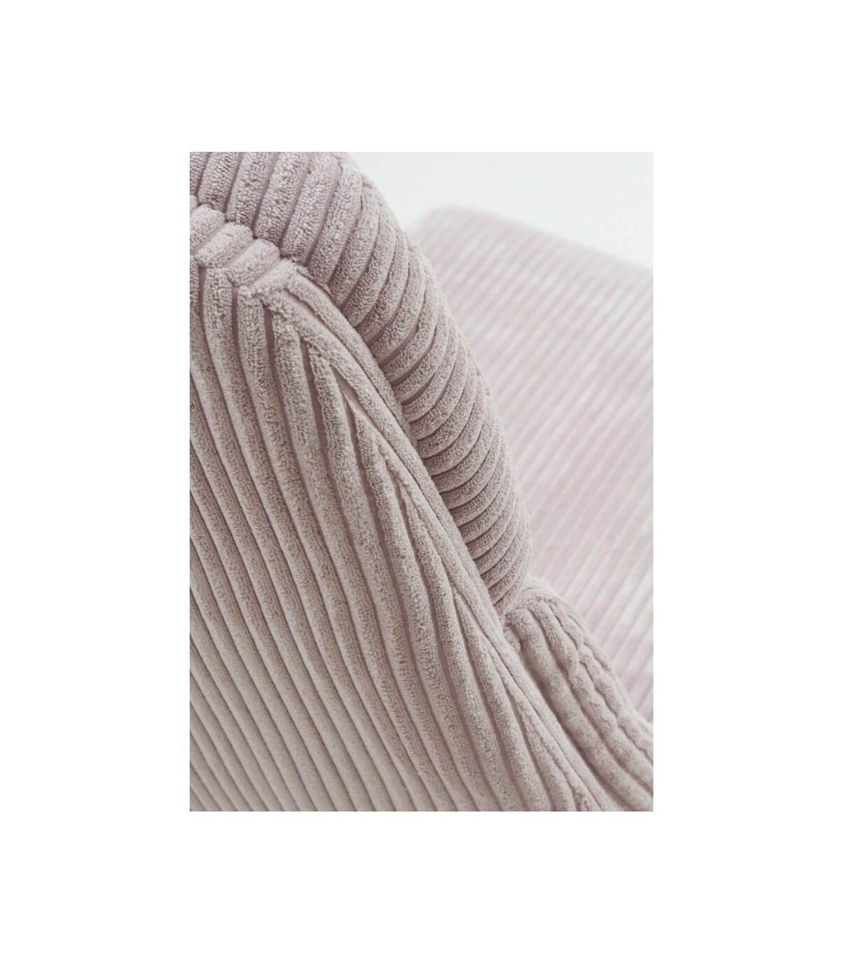 Acabado, madera de haya en color natural, metal negro, textil pana de tacto suave color lavanda.
