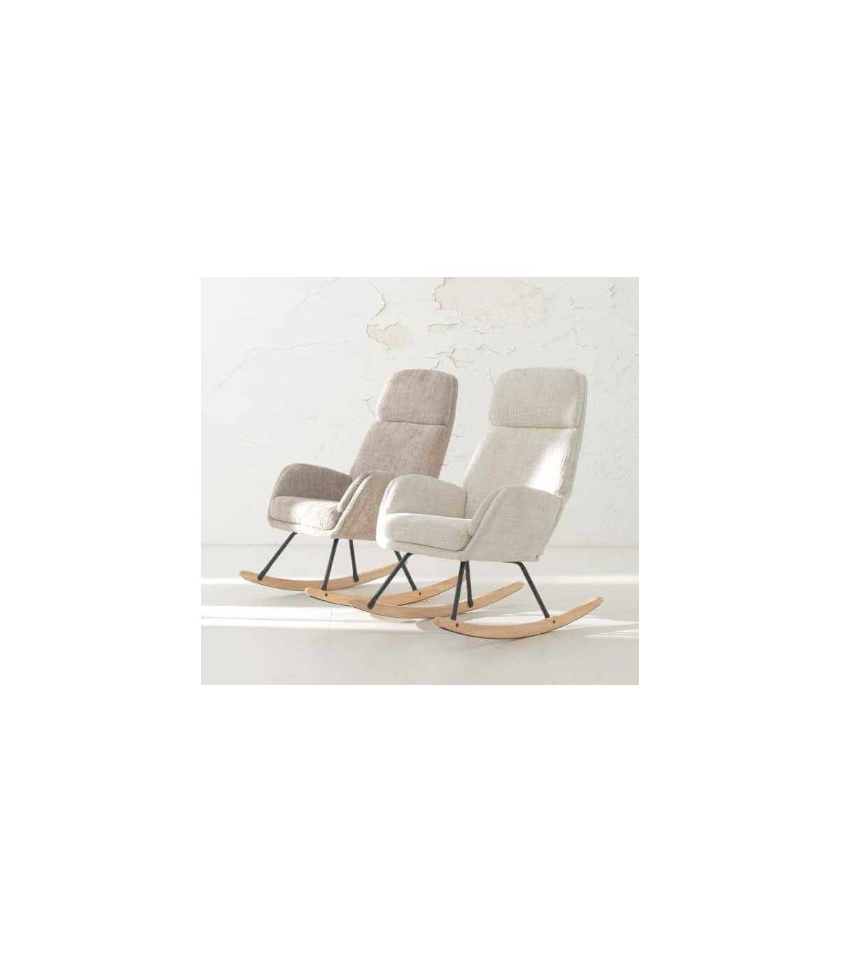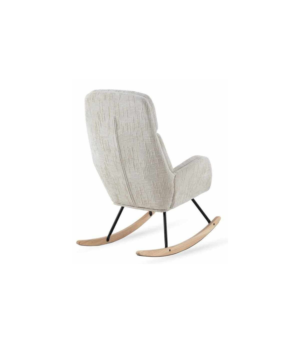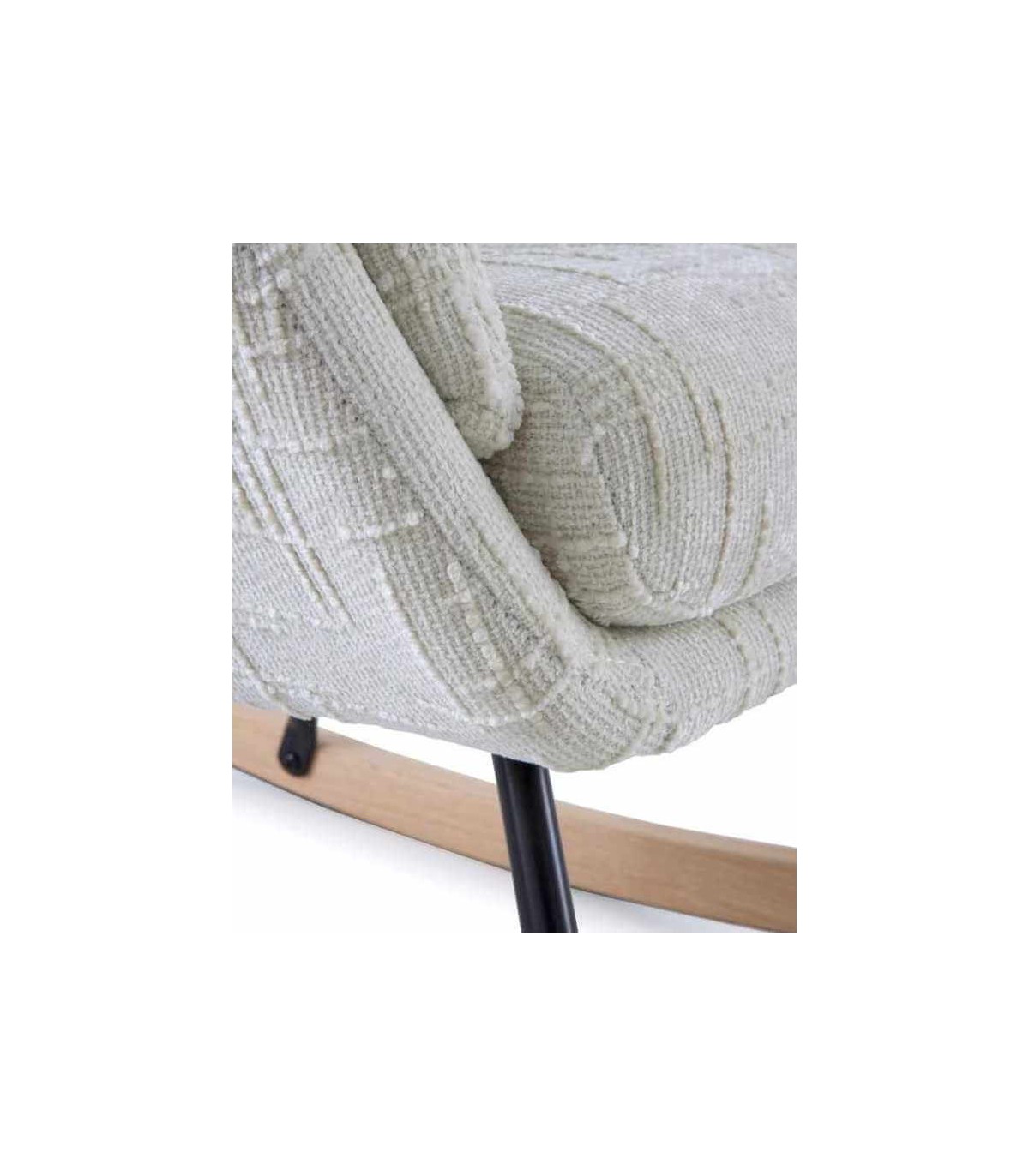 Las patas metálicas con base de madera curvada garantizan un balanceo estable y silencioso. Ideal para momentos de descanso o lactancia, su diseño nórdico combina líneas limpias y materiales cálidos. Aporta serenidad y elegancia natural a cualquier rincón del hogar, creando una atmósfera íntima y acogedora.